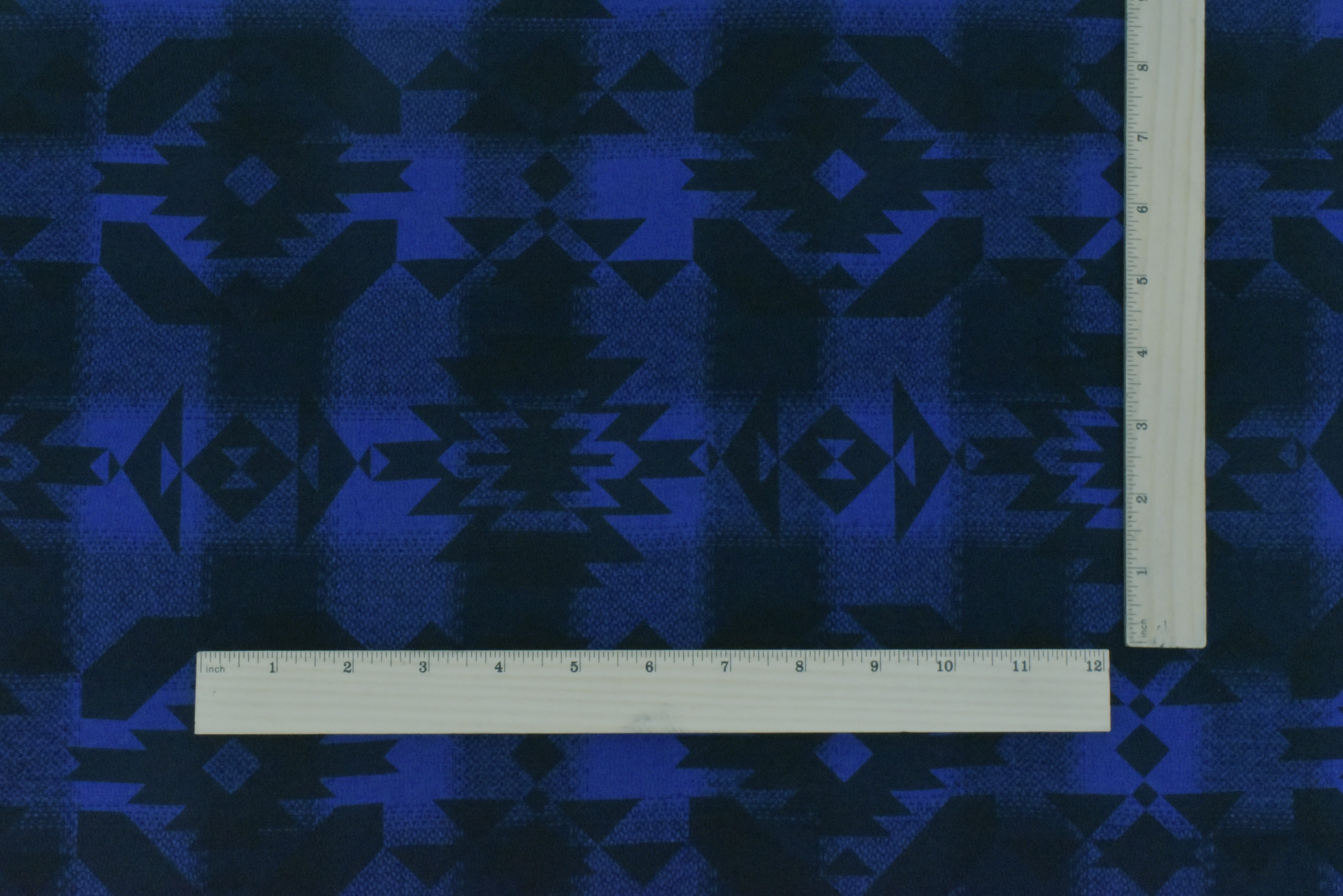Blue-Black Tribal Printed Cotton Check Dobby Woven Fabric