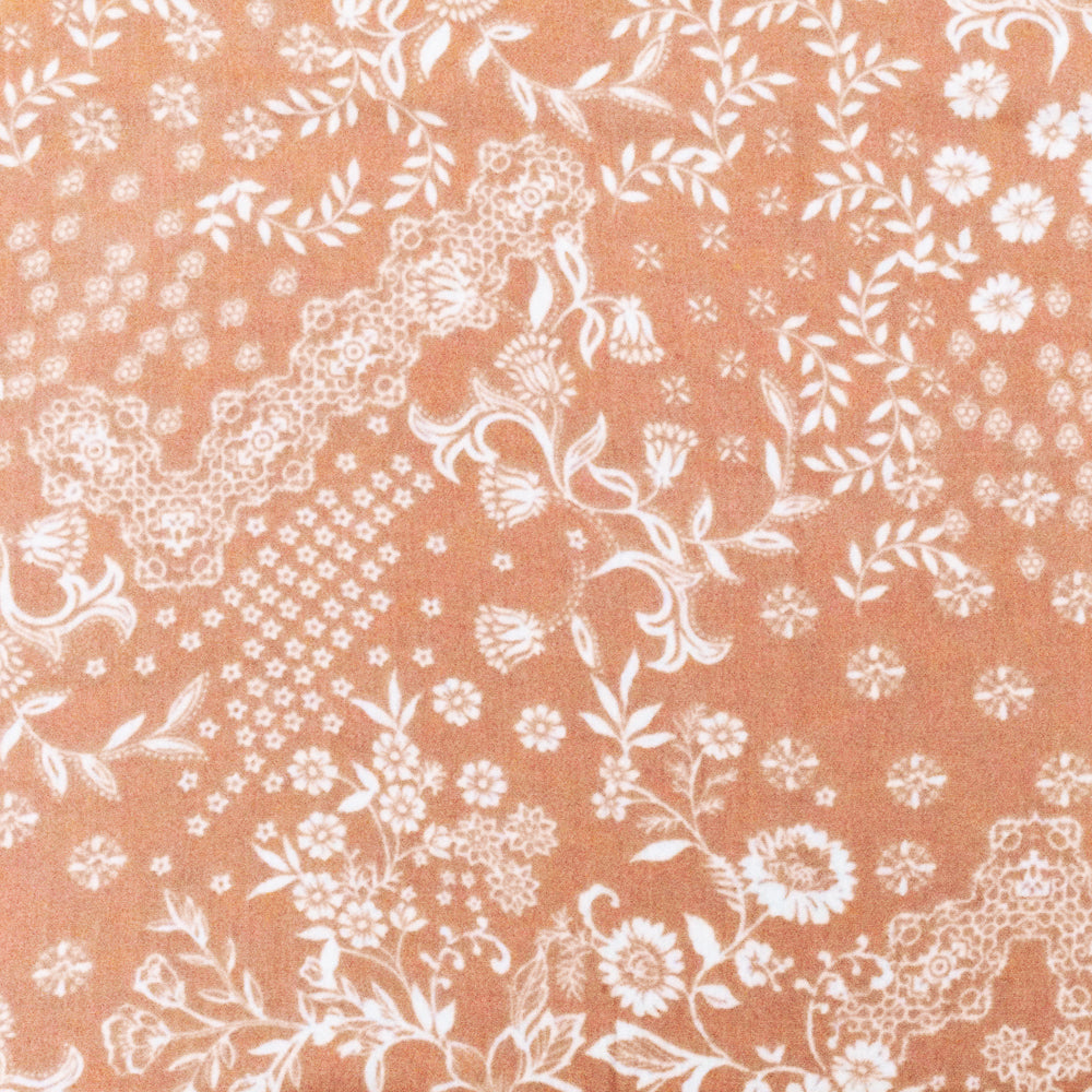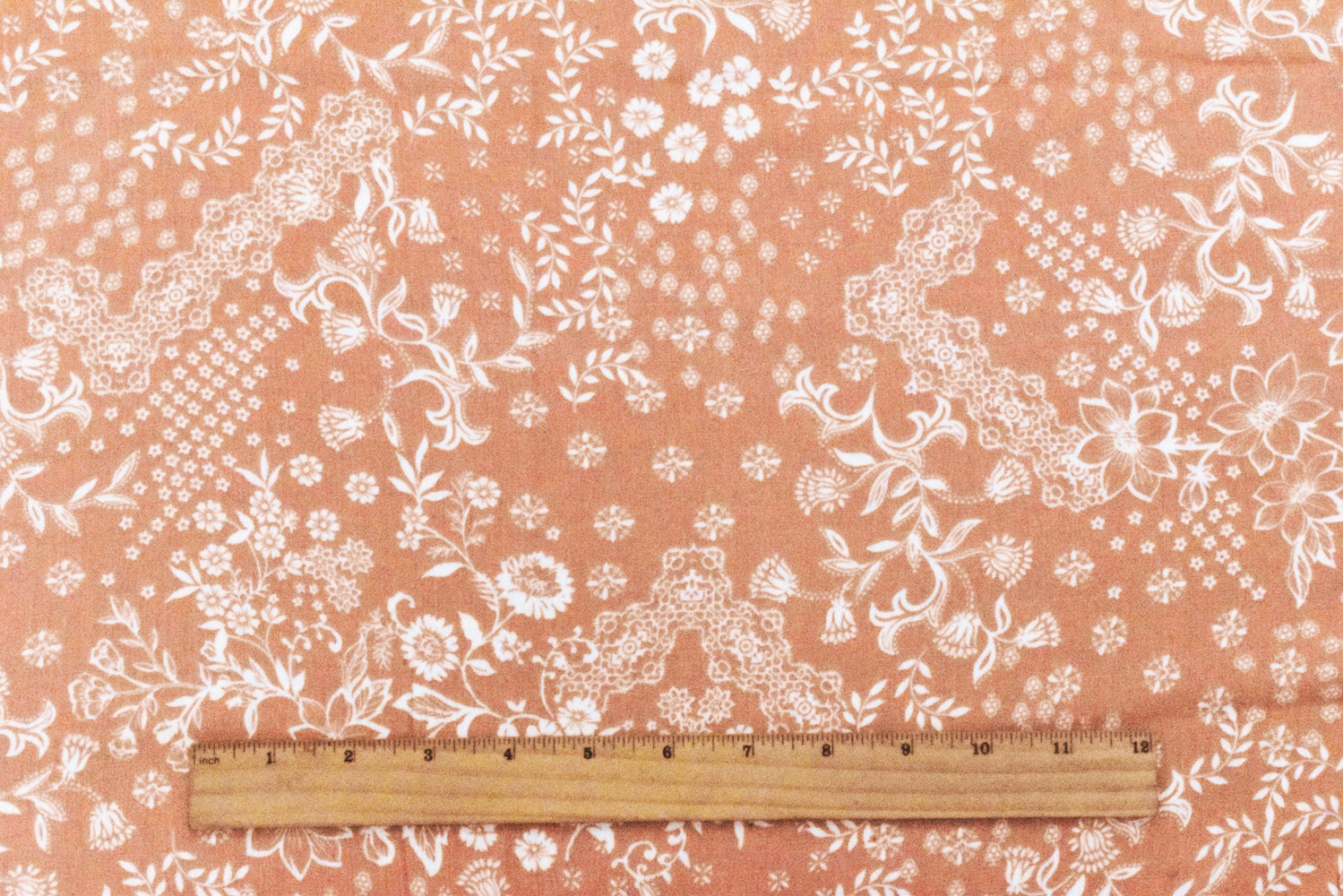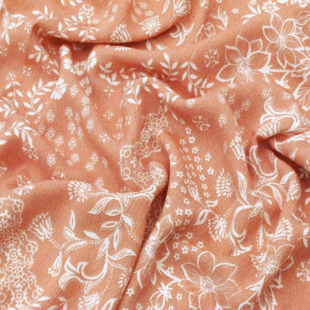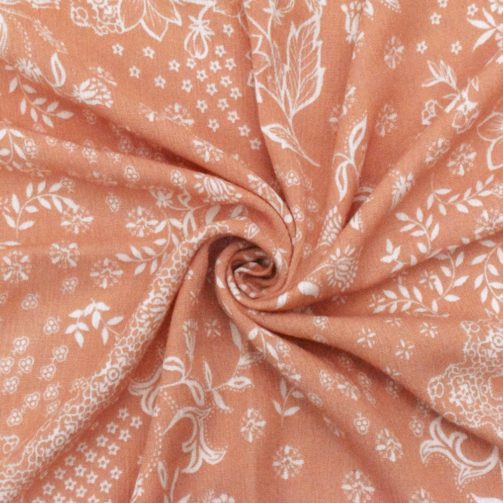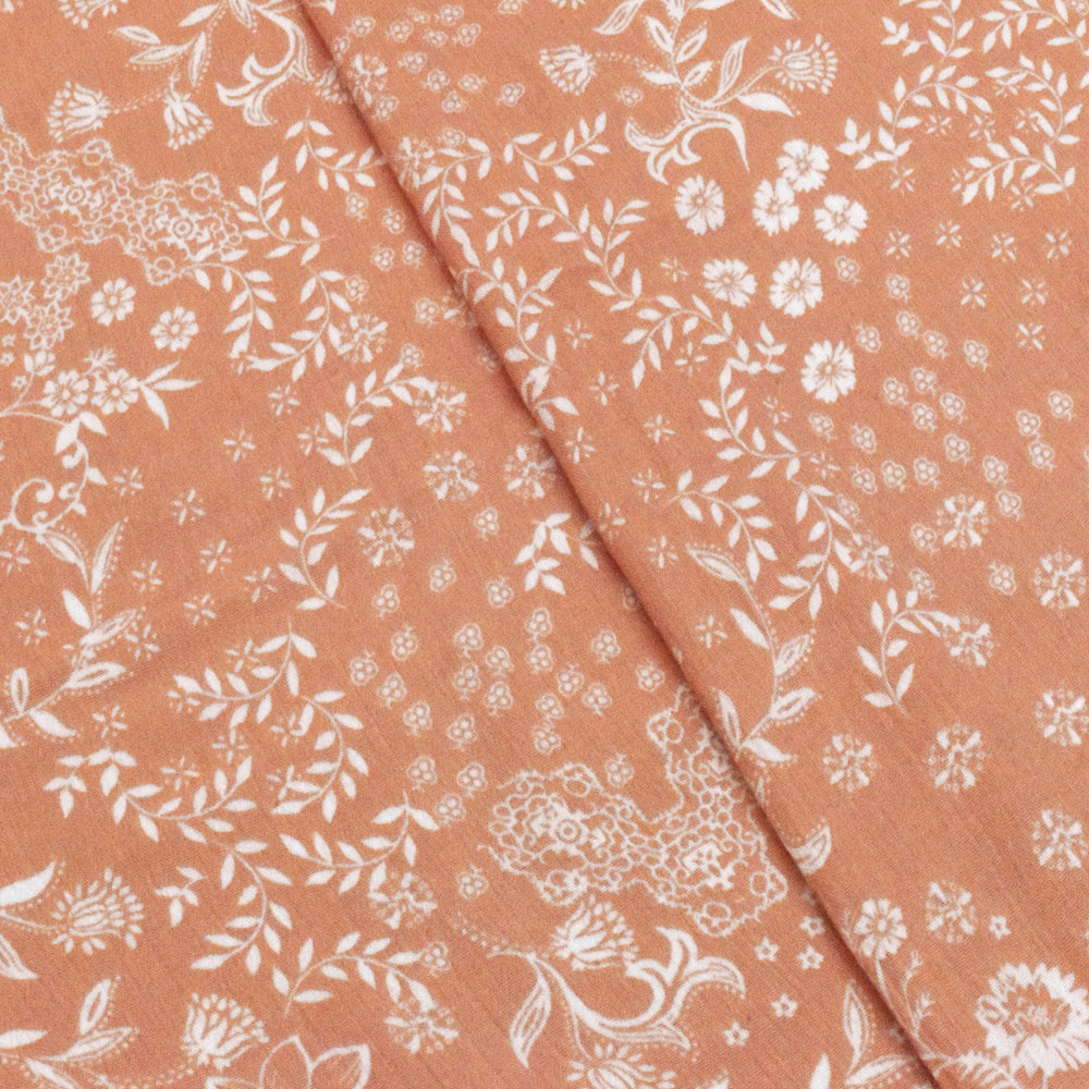 Coral Orange-Ivory Floral Printed Rayon Crepon Woven Fabric