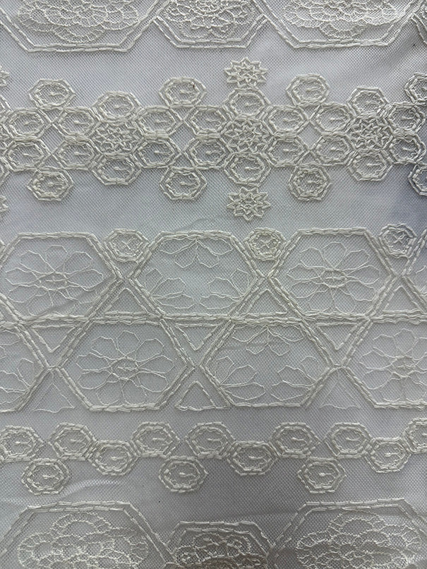 Eggshell Embroidered Mesh Lace Fabric