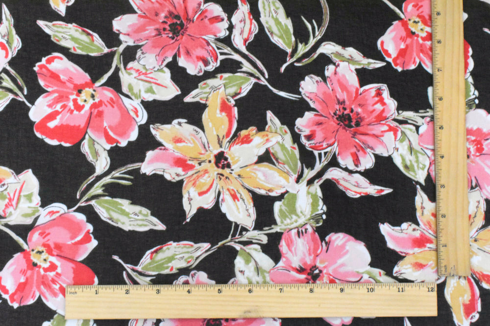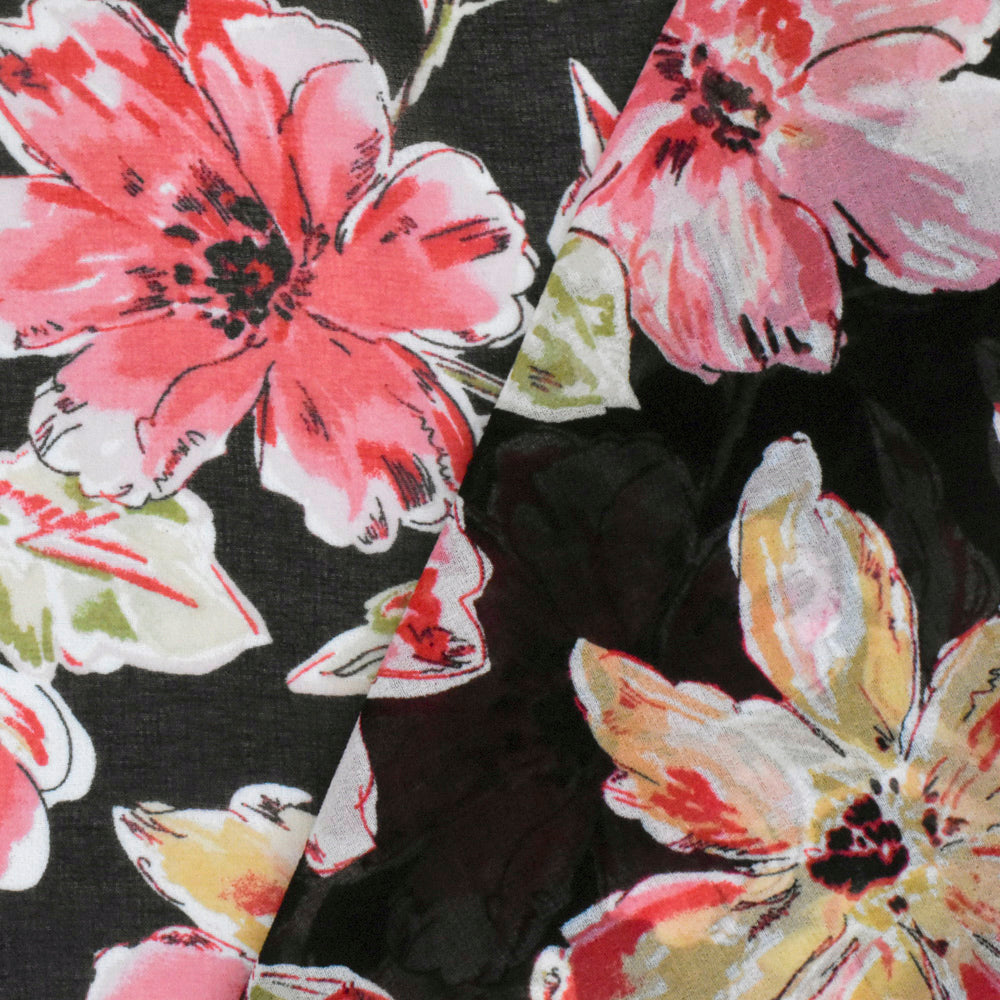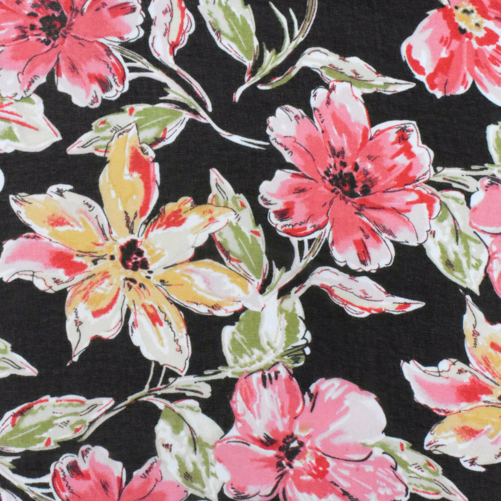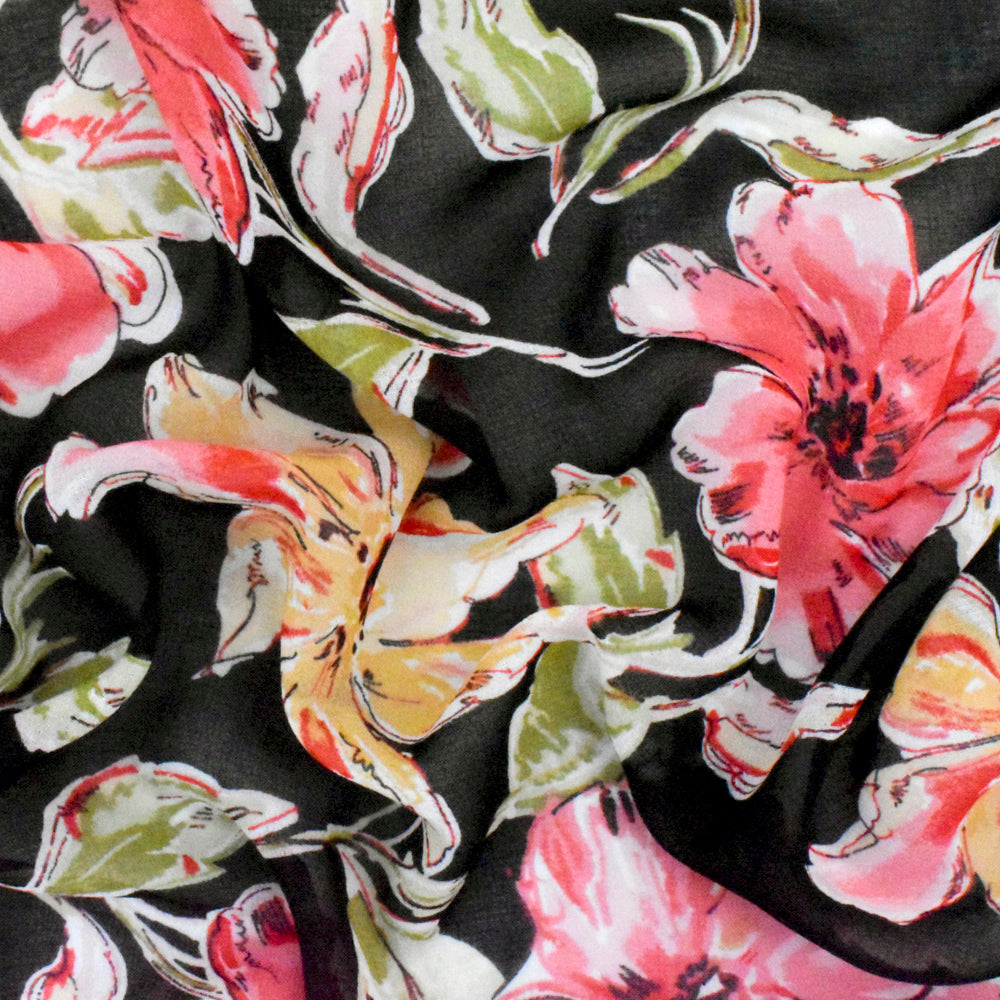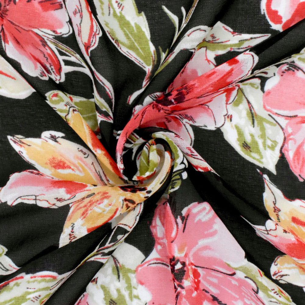 Flower Pink-Black-Multi Floral Printed Polyester Chiffon Woven Fabric