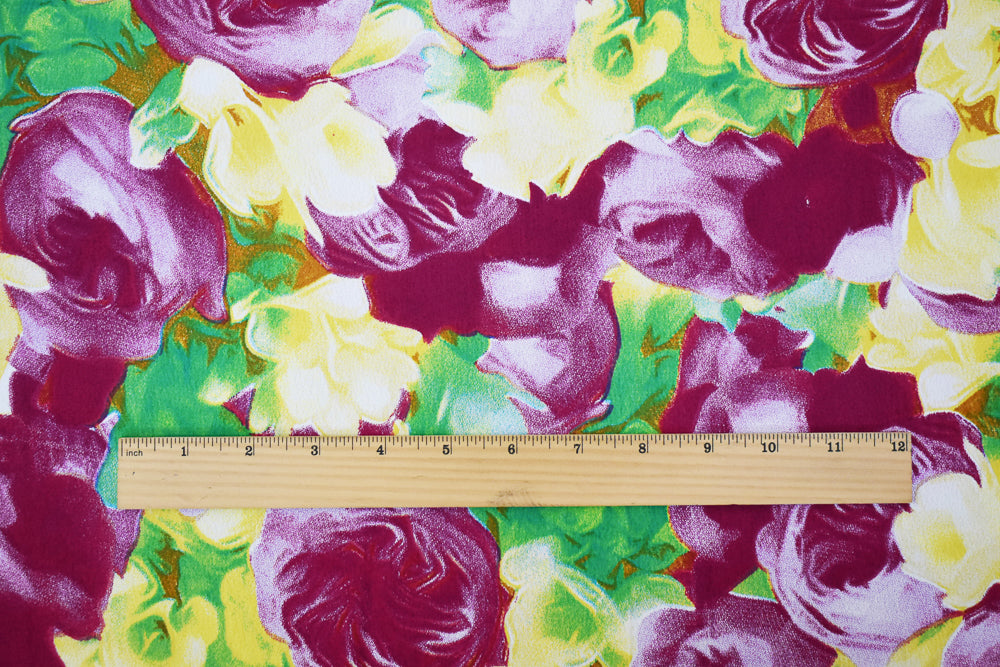 Fuchsia Pink-Yellow-Multi Floral Printed Rayon Crepe Faille Woven Fabric
