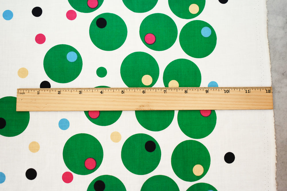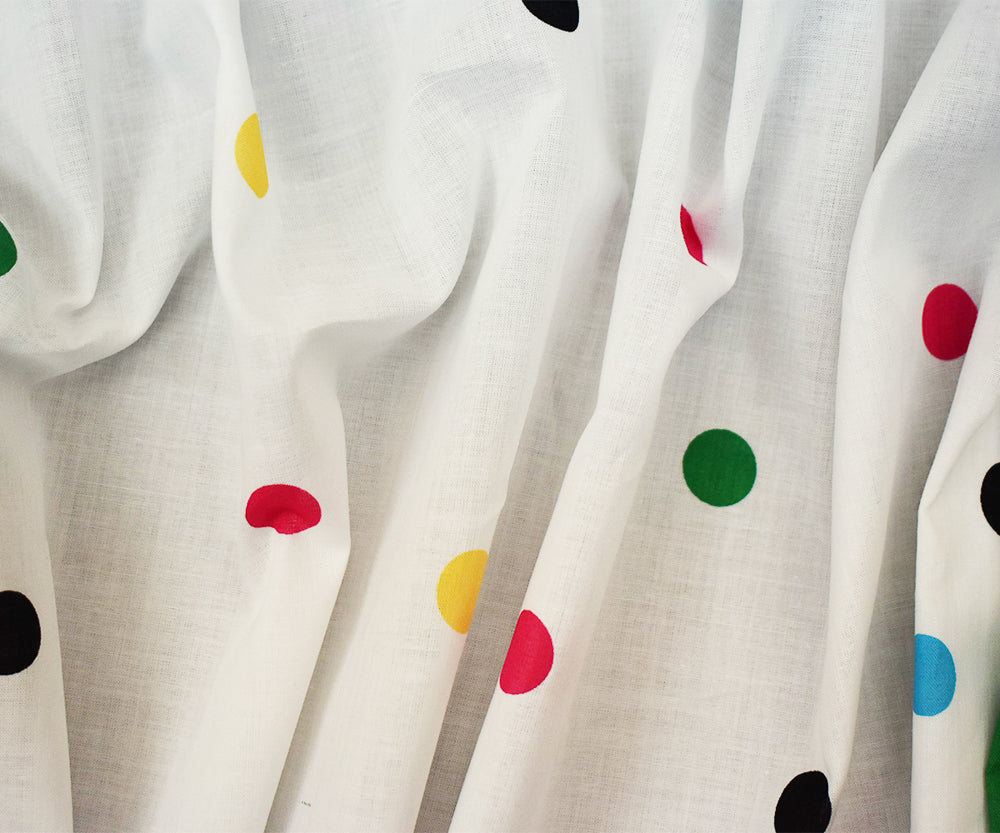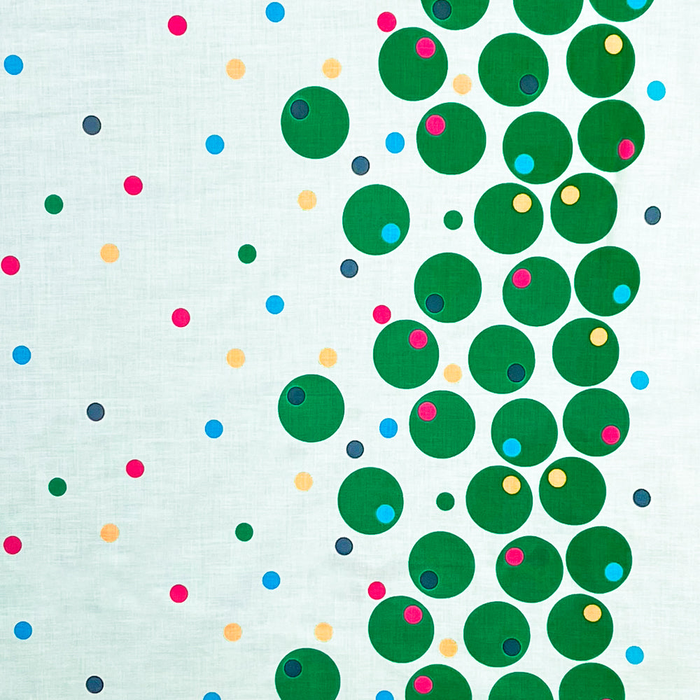 Green-Yellow-Multi Bordered Polka Dots Printed Cotton Batiste Woven Fabric