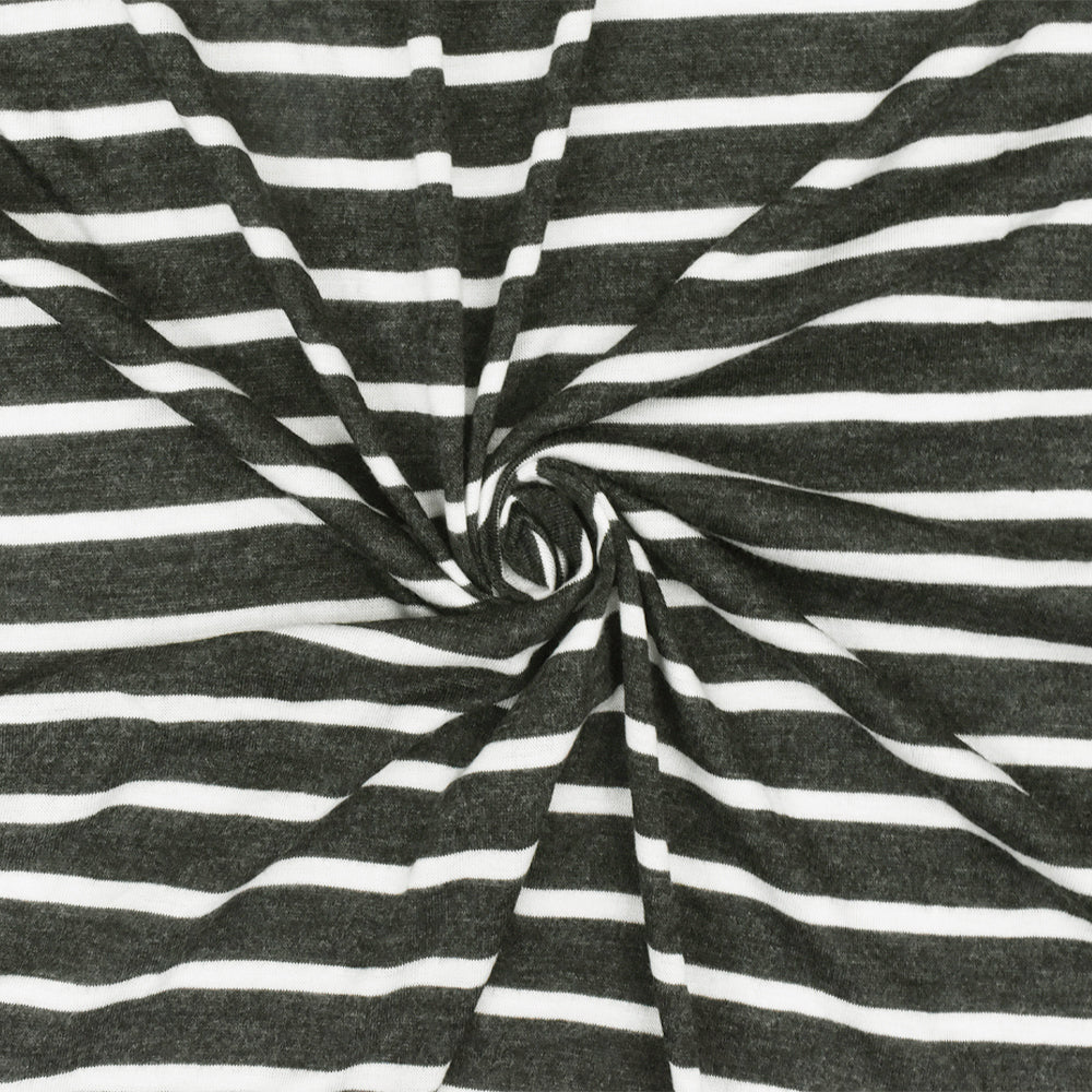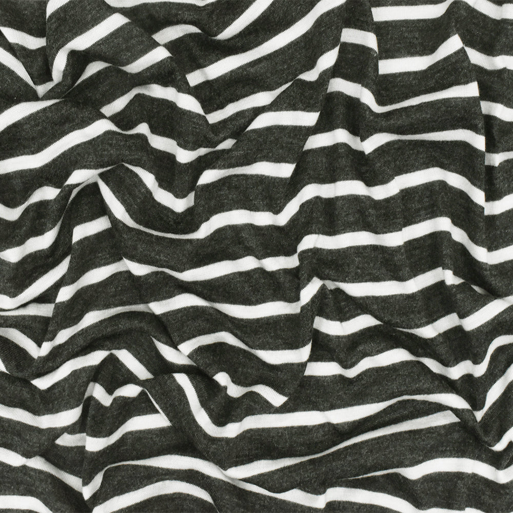 Off Black-White Striped Viscose Jersey Knit Fabric