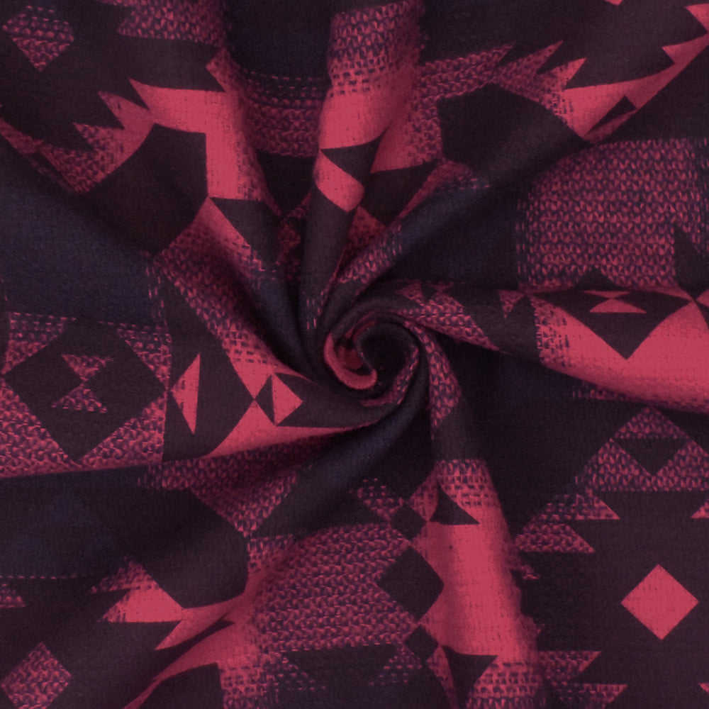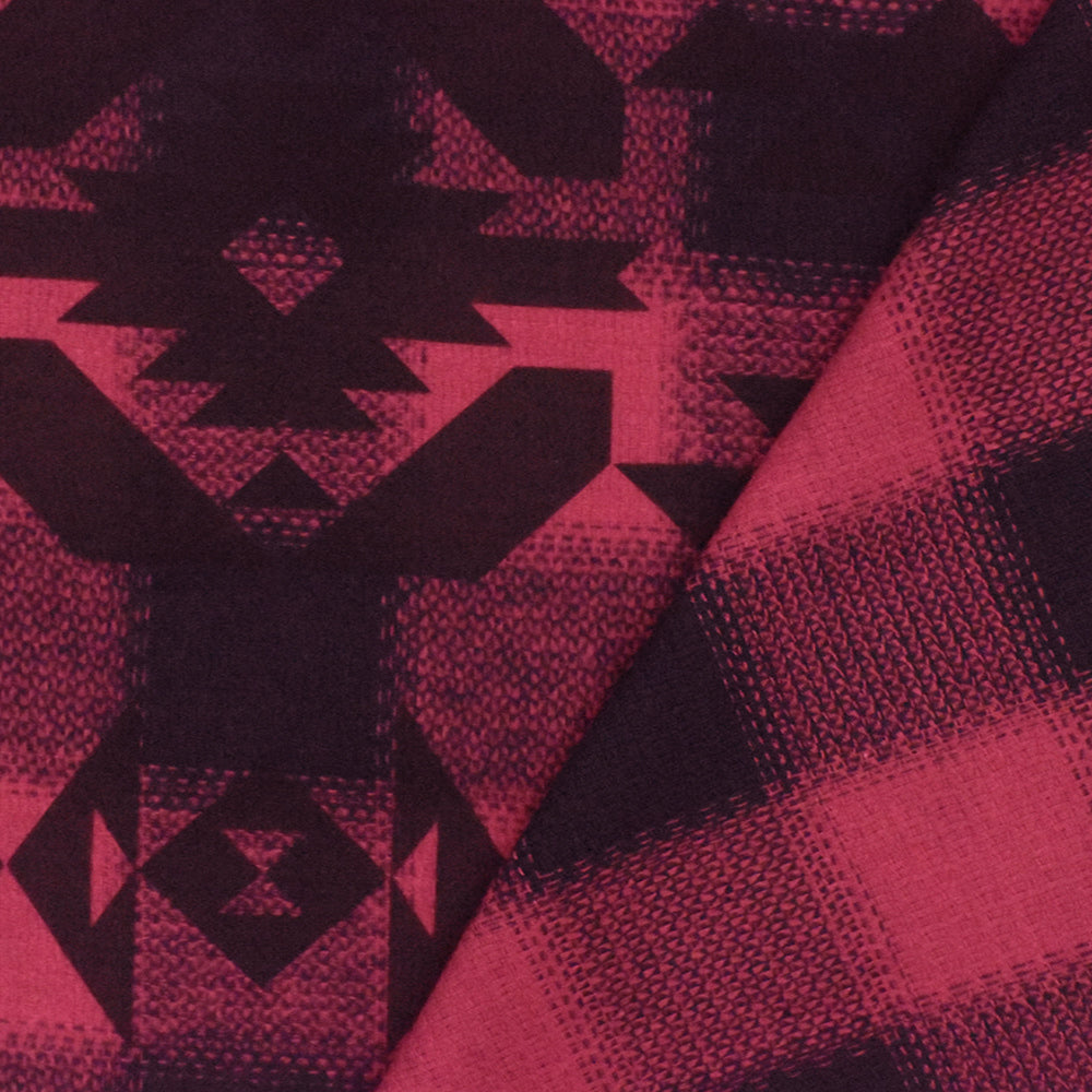 Red-Brown-Navy Tribal Printed Cotton Check Dobby Woven Fabric