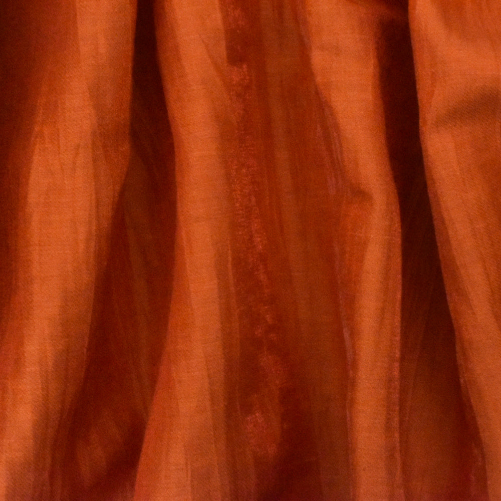 Royal Orange Solid Crinkle Satin-like Linen-Nylon Dobby Woven Fabric