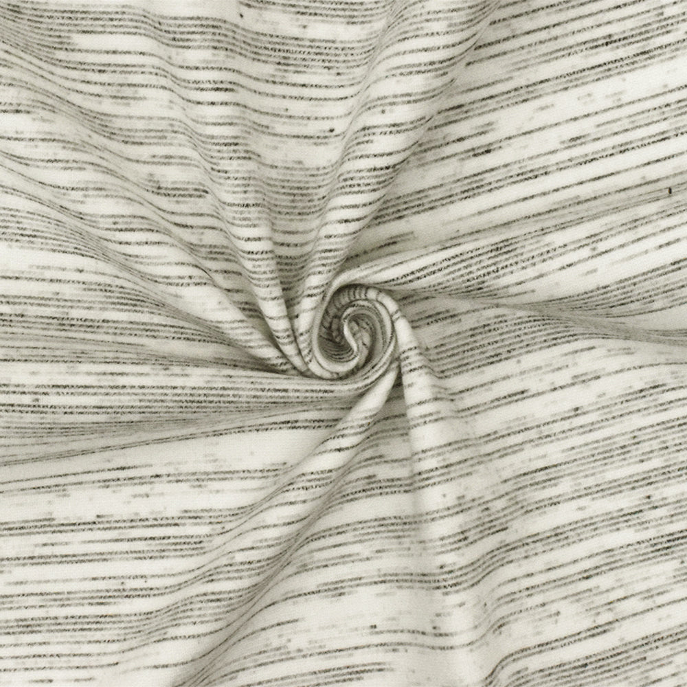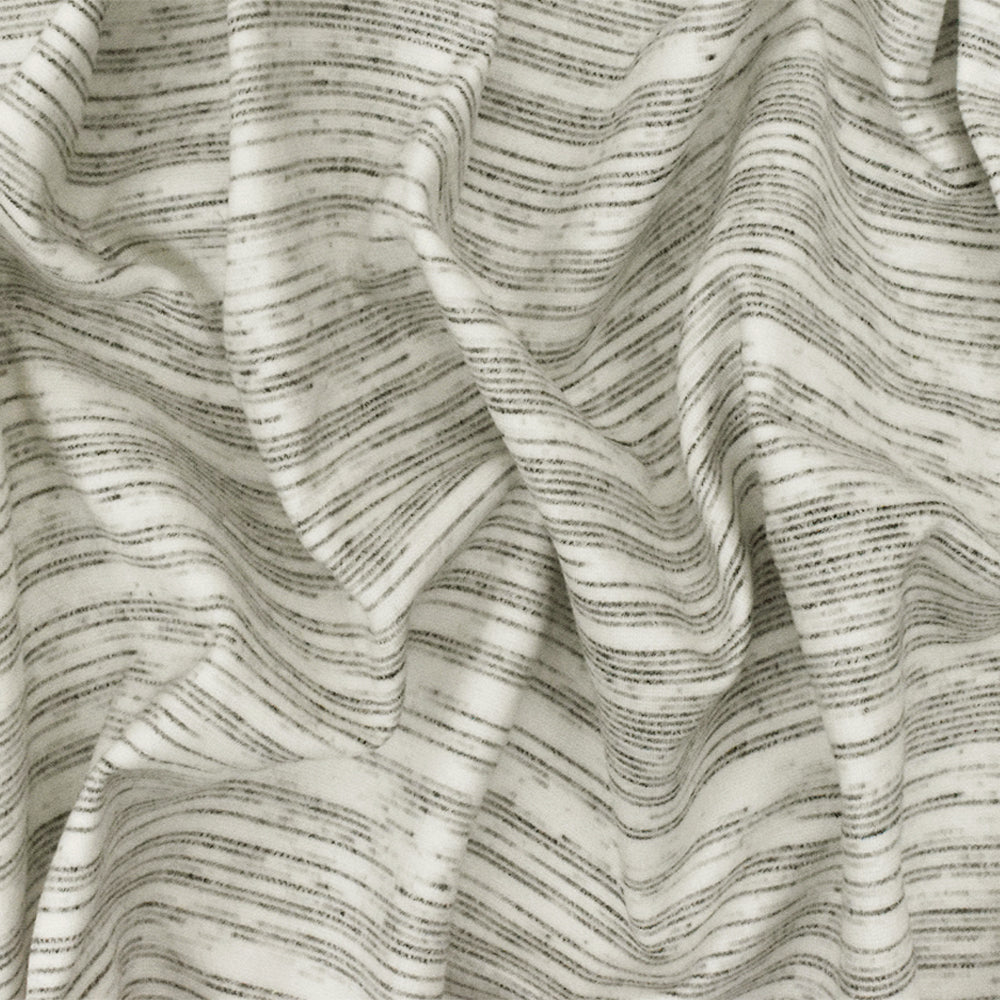 Simple Ivory-Black-Gray Slub Striped Pattern Stretch Double Knit Fabric