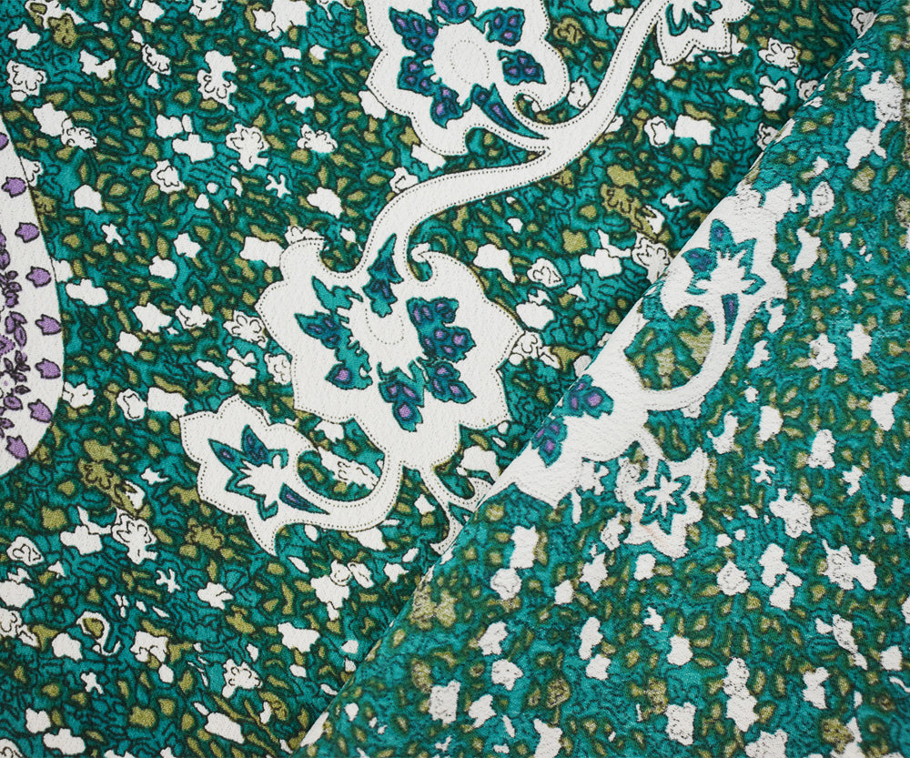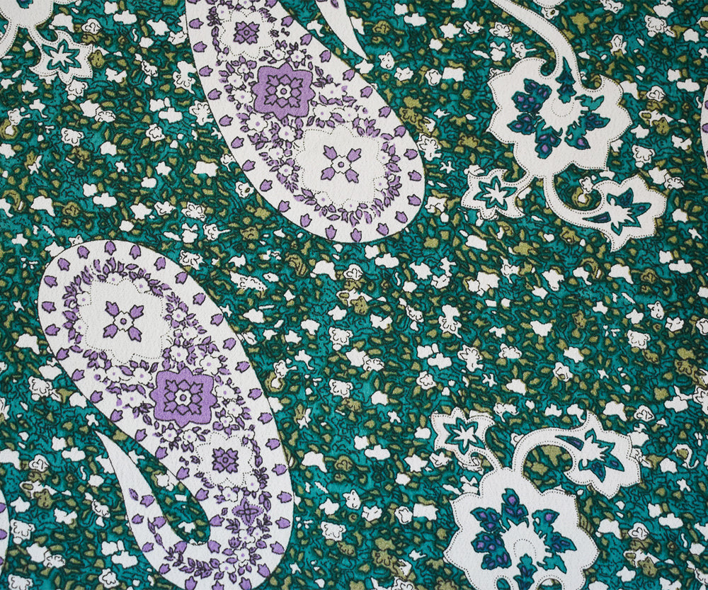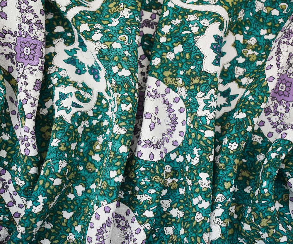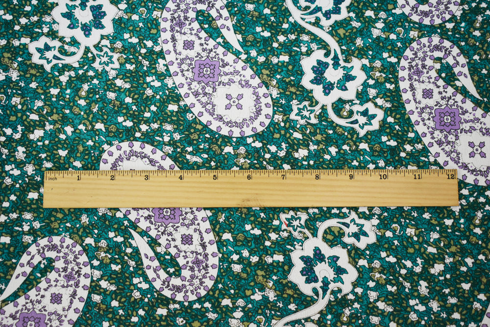 Turquoise-Purple-Multi Paisley Abstract Printed Rayon Crepe Faille Fabric