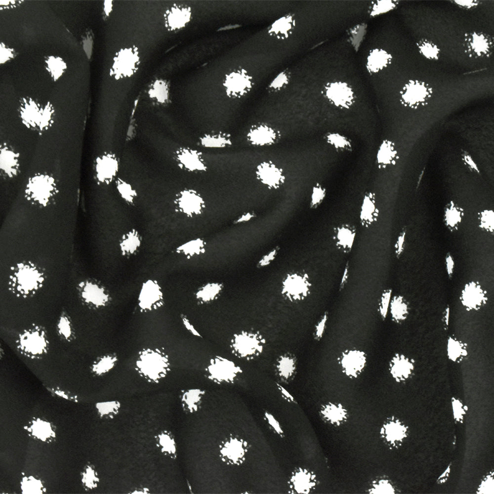 Basic Black-White Famous Designer Blurry Dot Printed Chiffon Fabric