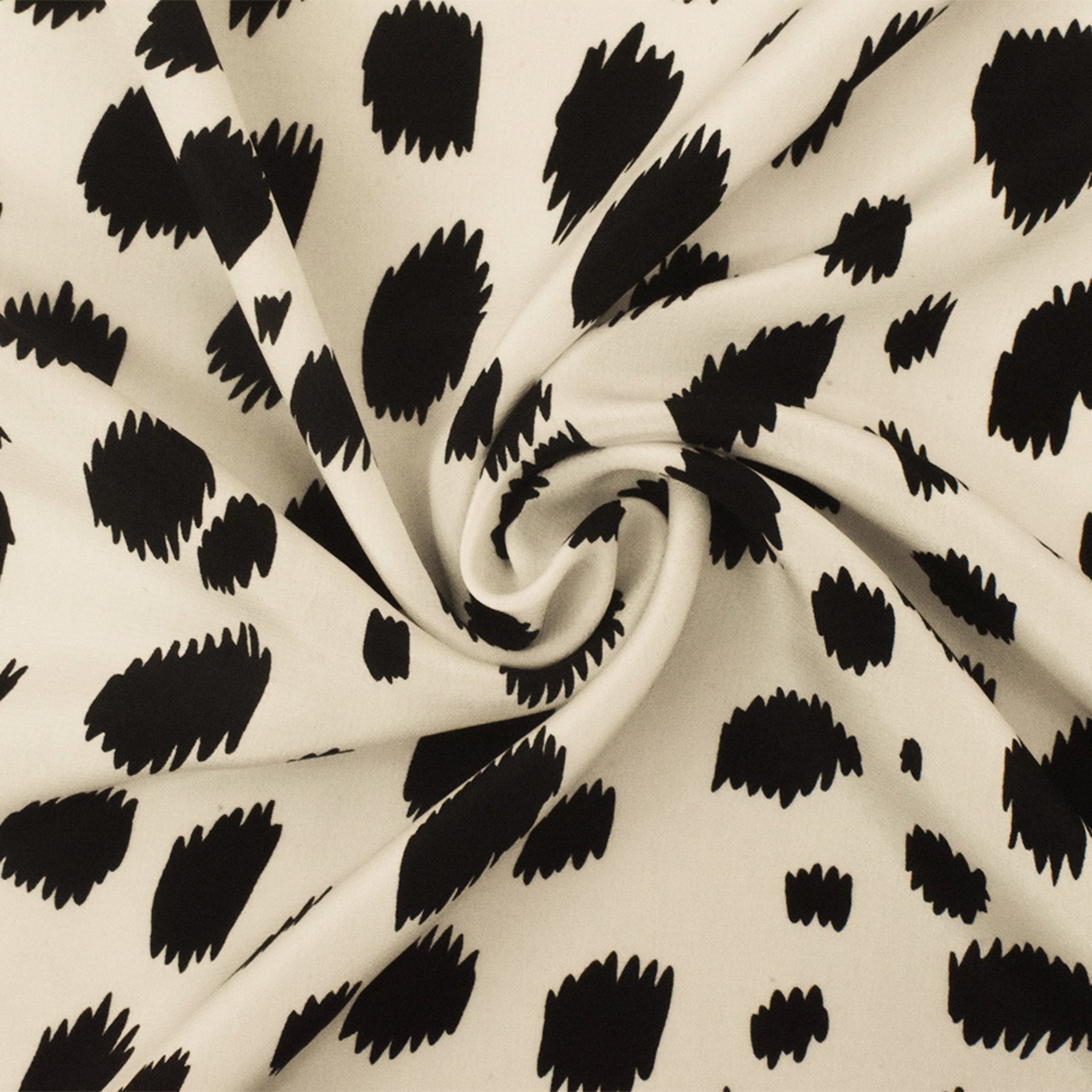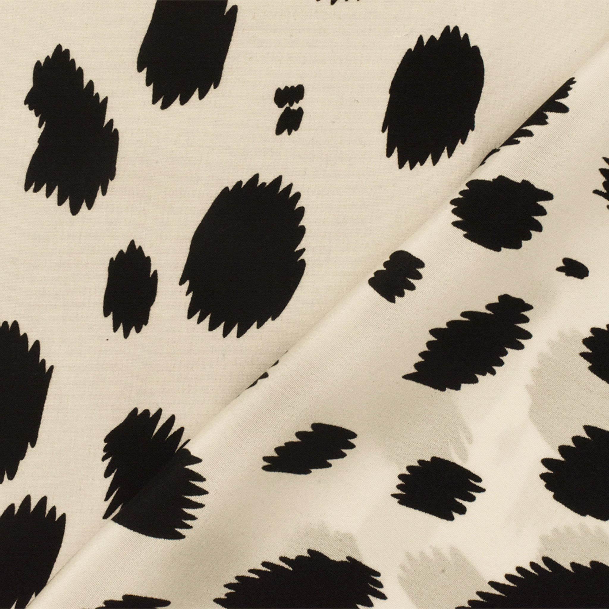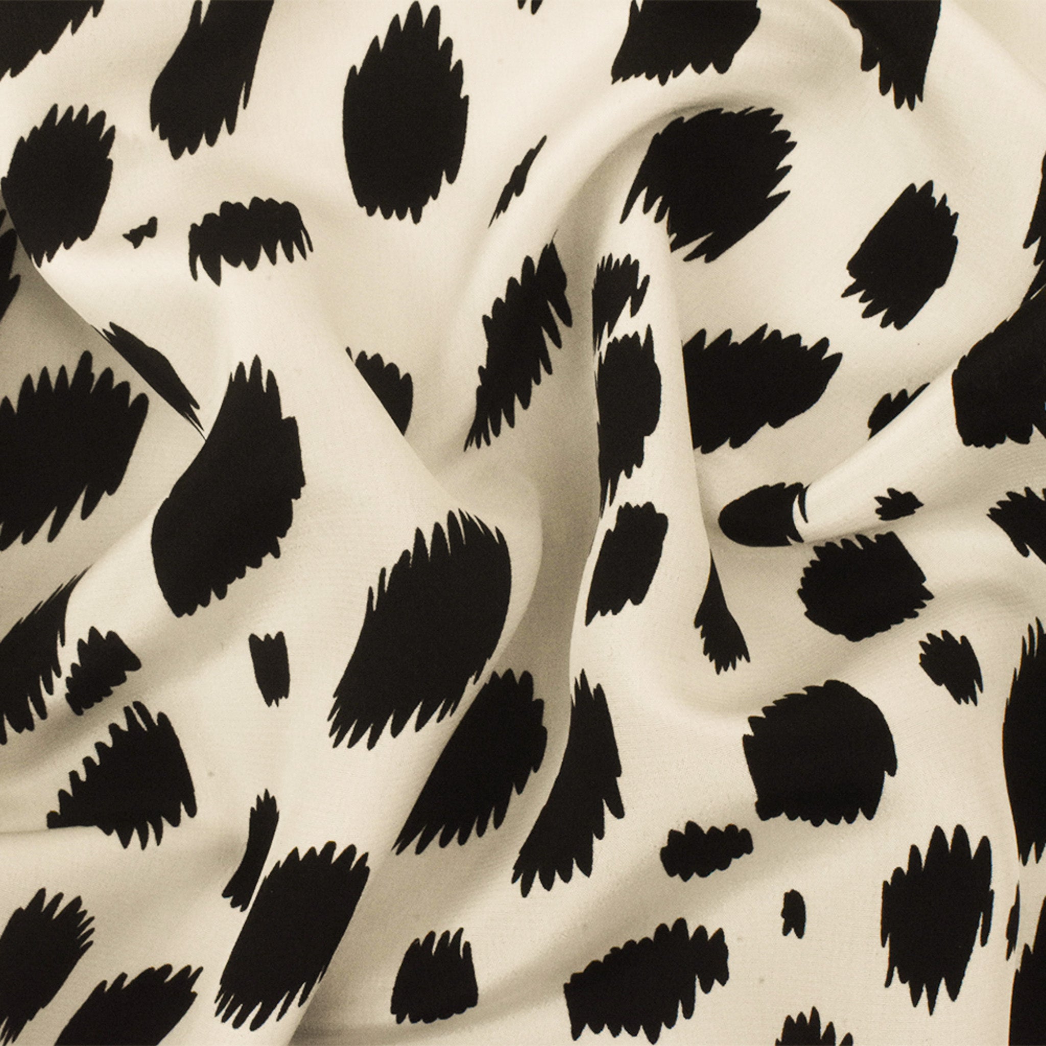 Black-Ivory Famous Designer Silk Spots Printed Crepe De Chine Fabric