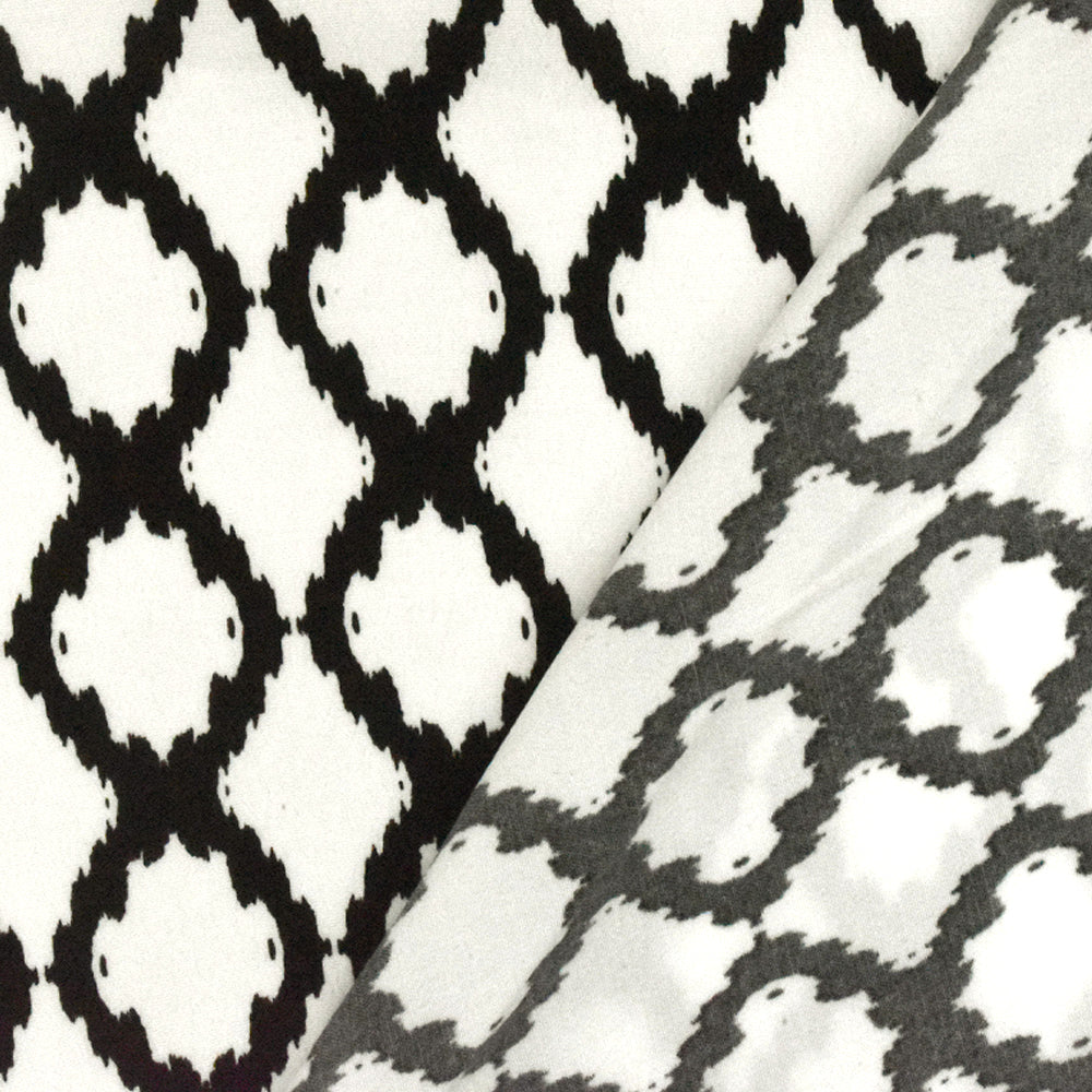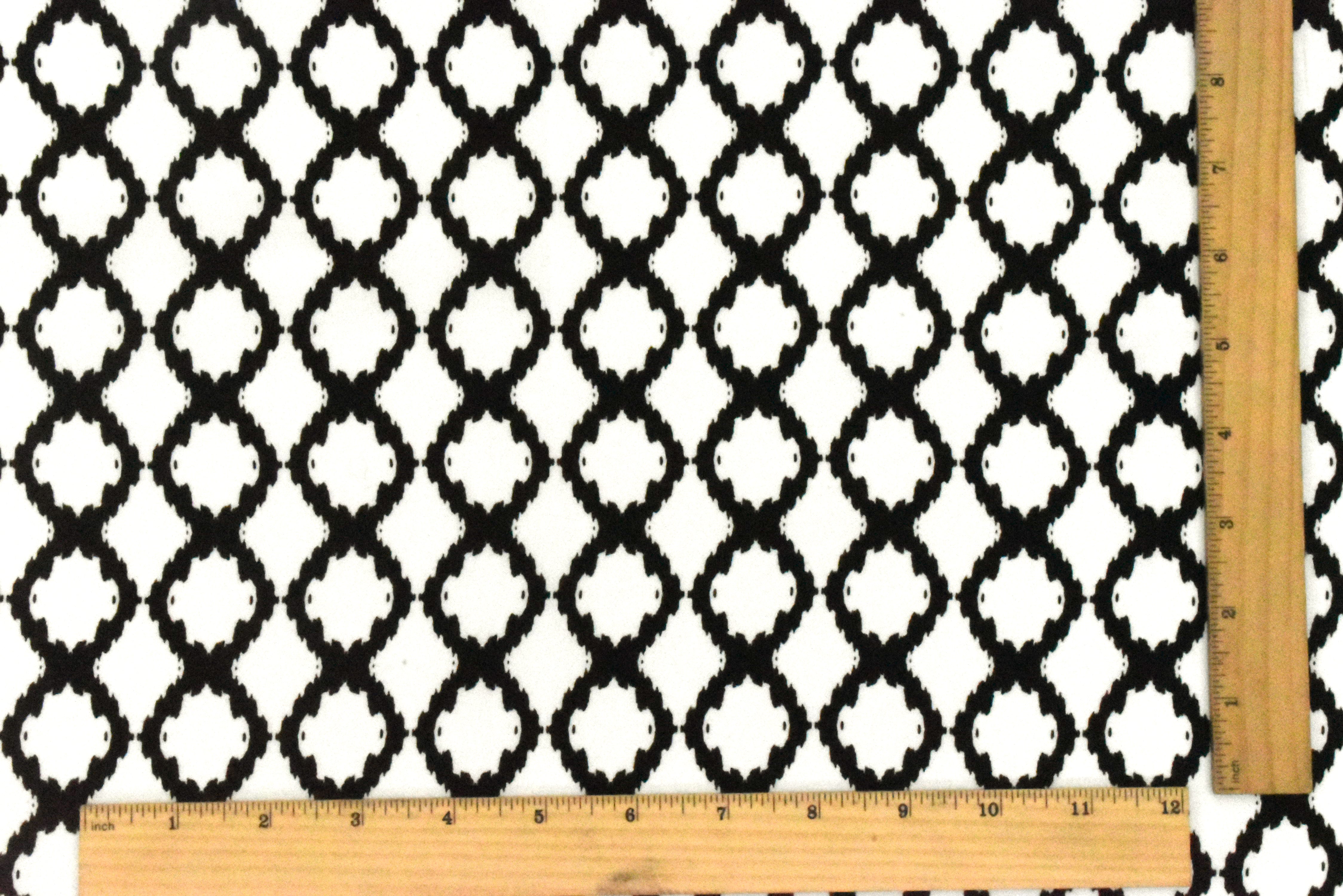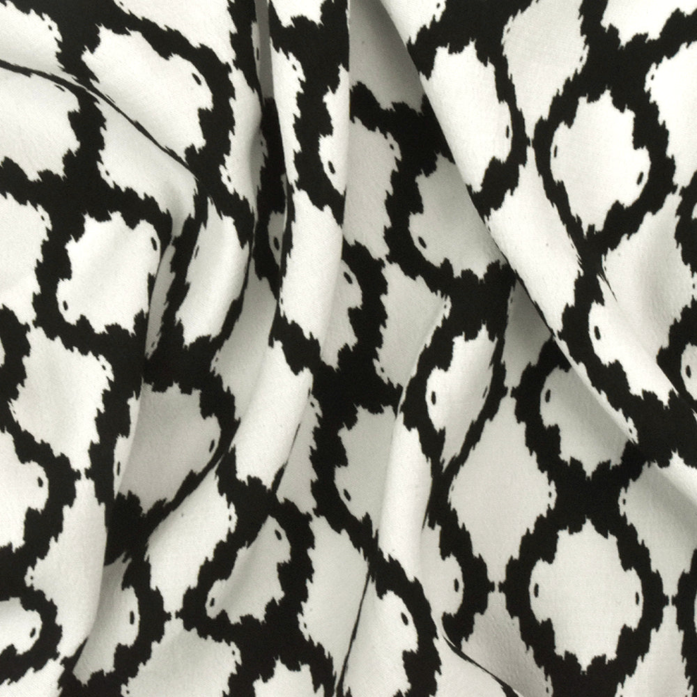 Black-White Famous Designer Ikat Ogee Printed Cotton Crepe Faille Fabric