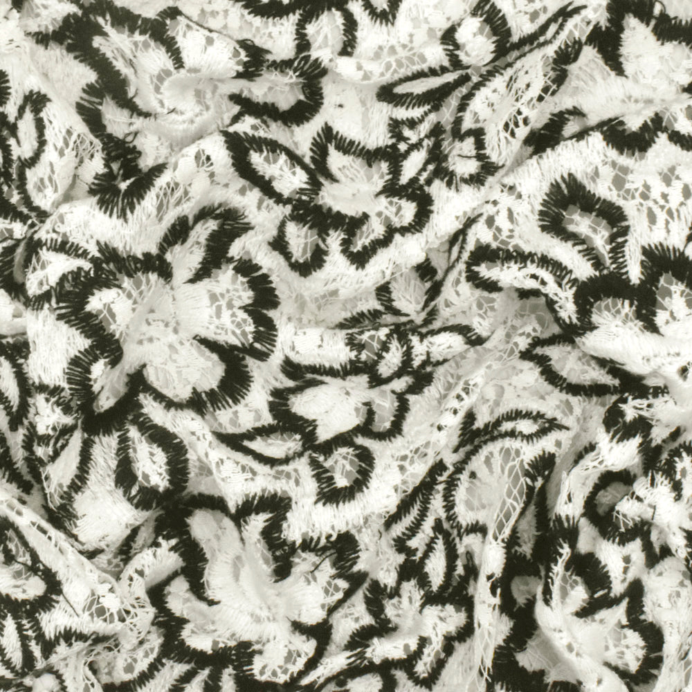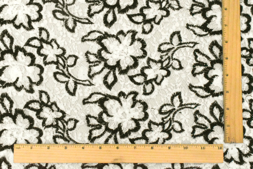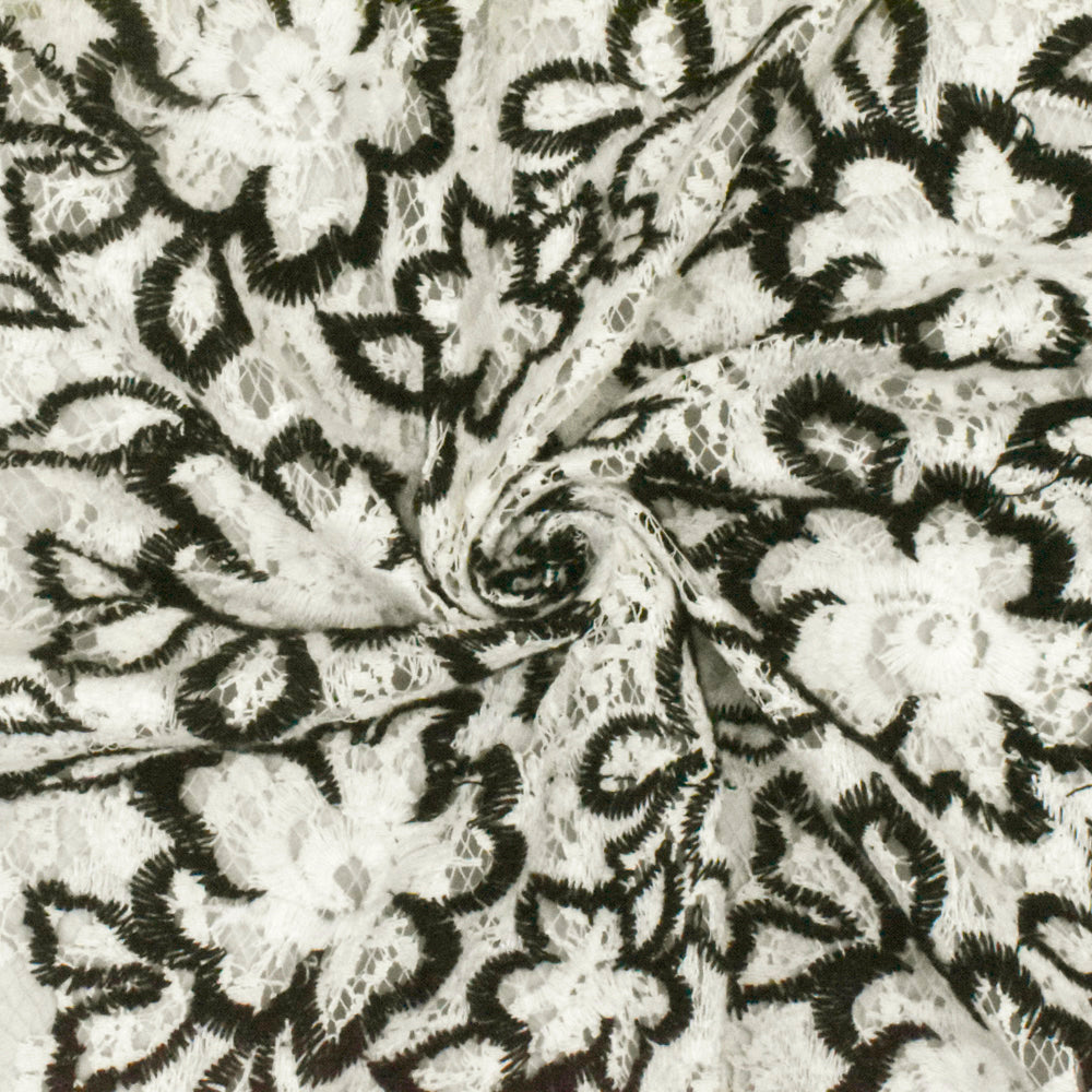 Black-White-Ivory Floral Embroidered Lace Knit Fabric