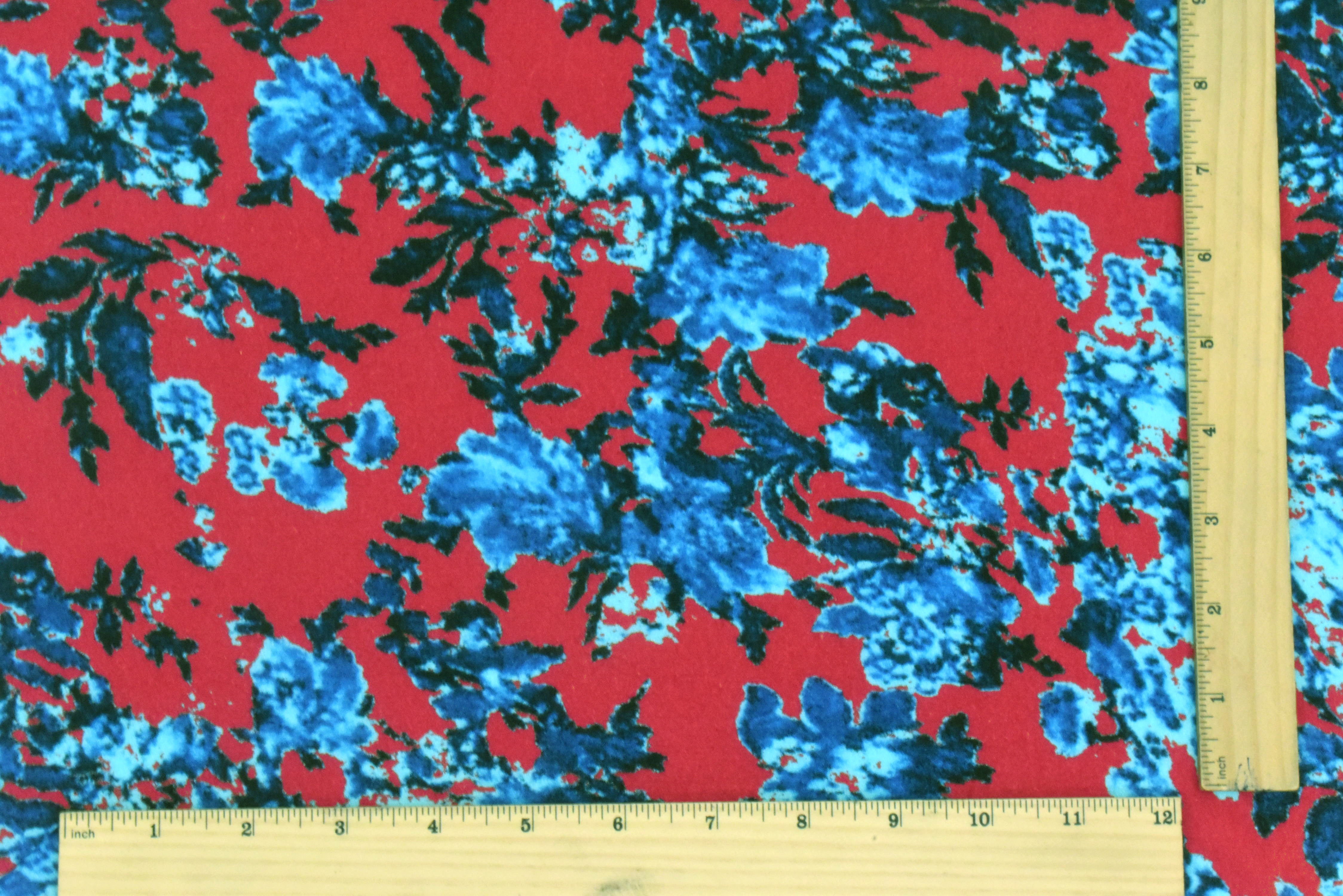 Blue-Red-Multi Famous Designer Floral Printed Rayon Gauze Fabric