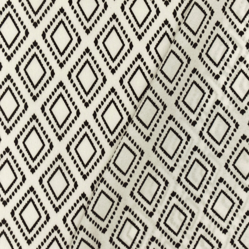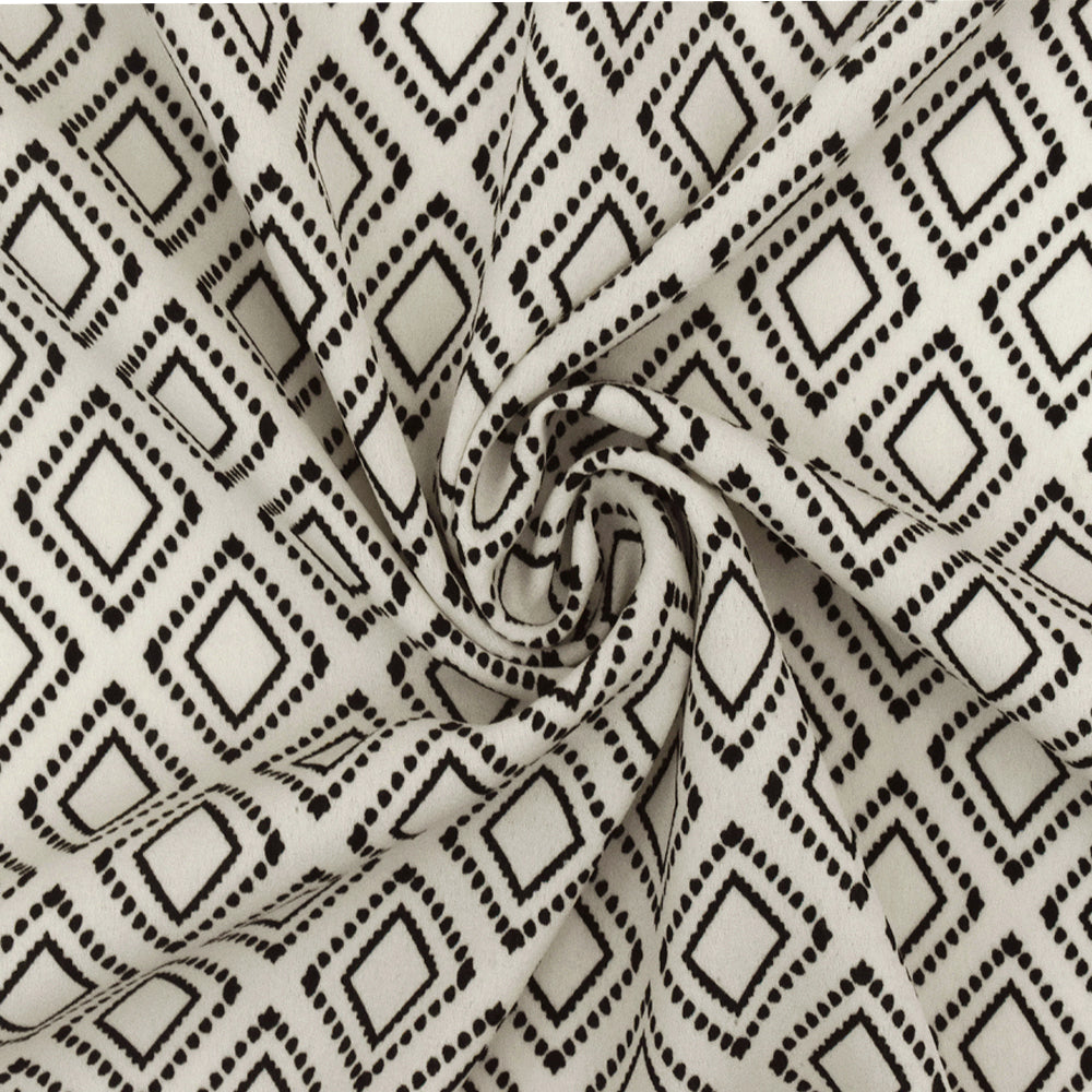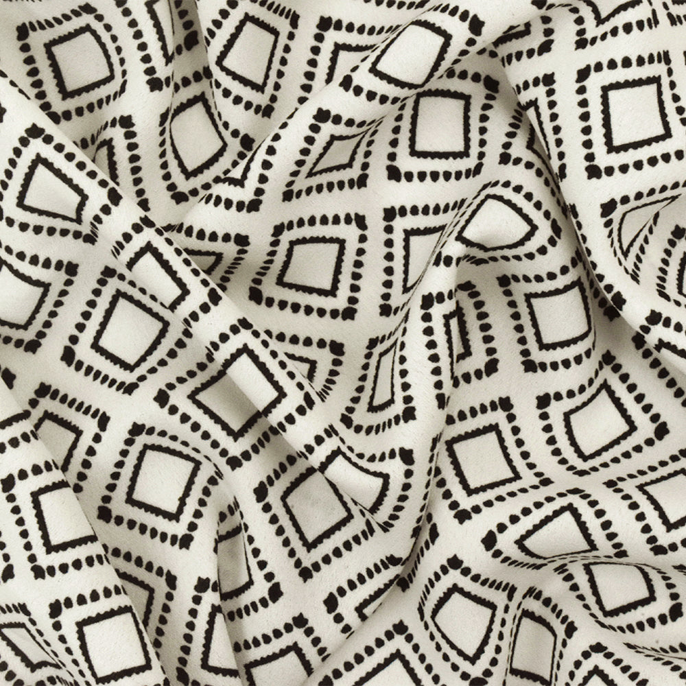 Bone Ivory-Black Famous Designer Diamond Mark Printed Georgette Fabric