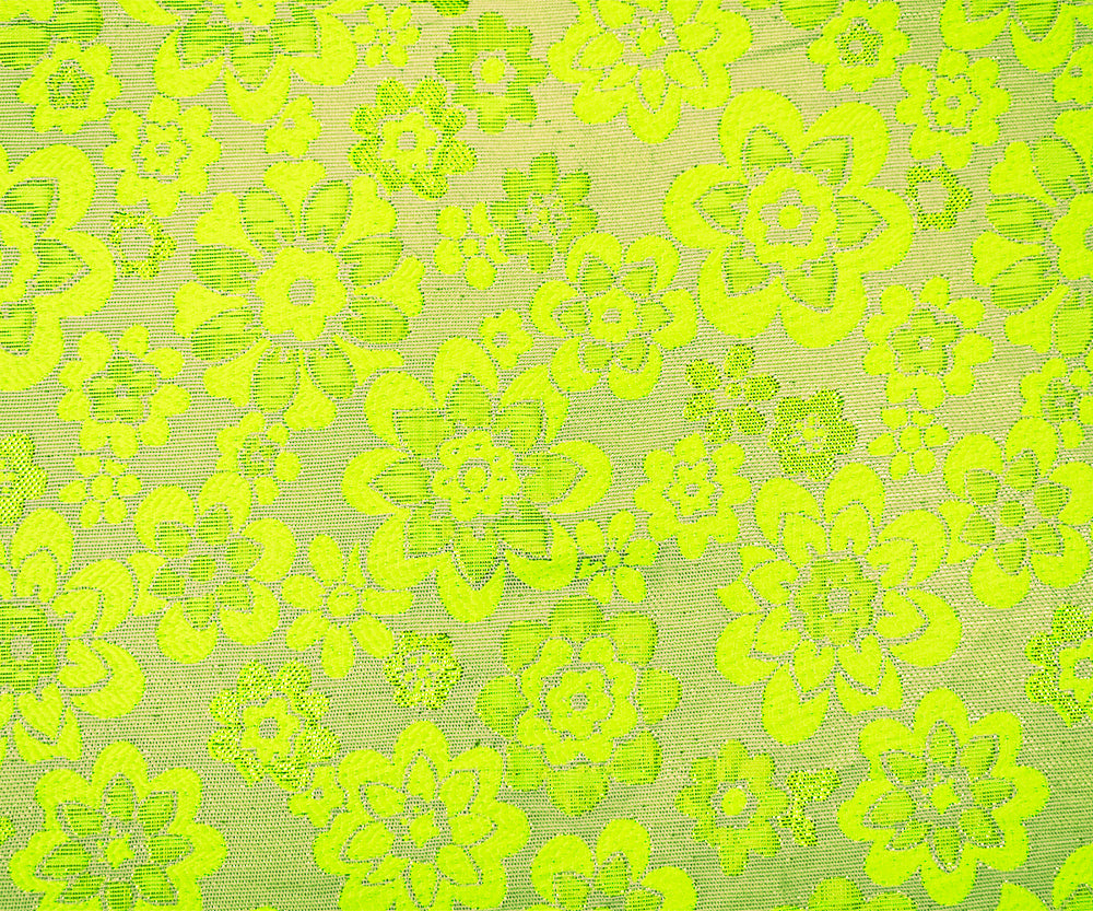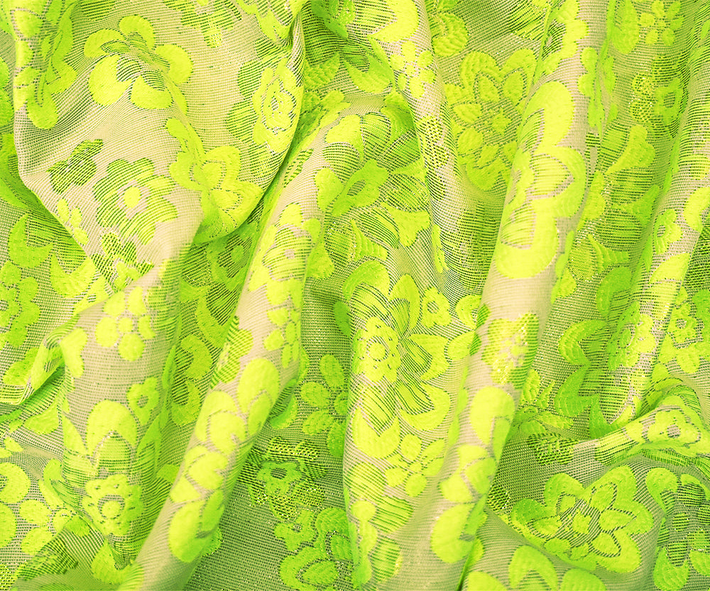 Neon Yellow-Gold-Multi Poly Blend Floral Jacquard Brocade Woven Fabric