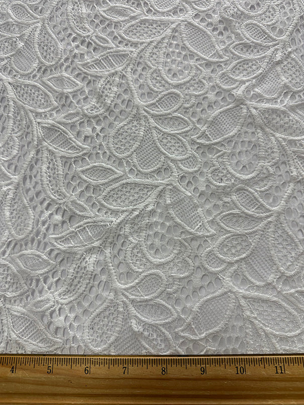 Off White Leaf Stretch Lace Fabric