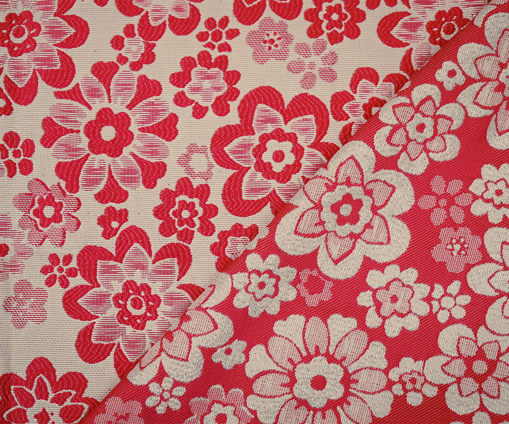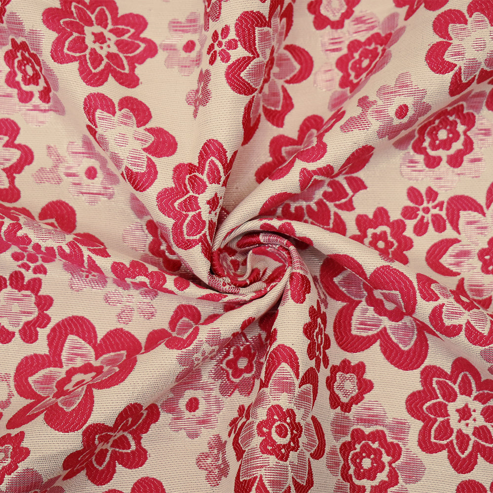 Pink-Silver-Beige Polyester Blend Metallic Floral Jacquard Brocade Woven Fabric