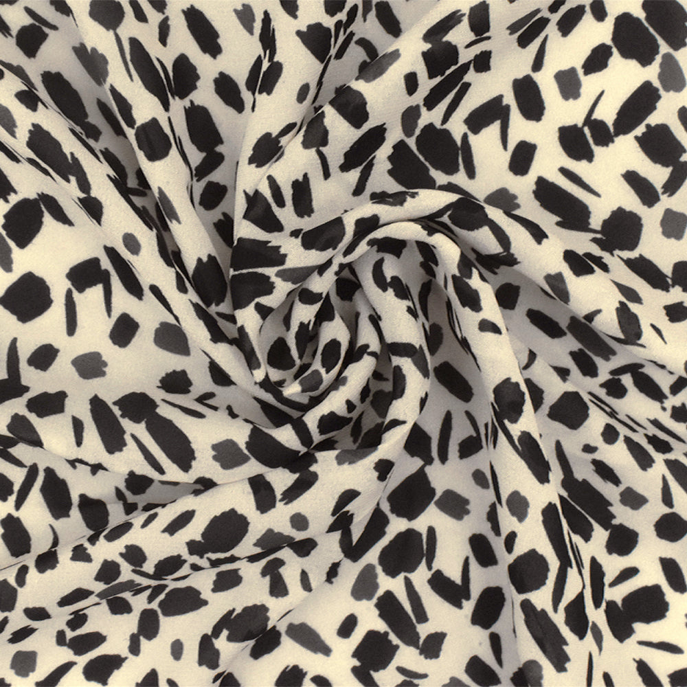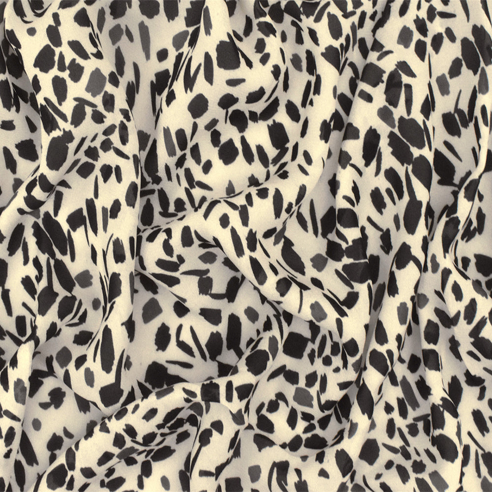 Soft Beige-Black Famous Designer Abstract Print Rayon Chiffon Woven Fabric