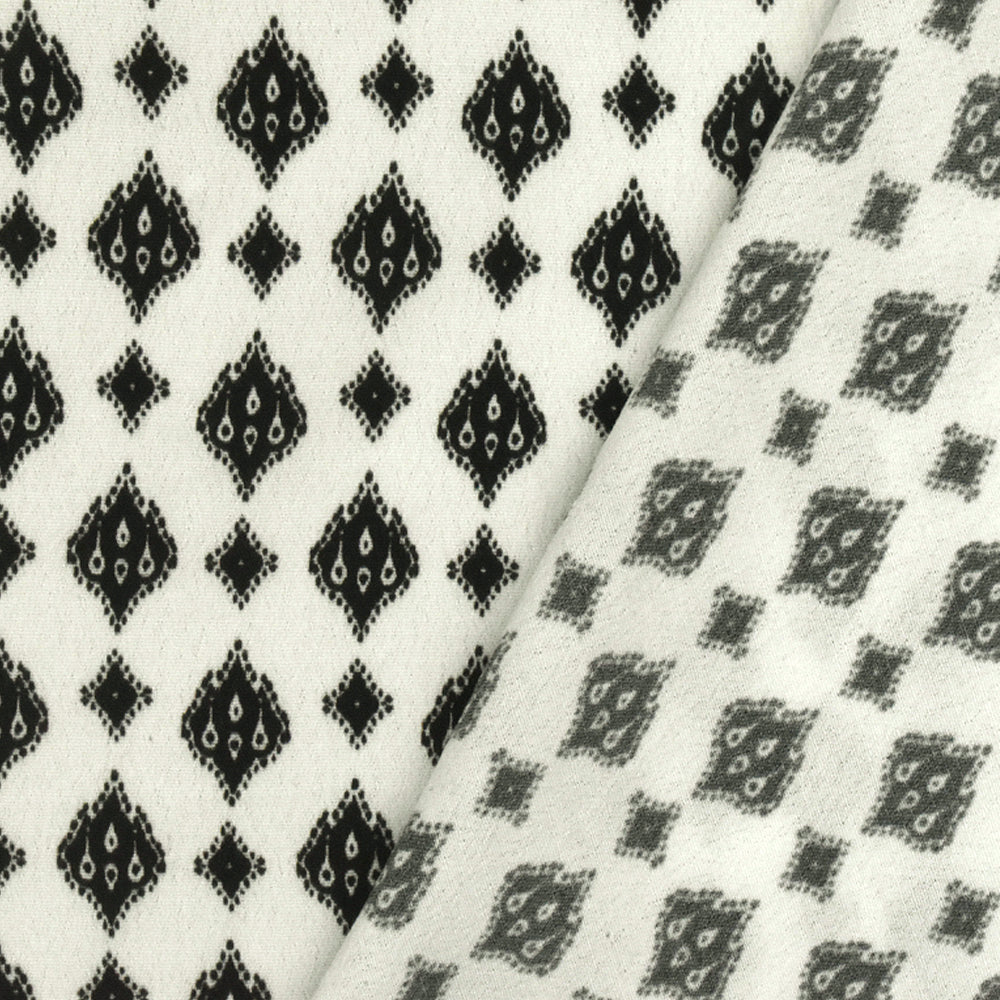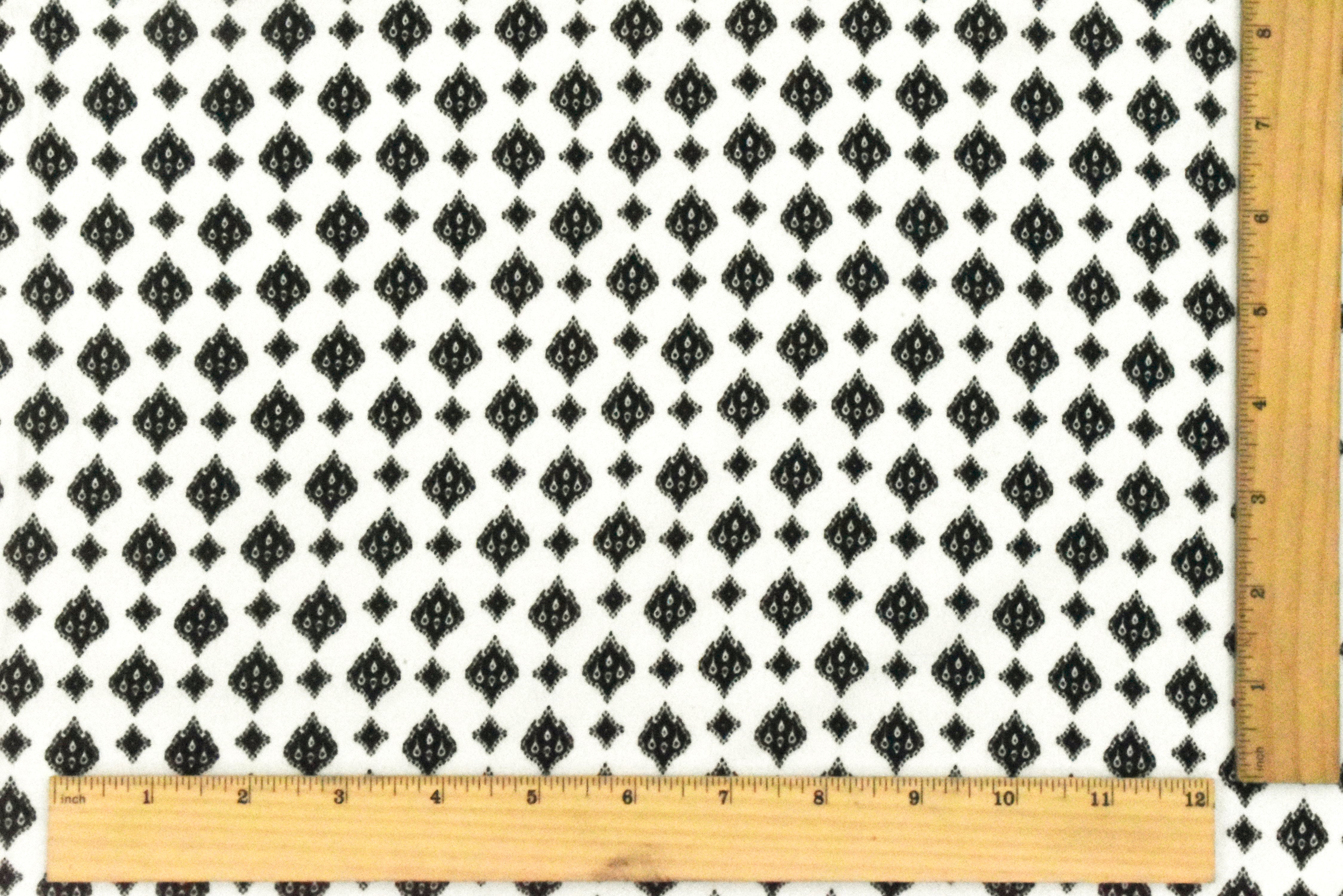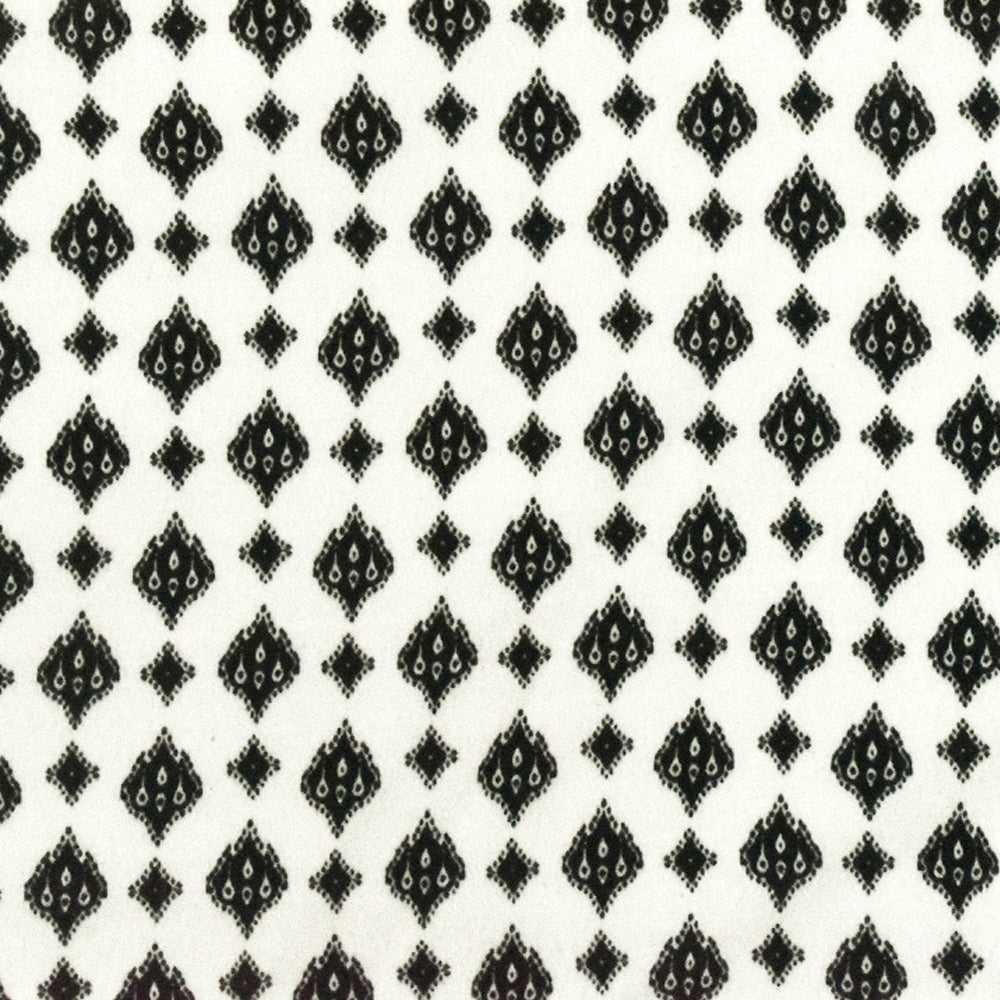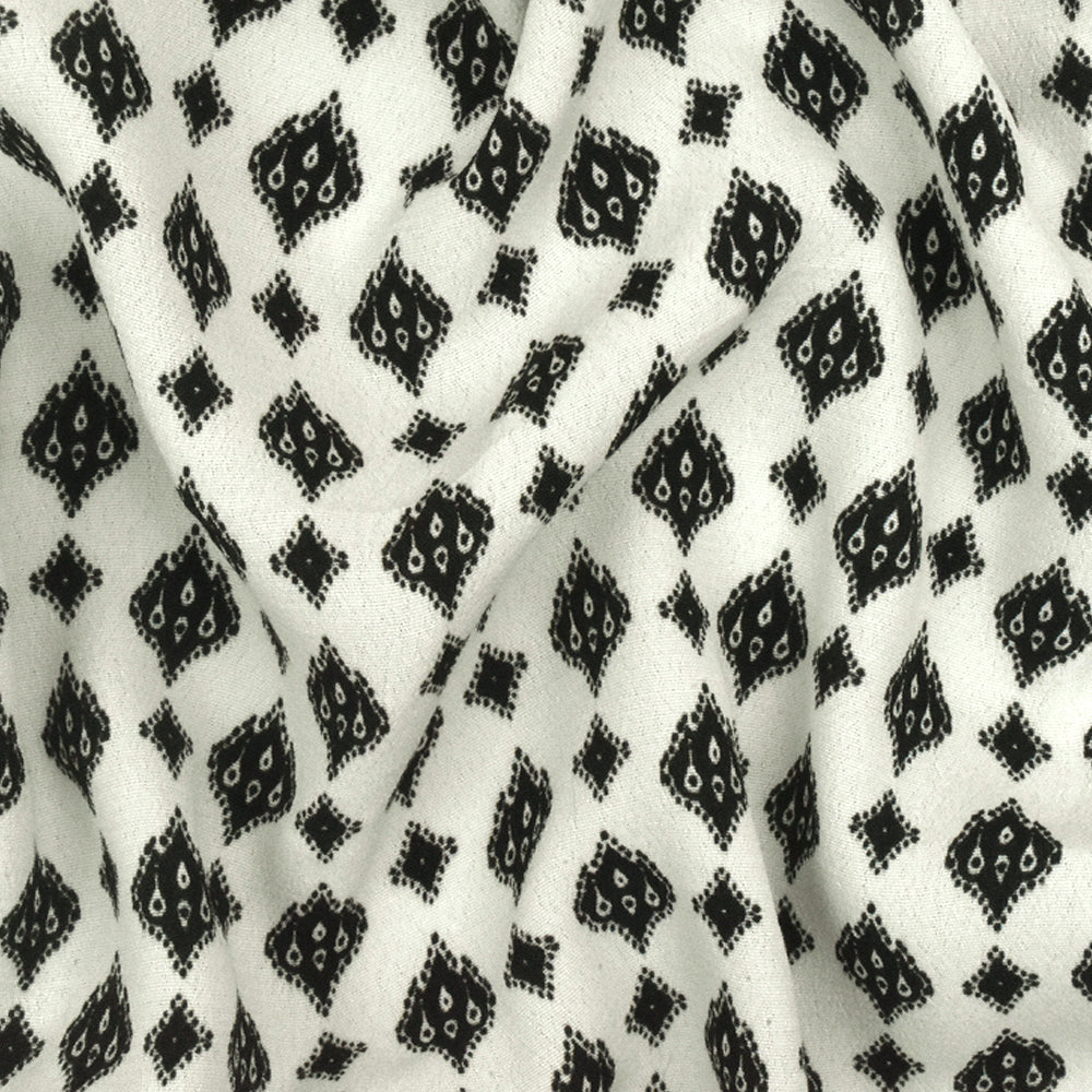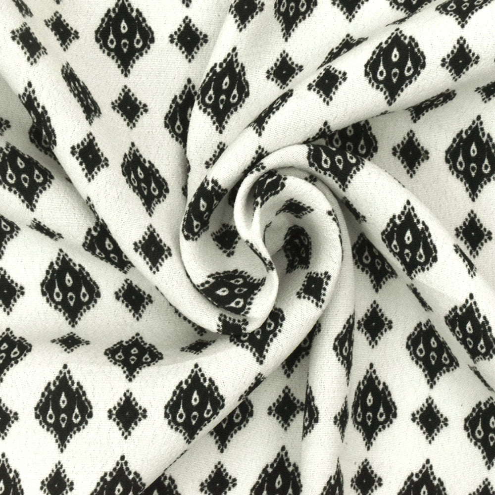 White-Black Famous Designer Ogee Diamond Printed Rayon Crepe Faille Fabric