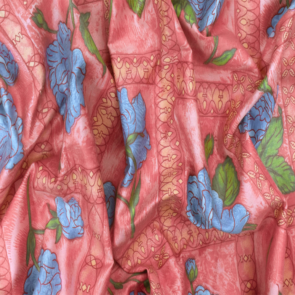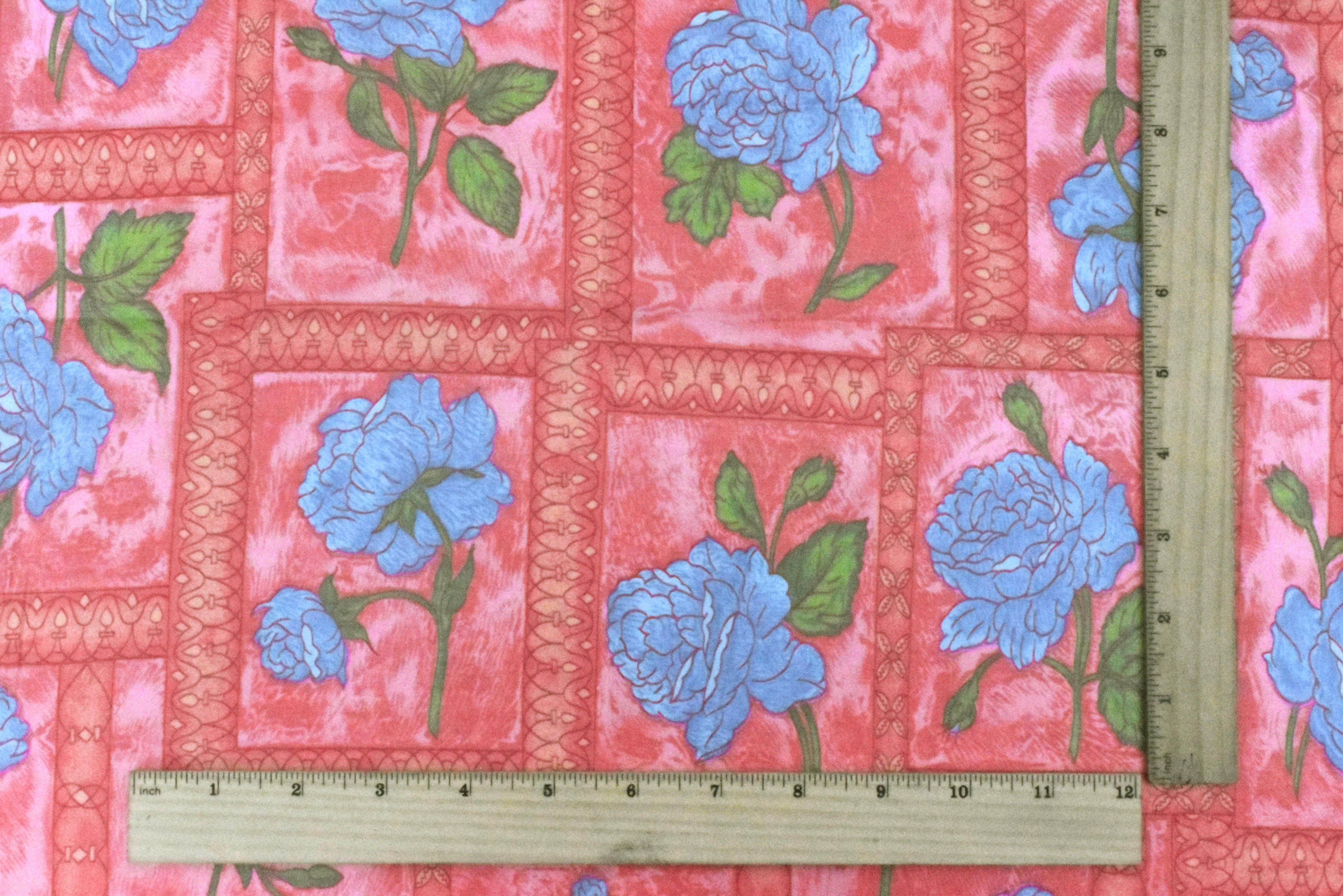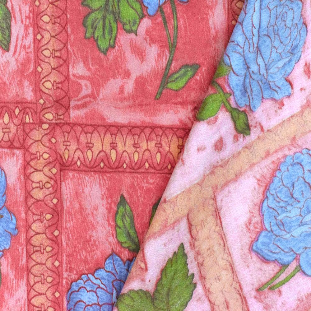 Flower Pink-Blue-Multi Floral Frame Printed Cotton Sateen Fabric