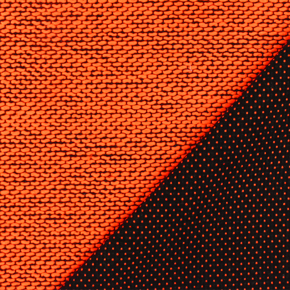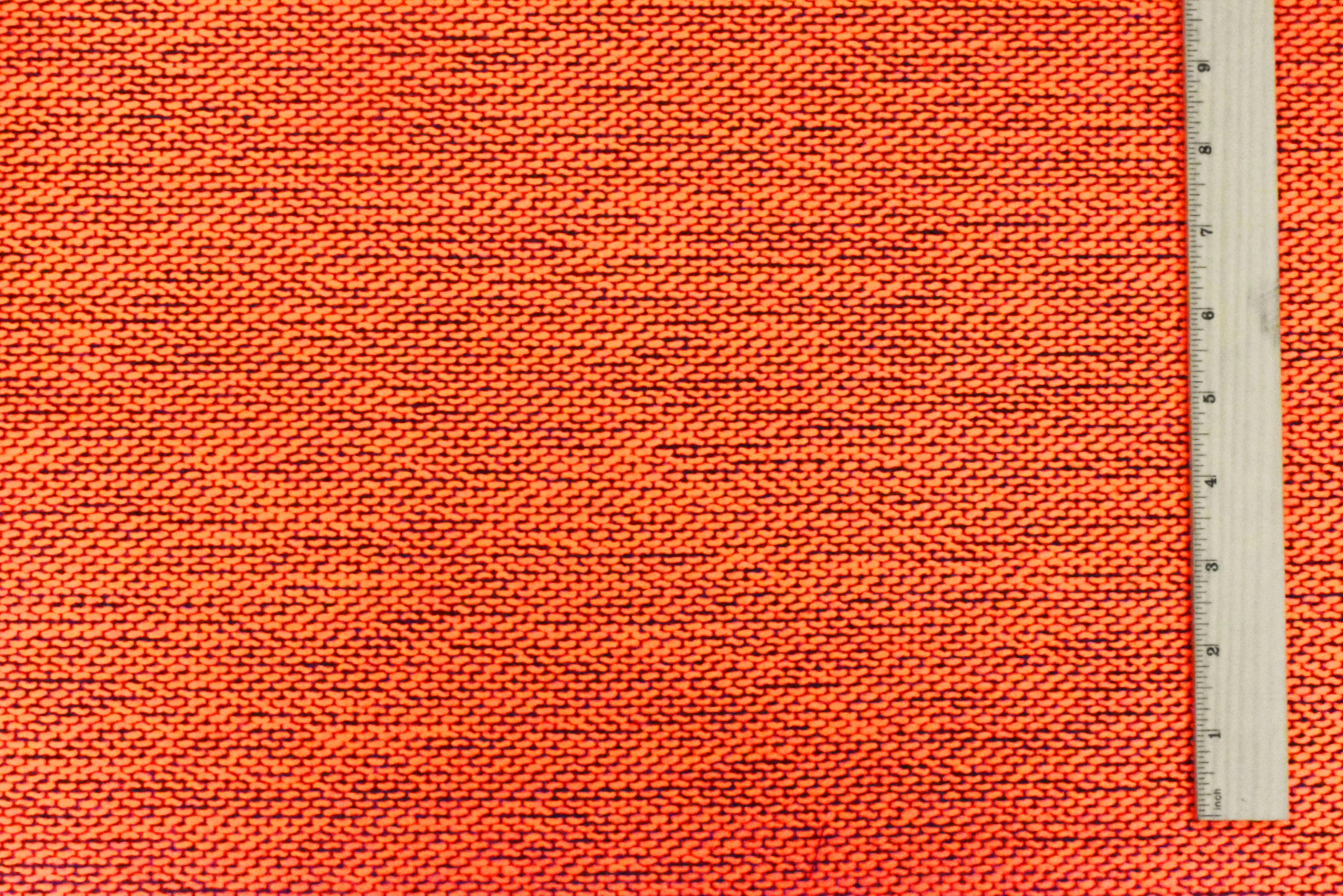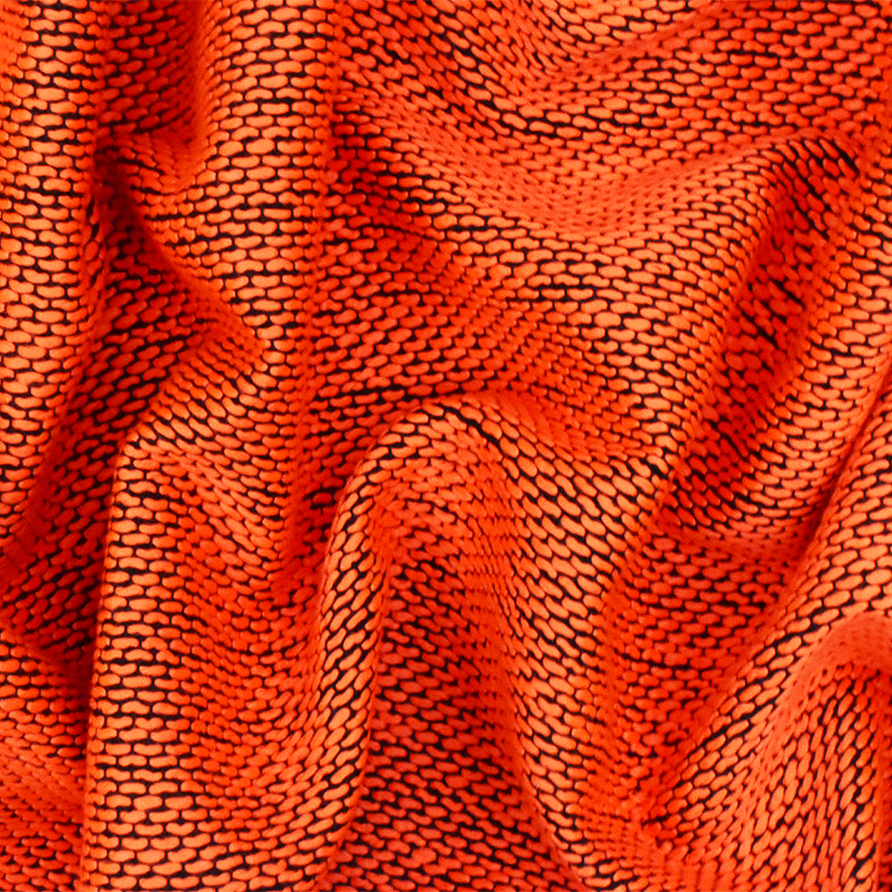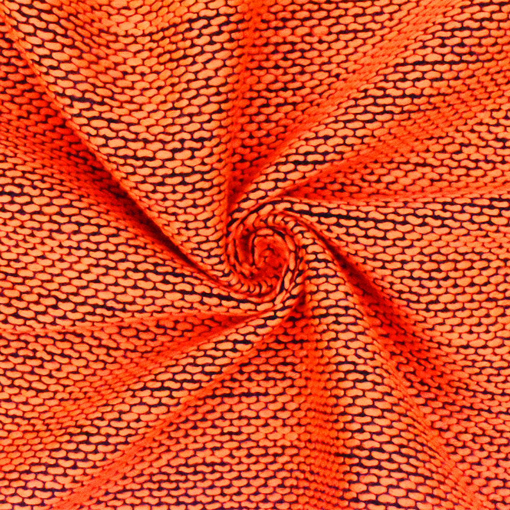 Neon Orange-Black Dotted Poly Woven Fabric