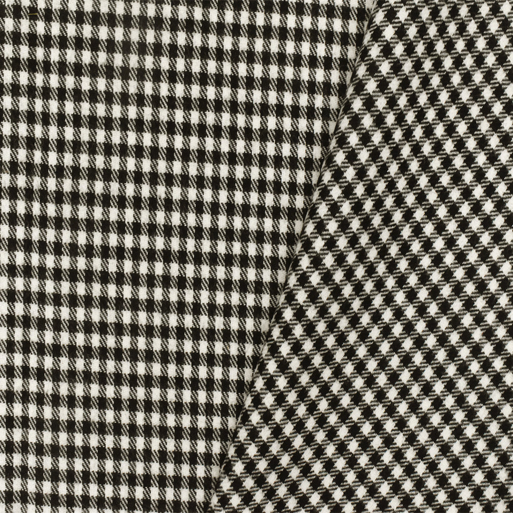 Off-White-Black Gingham Poly Twill Woven Jacketing Fabric