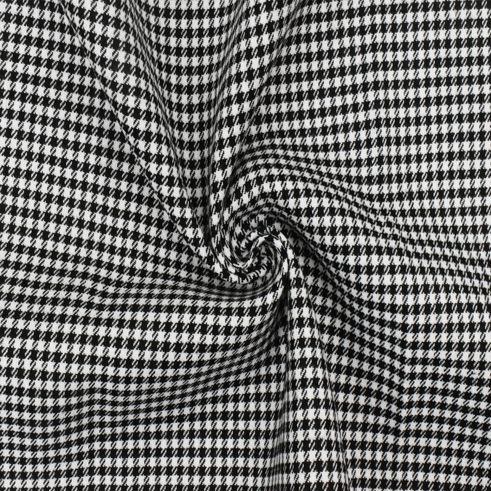 Simple Black-White Houndstooth Check Polyester Twill Woven Fabric