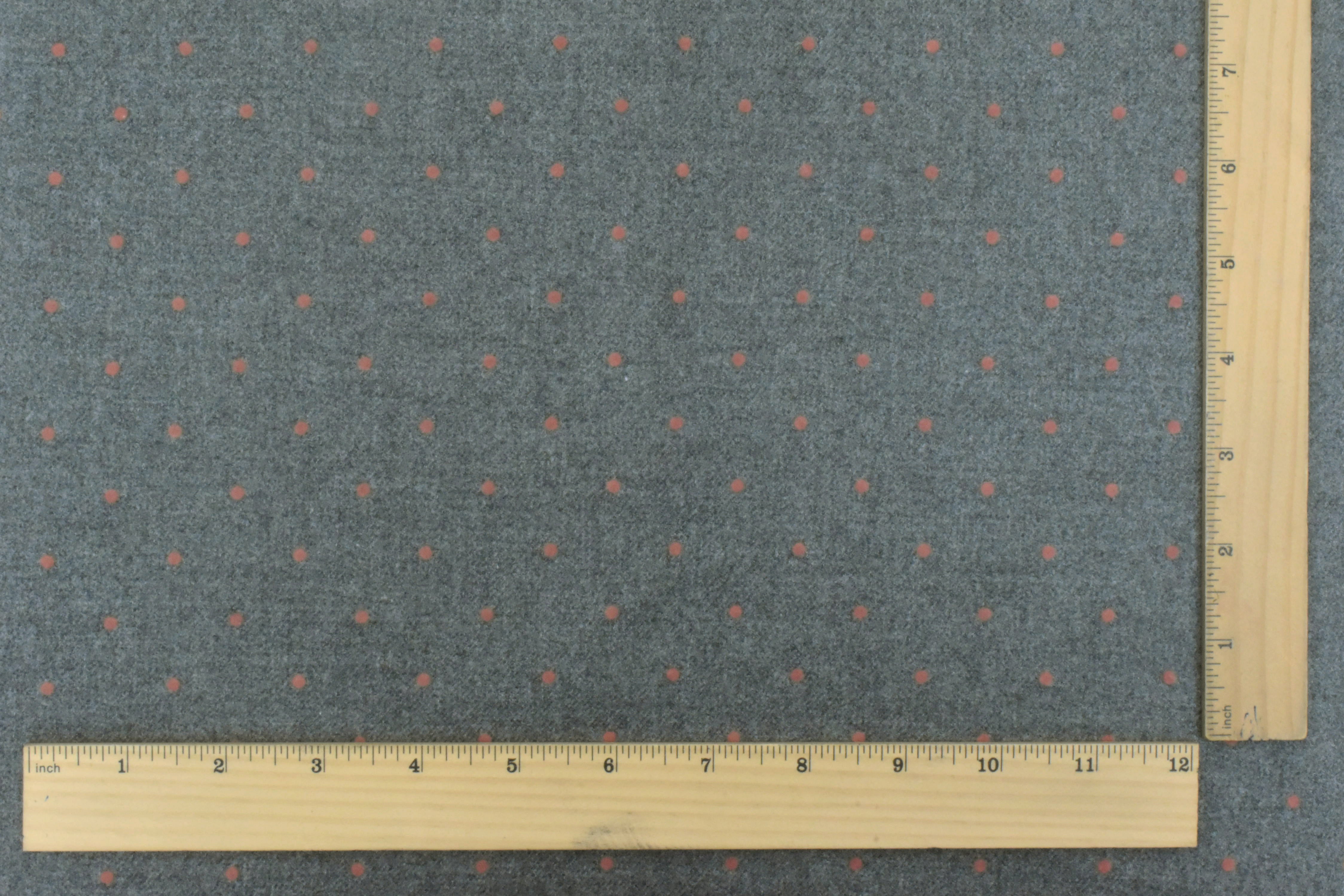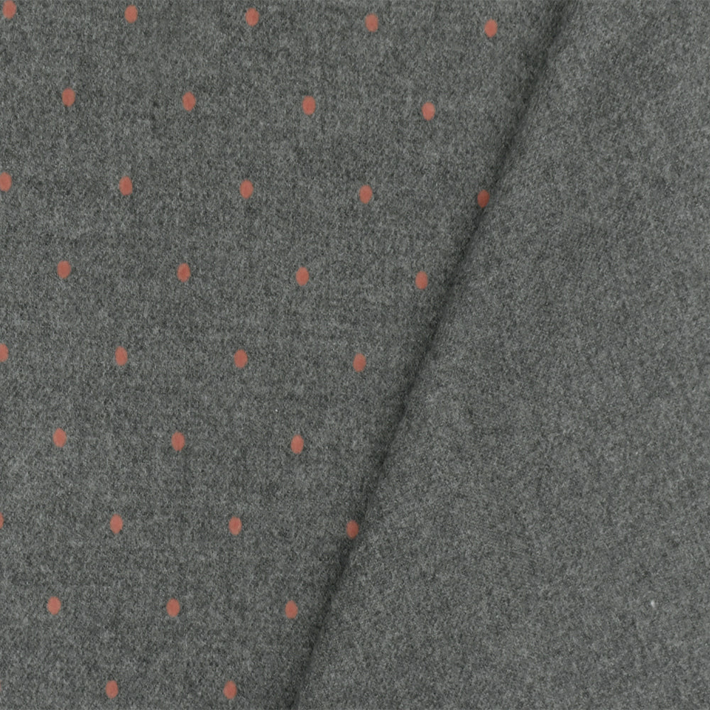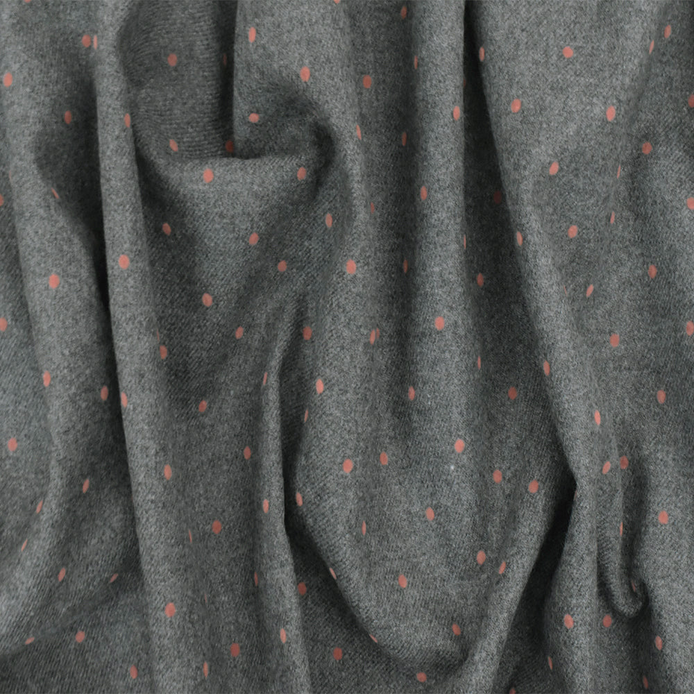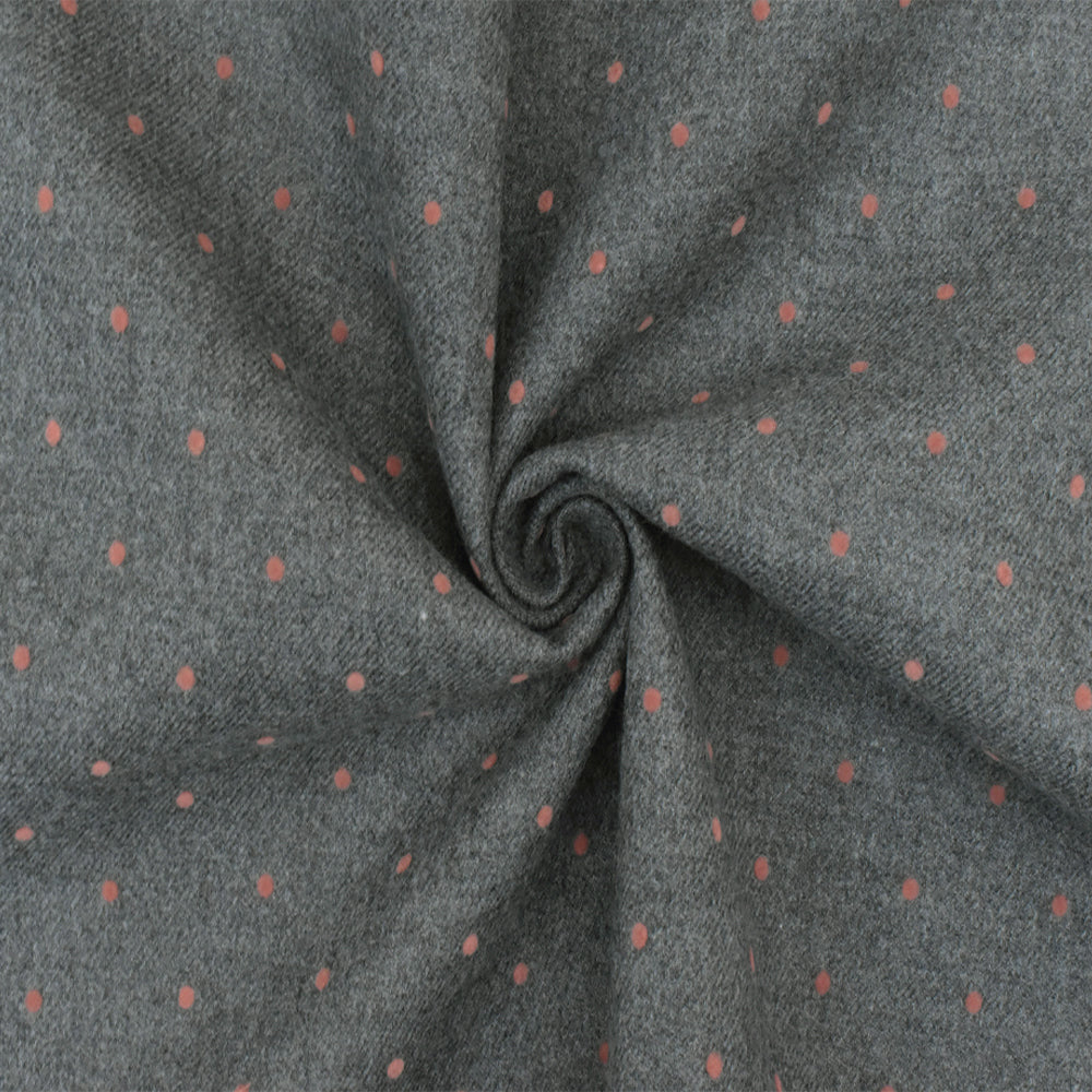 Gray-Coral Pink Dot Velvet Flocked Poly-Wool Twill Woven Jacketing Fabric