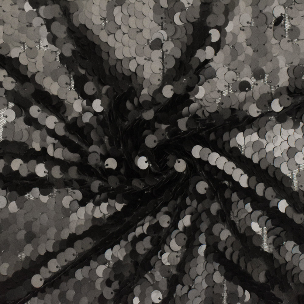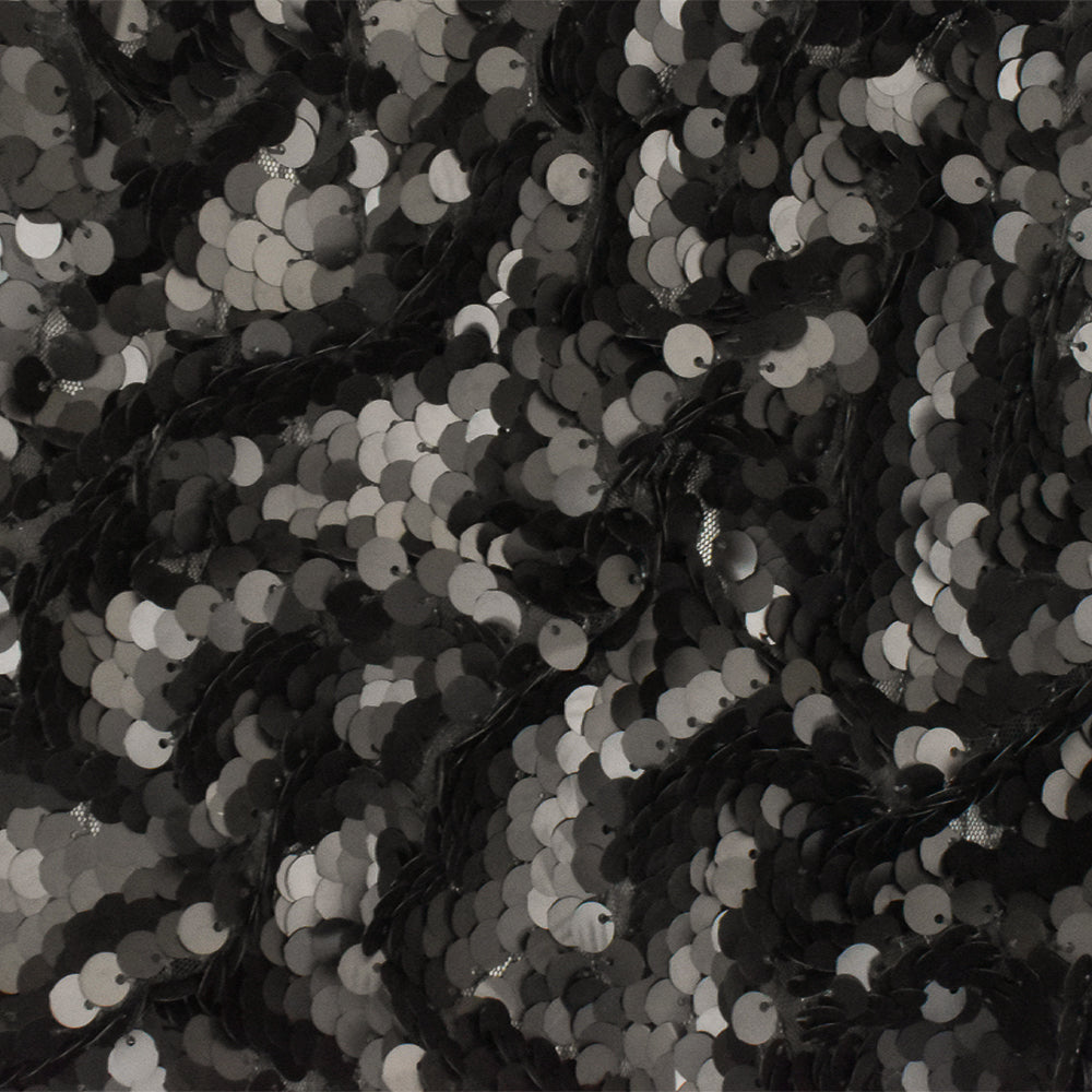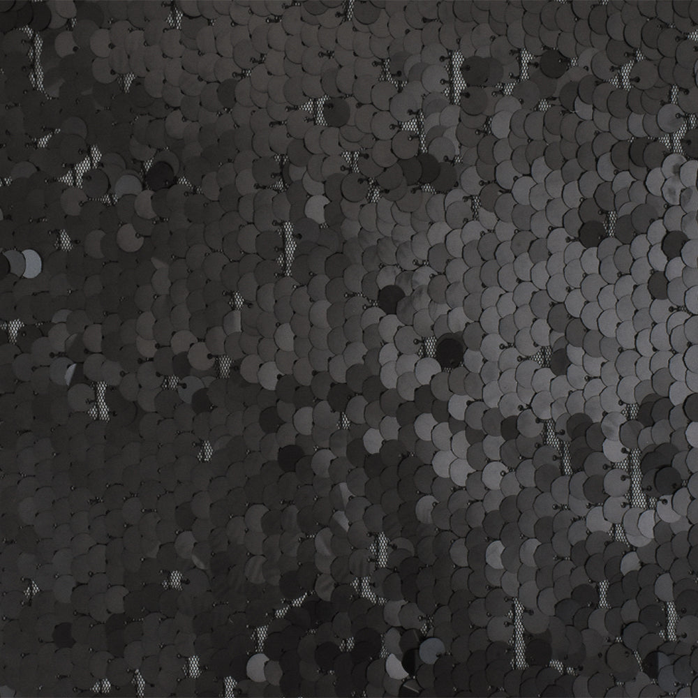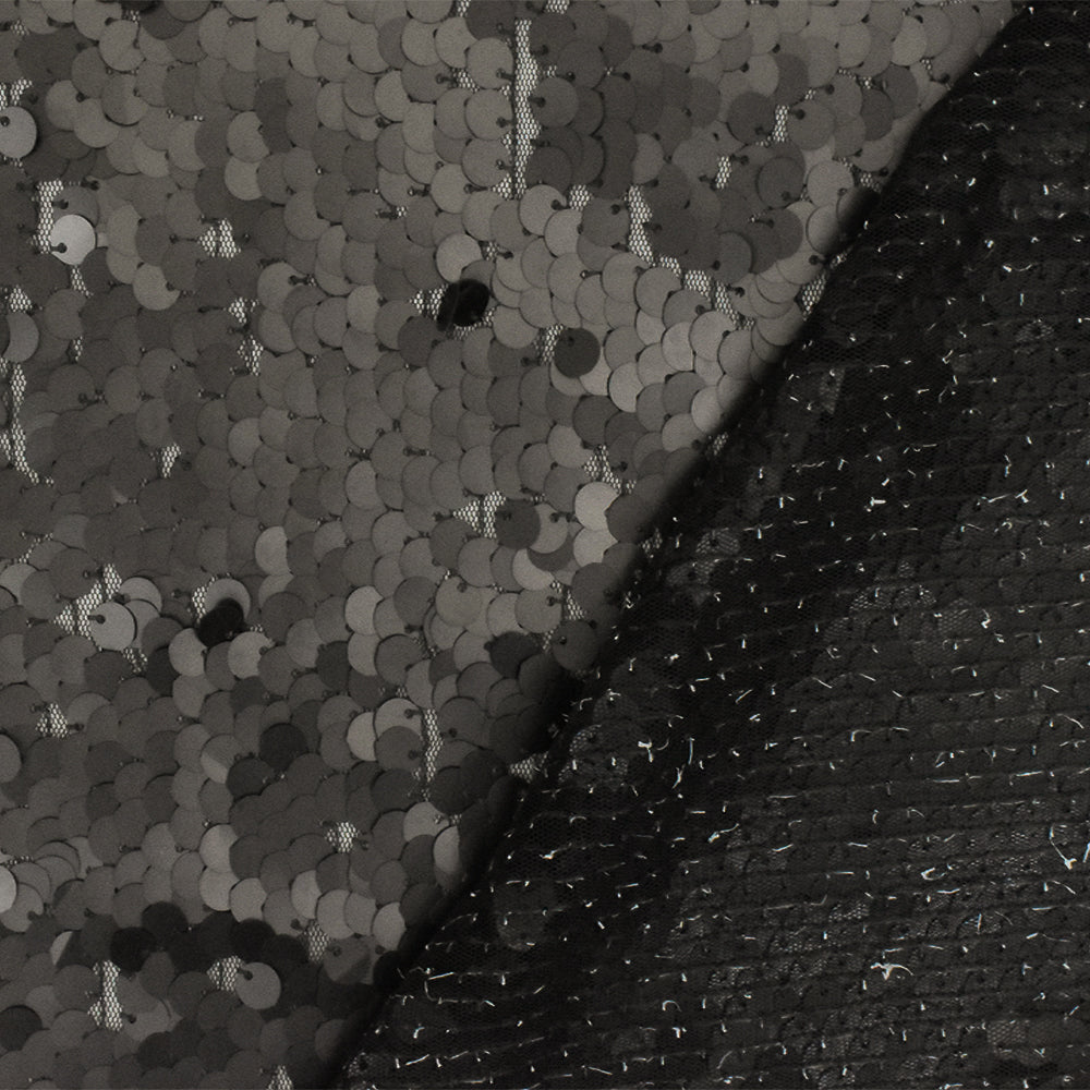 Matte Black Sequined Mesh Tulle Knit Fabric