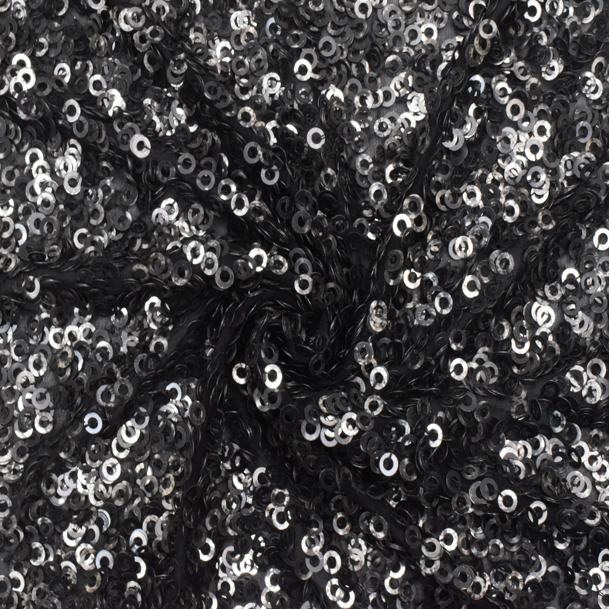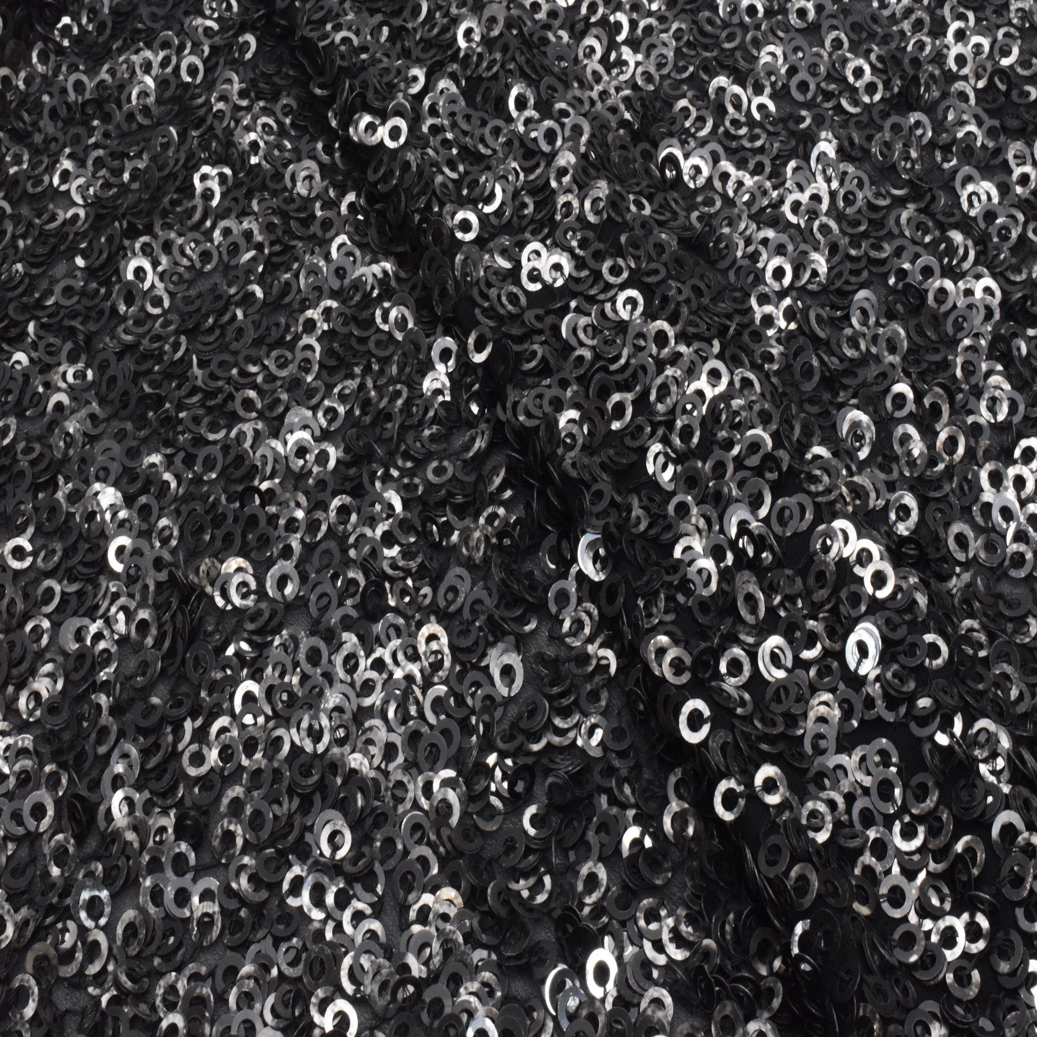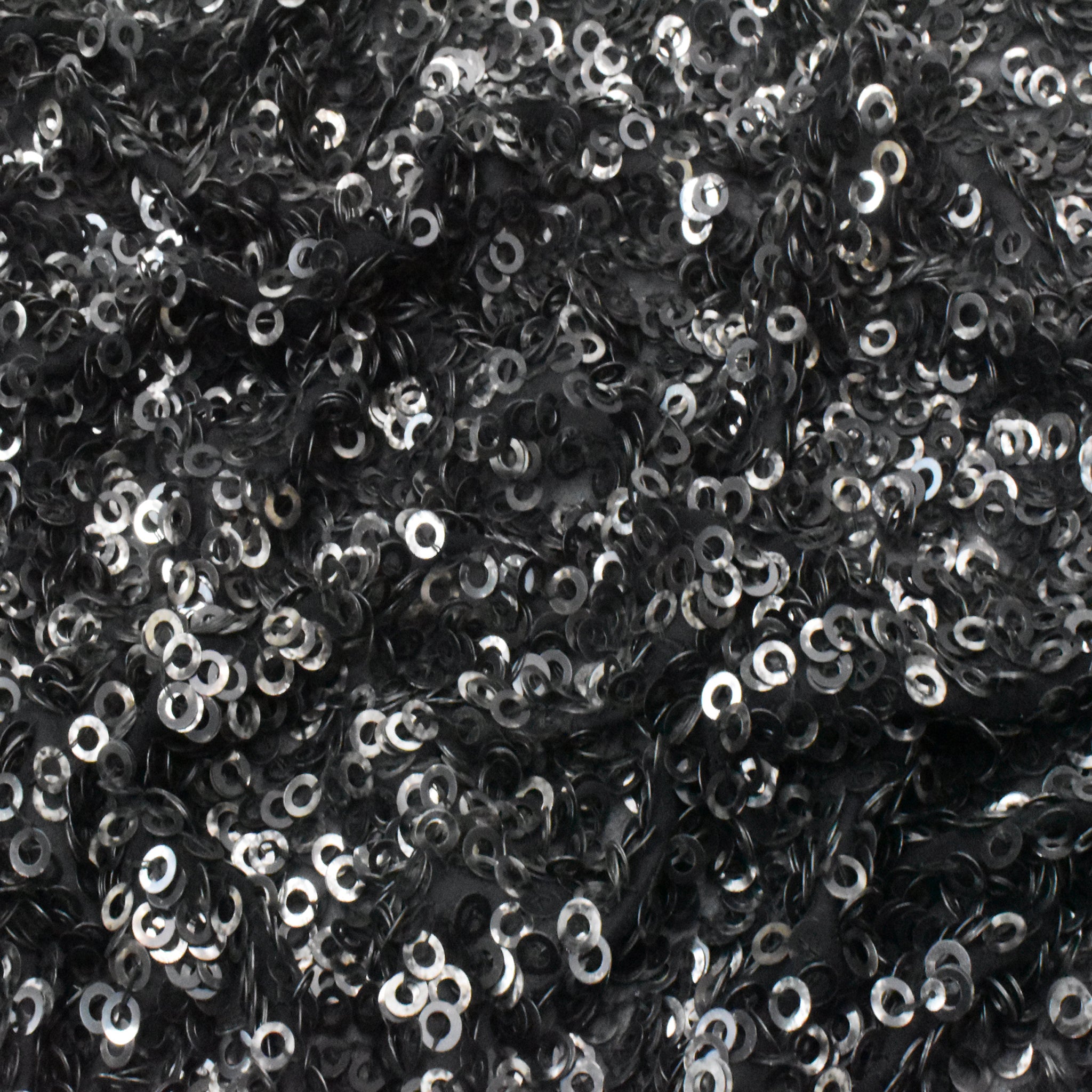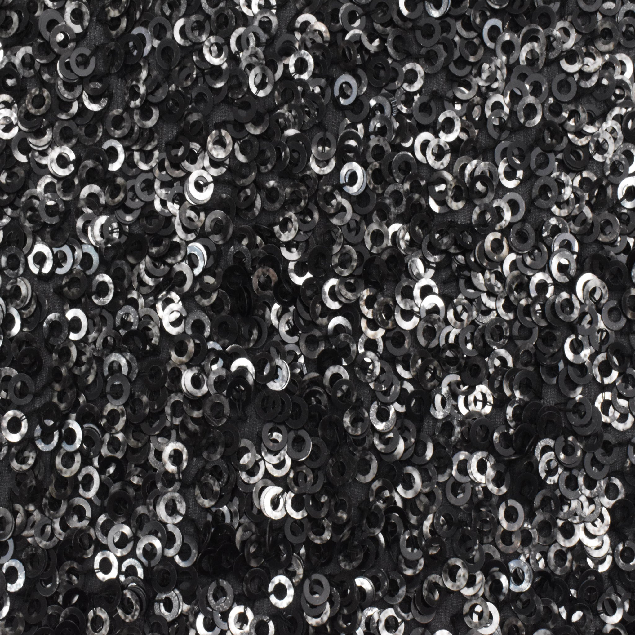 Pure Black-Silver Ring Sequined Silk Chiffon Woven Fabric