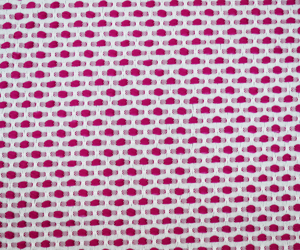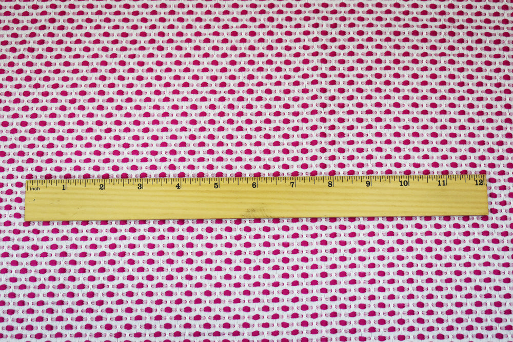Fuchsia Pink-White Poly-Lycra Texture Dobby Jacquard Woven Fabric