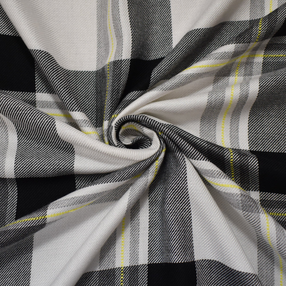 Black-White-Multi Cotton-Rayon Famous Maker Plaid Twill Woven Fabric