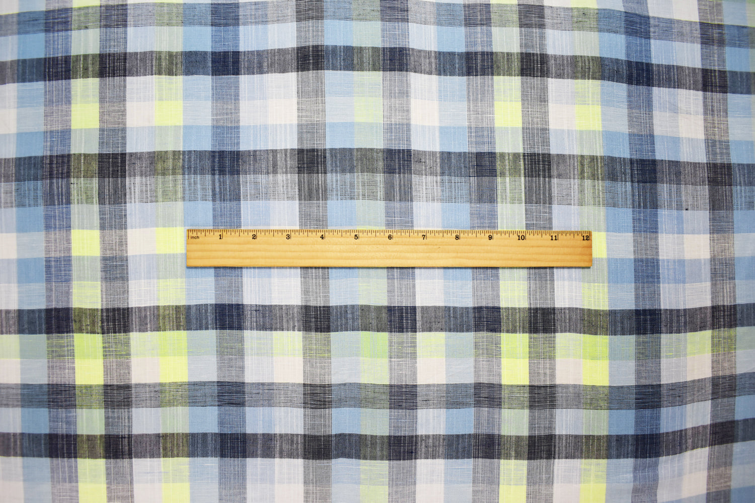 Blue-Yellow-Multi Cotton Famous Maker Plaid Check Slub Woven Fabric