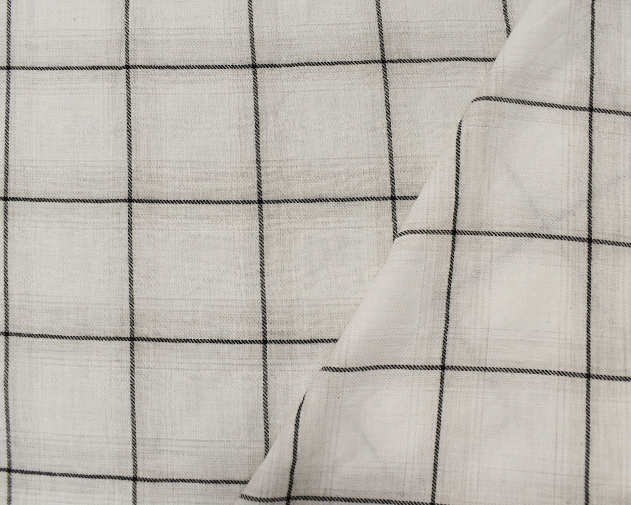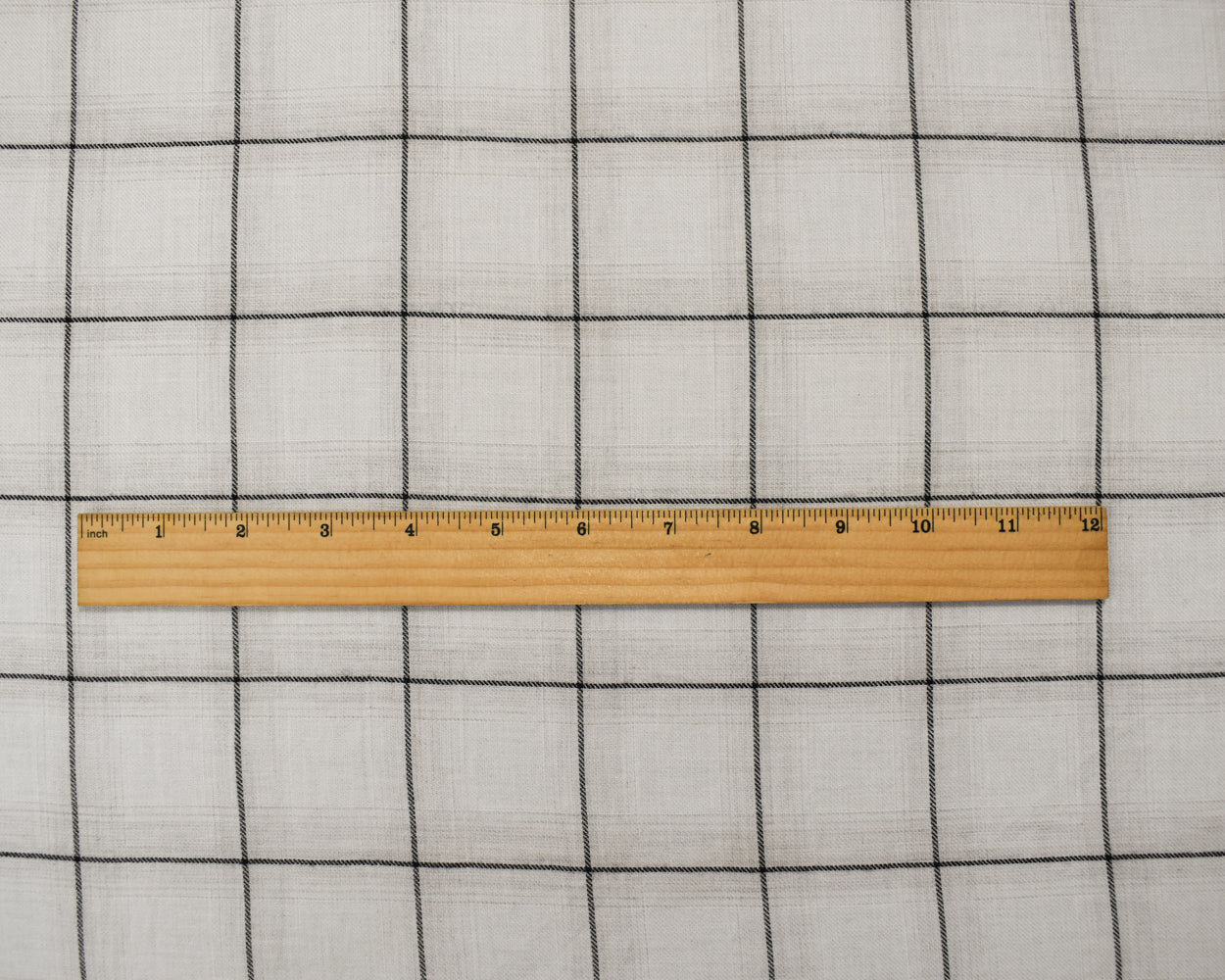 Ivory-Black-Beige Rayon-Cotton Famous Maker Check Plaid Twill Woven Fabric