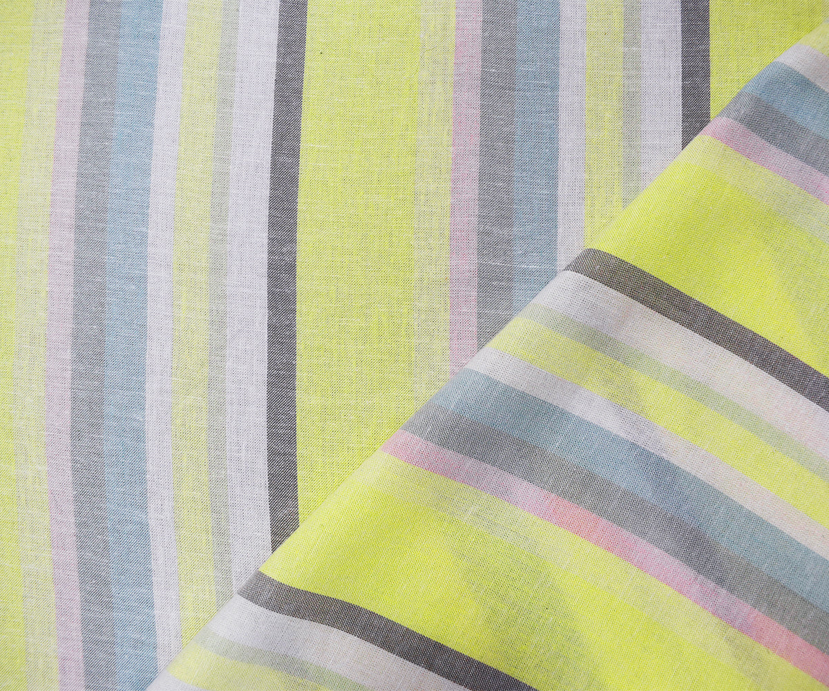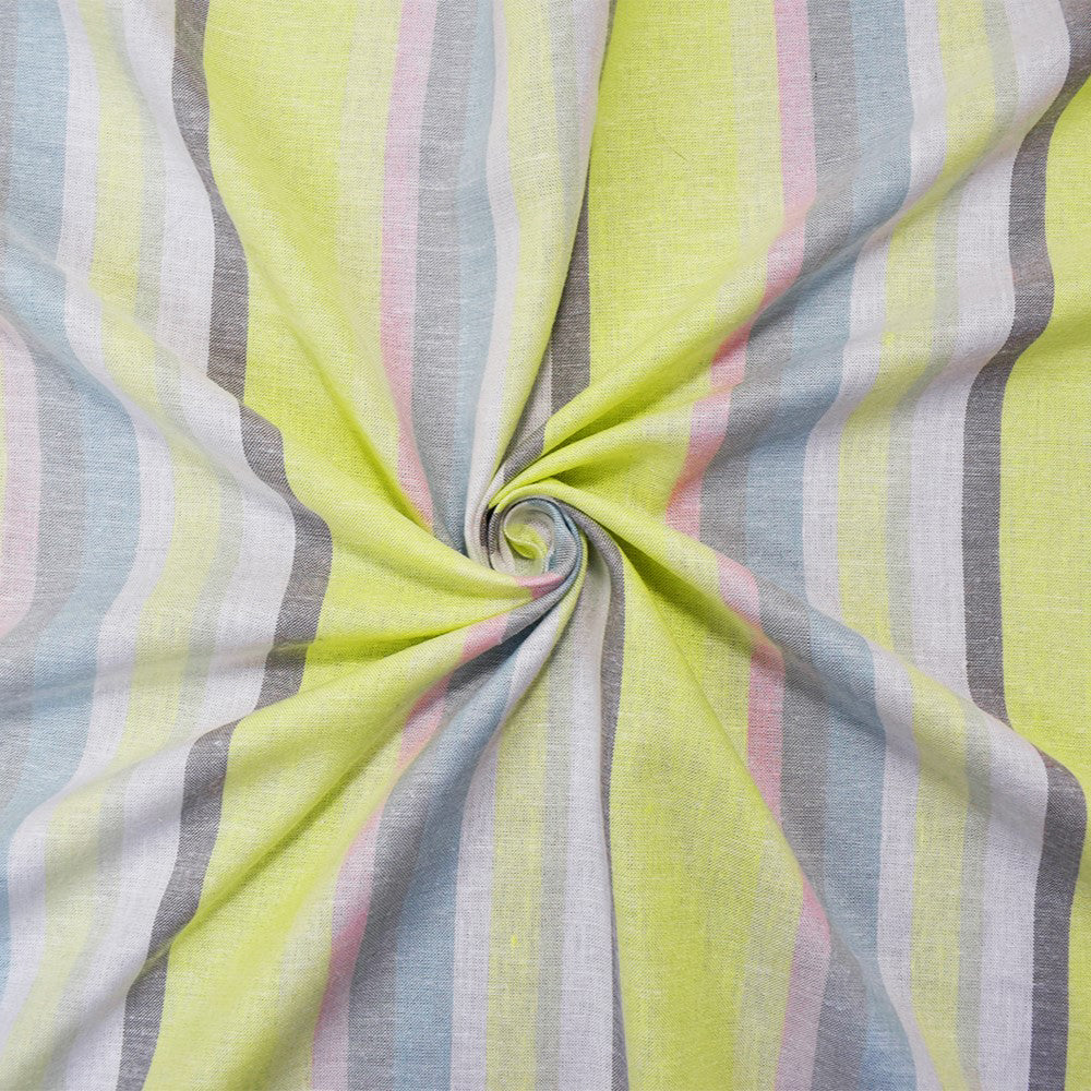 Light Yellow-Pink-Multi Cotton Famous Maker Vertical Stripe Shirting Fabric