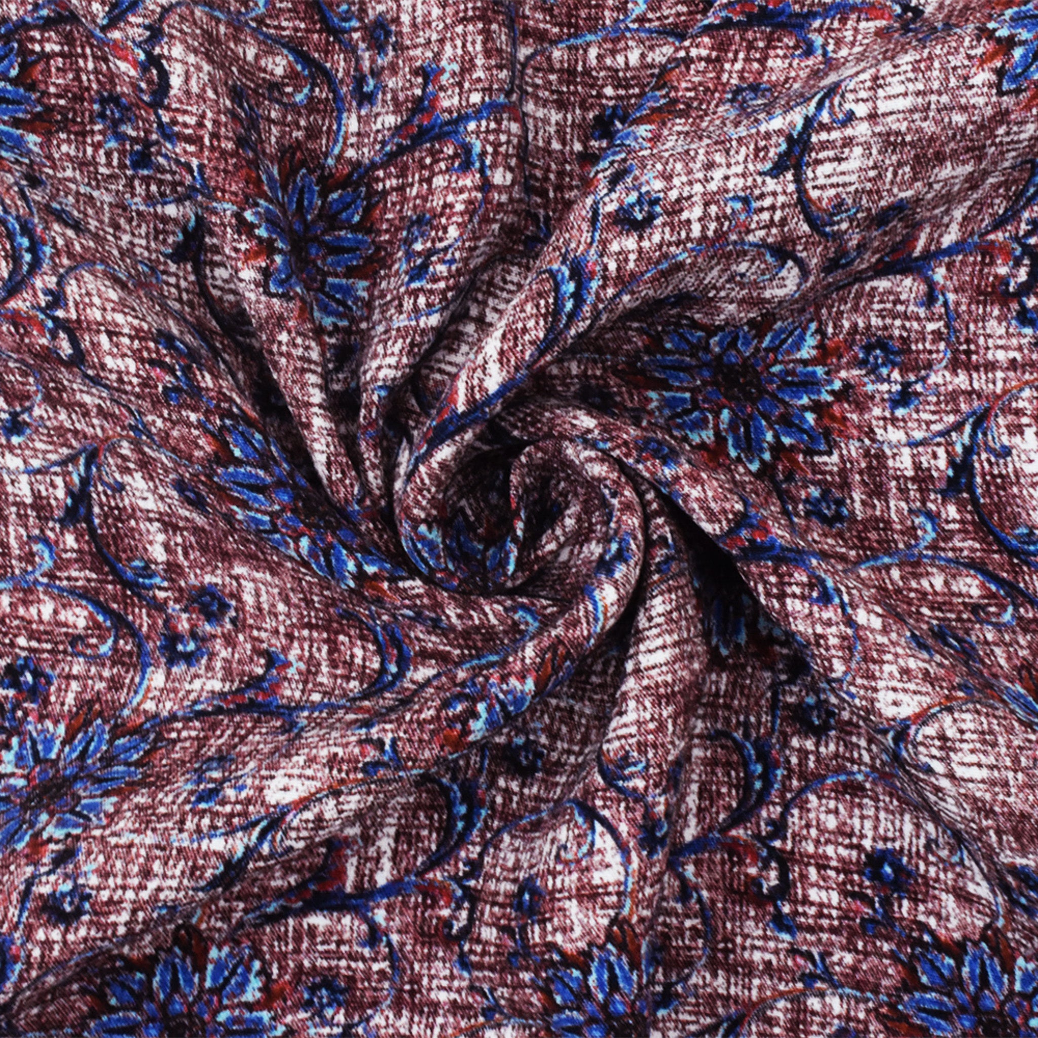 Red-Blue-Multi Famous Designer Viscose Floral Printed Crepe Faille Fabric