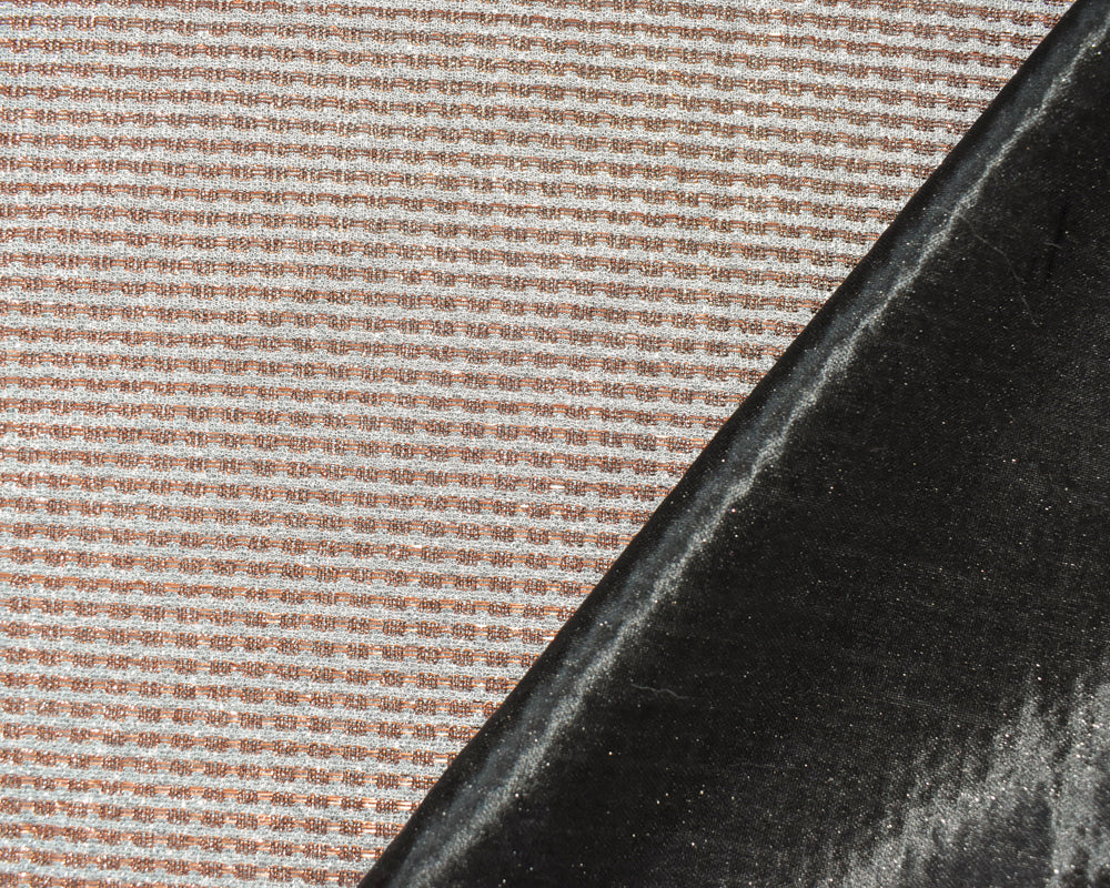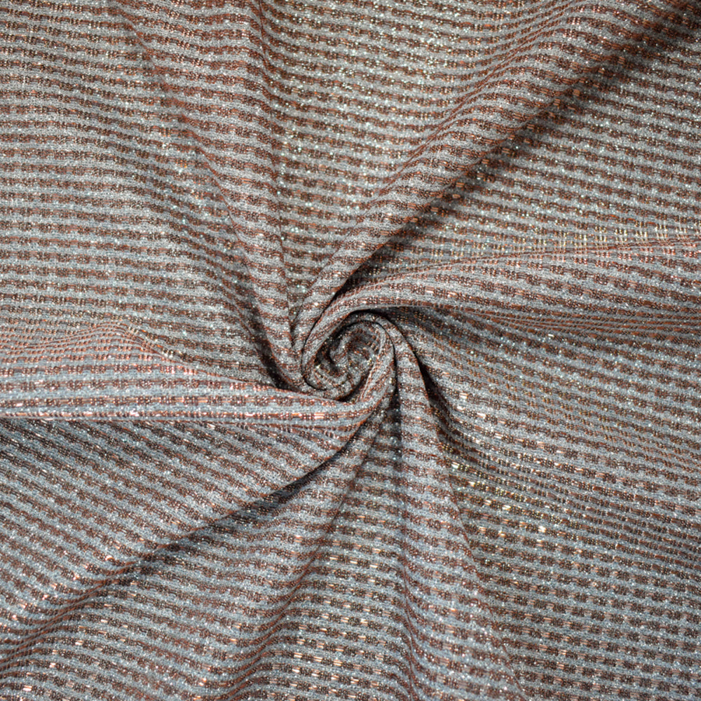 Silver-Copper Poly Metallic Stripe Double Knit Fabric