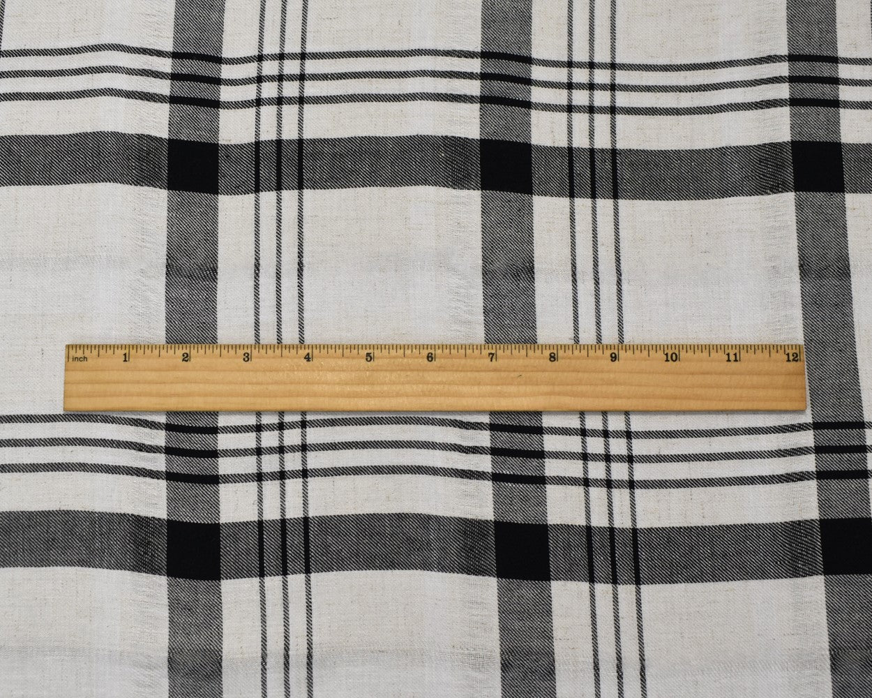 White-Beige-Black Rayon-Cotton Famous Maker Plaid Twill Woven Fabric