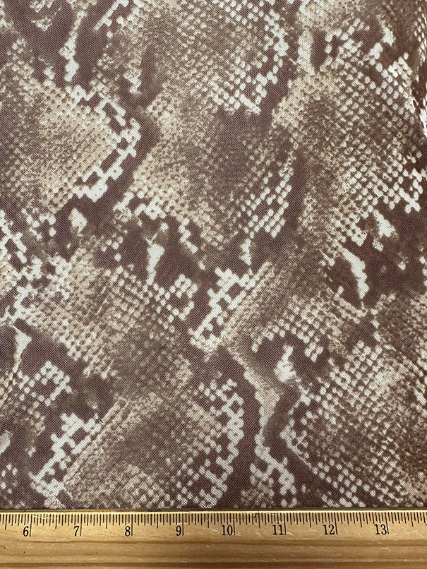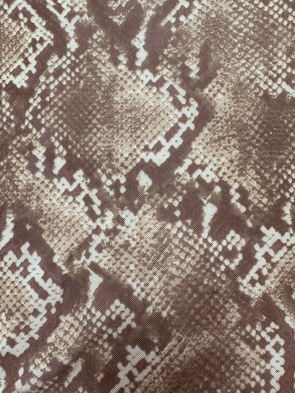 Brown and Beige Multi Print Snakeskin Stretch Mesh Fabric