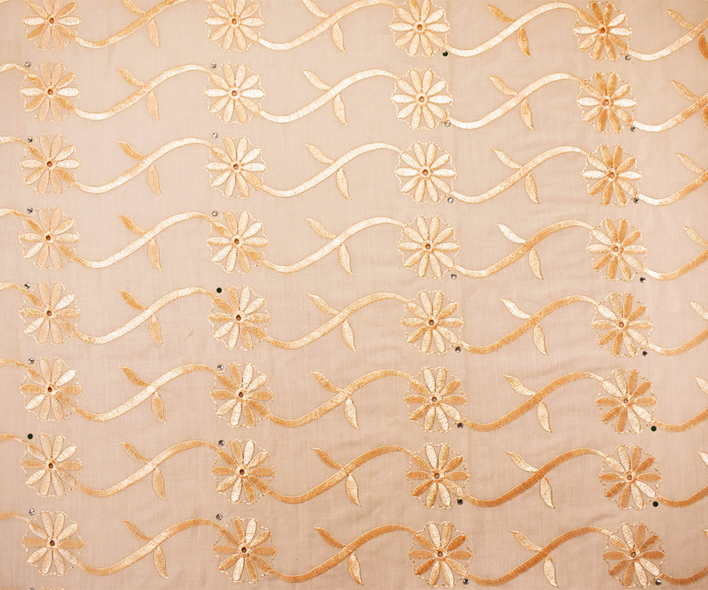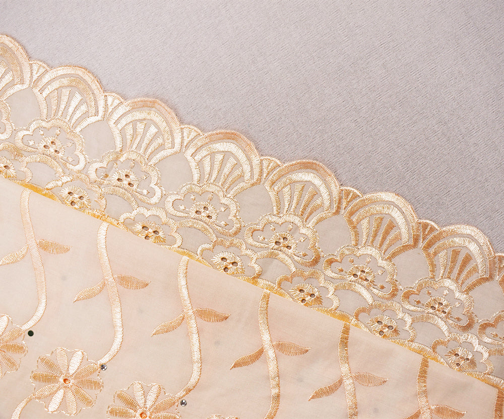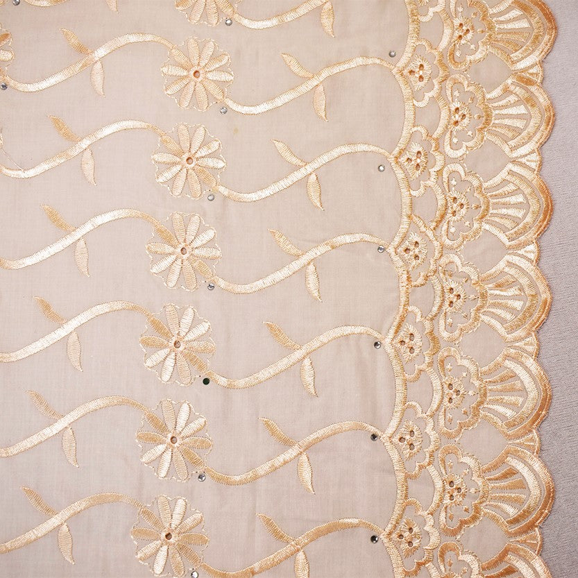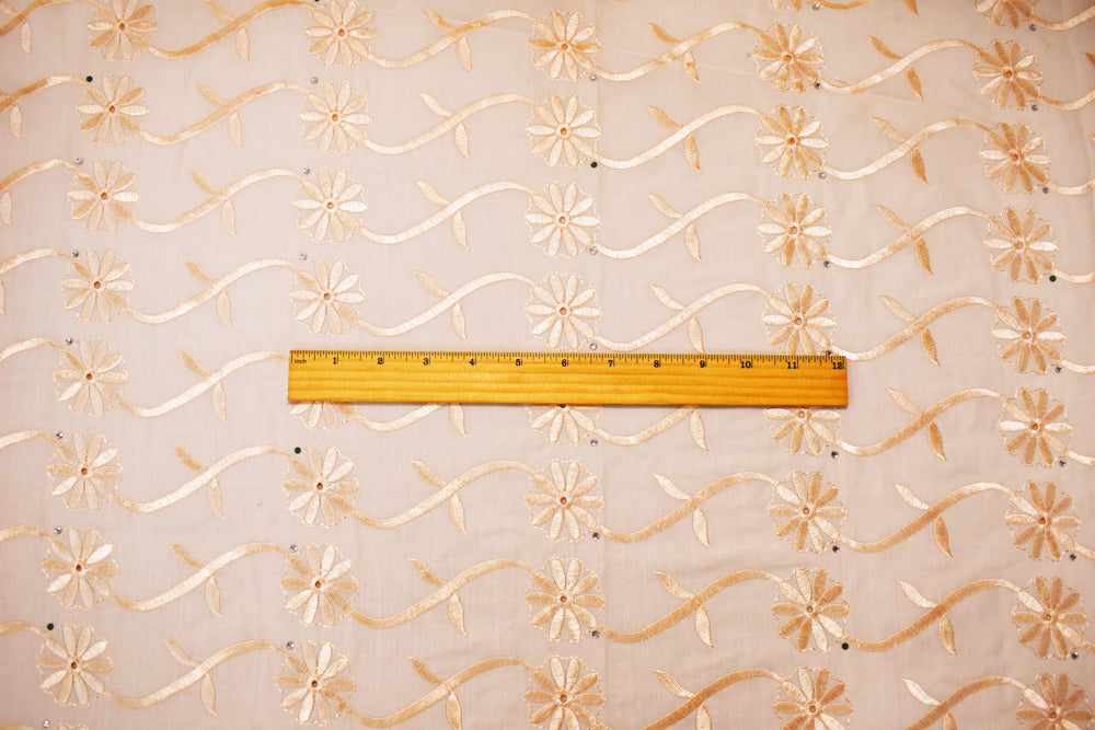 Light Beige Poly-Cotton Embroidered Scallop Rhinestone Woven Fabric