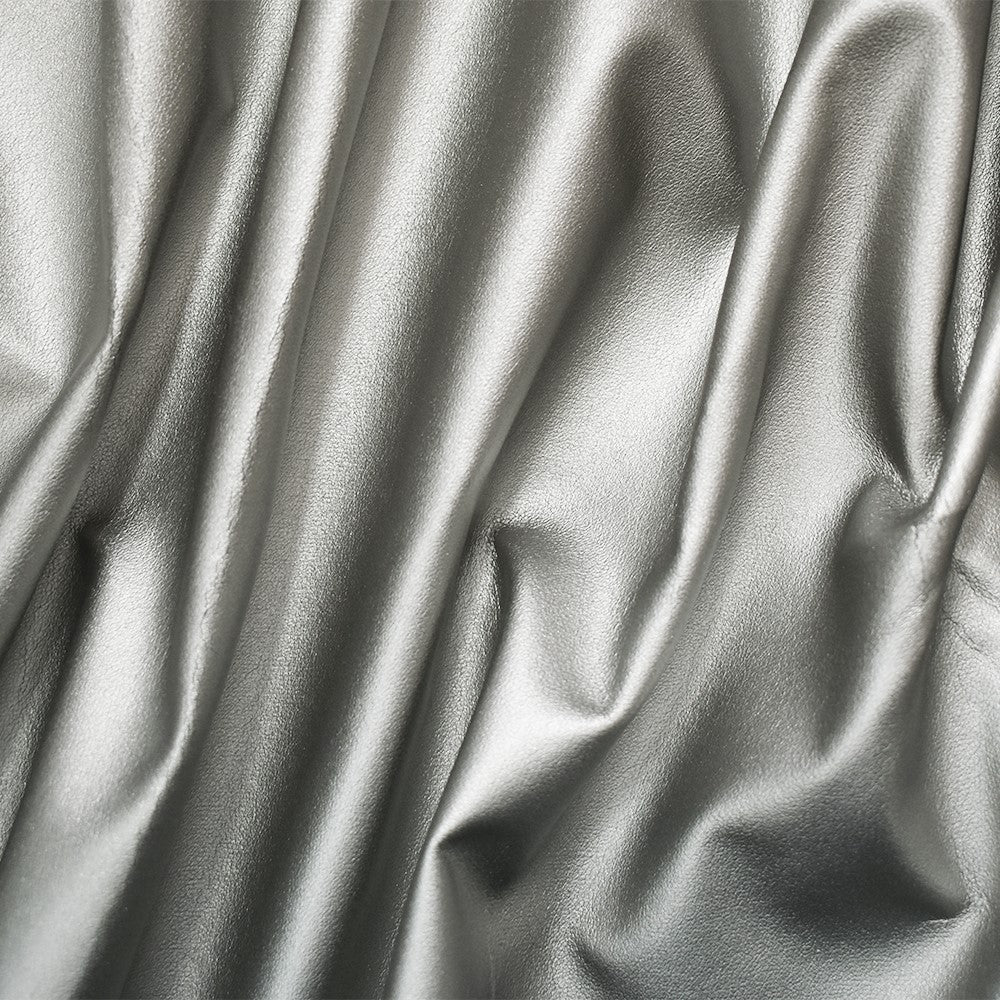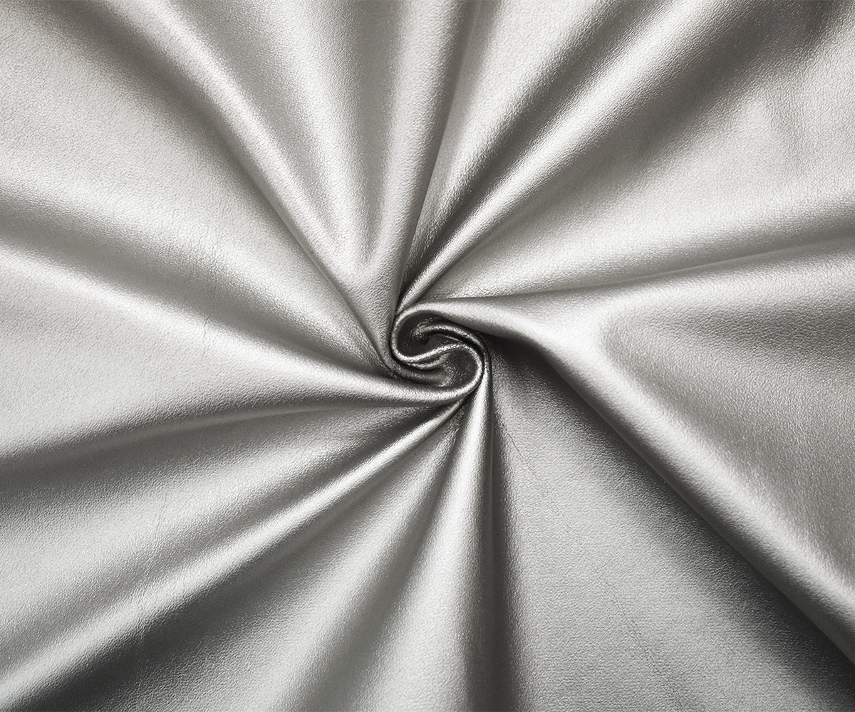 Metallic Silver Solid Stretch Faux Leather Home Decorating Fabric