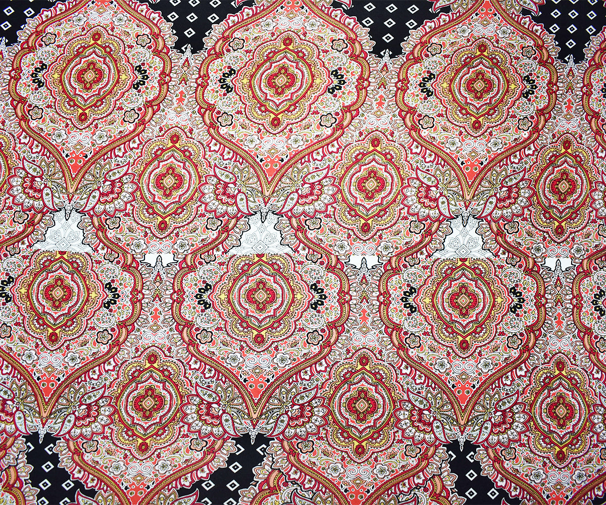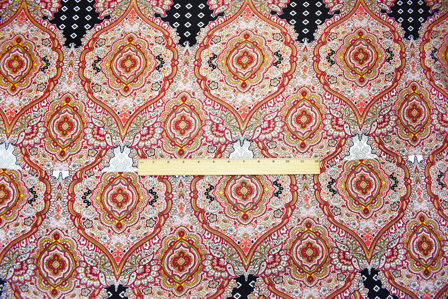 4 YD PC-Orange-Black-Multi Cotton Stretch Spandex Moroccan Printed Jersey Knit Fabric