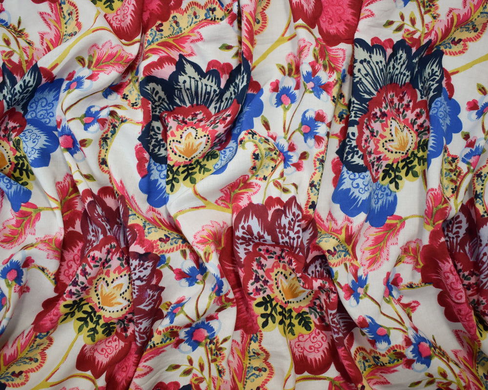 Blue-Pink-Multi Cotton-Rayon Floral Printed Lawn Woven Fabric