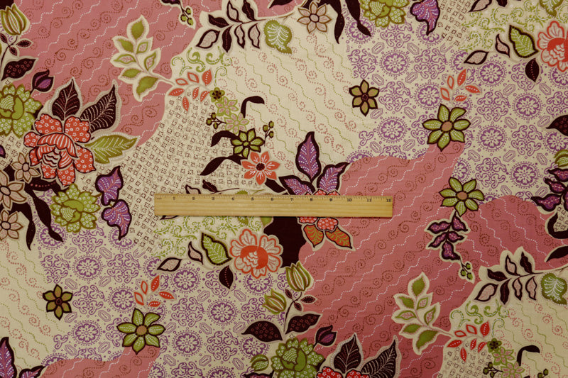Pink-Yellow-Multi Cotton Floral Printed Lawn Woven Fabric