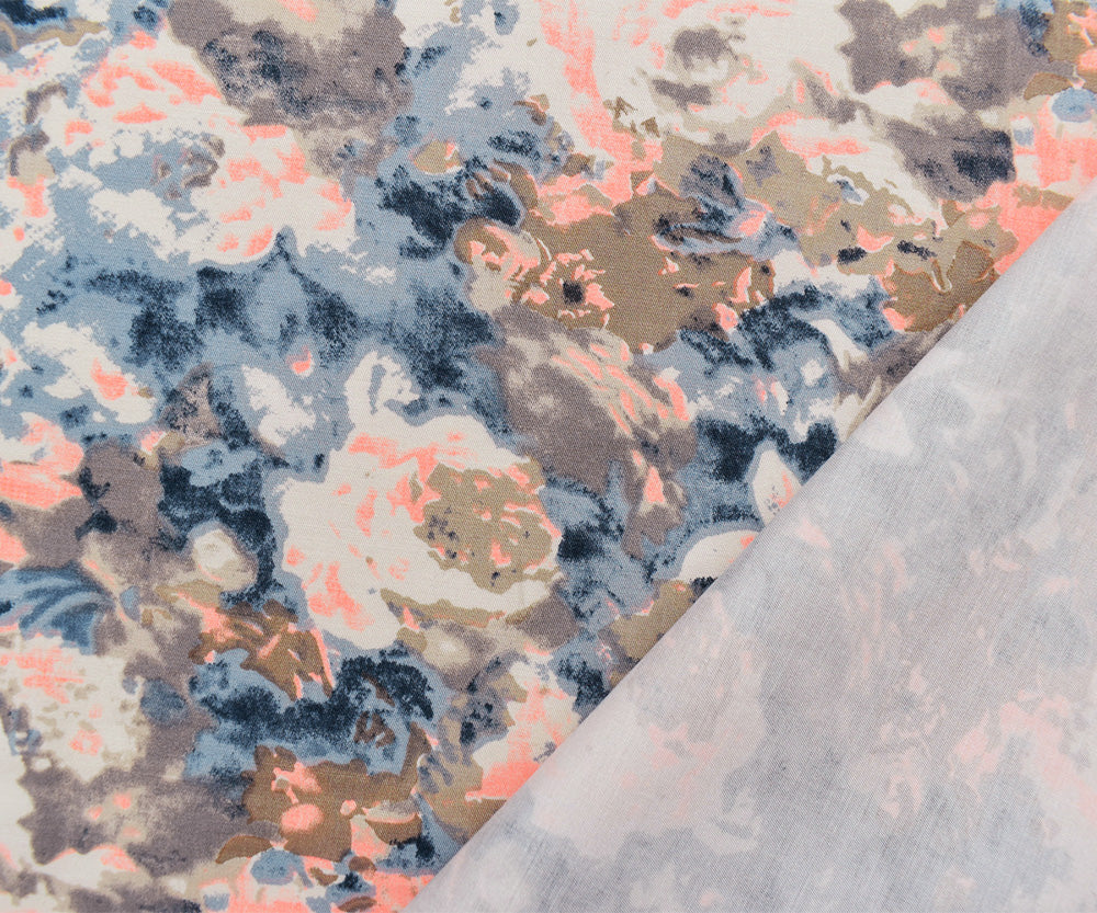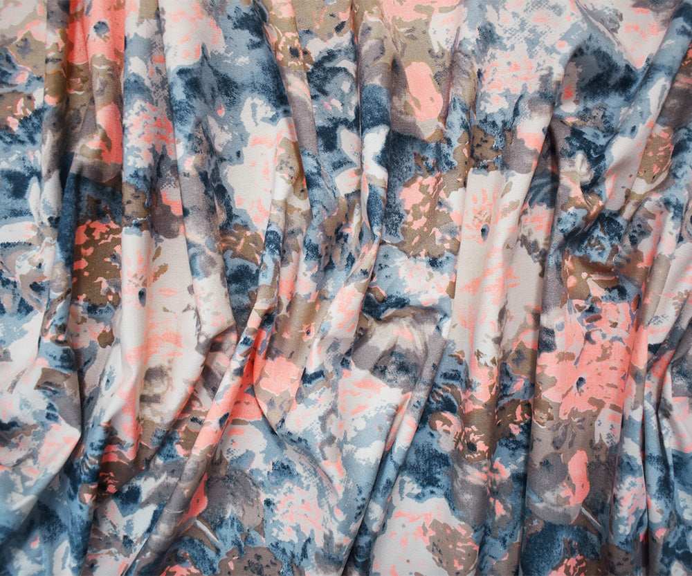 Blue-Coral-Multi Abstract Floral Print Stretch Spandex Twill Sateen Fabric