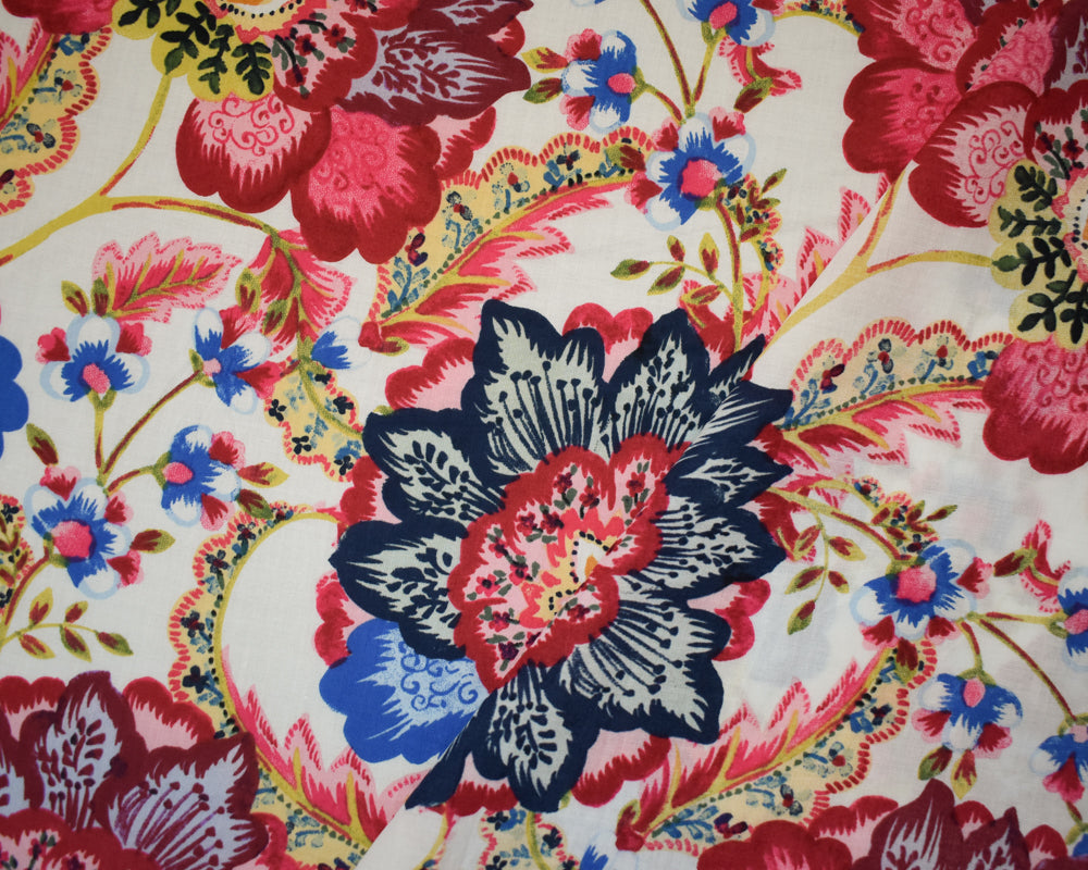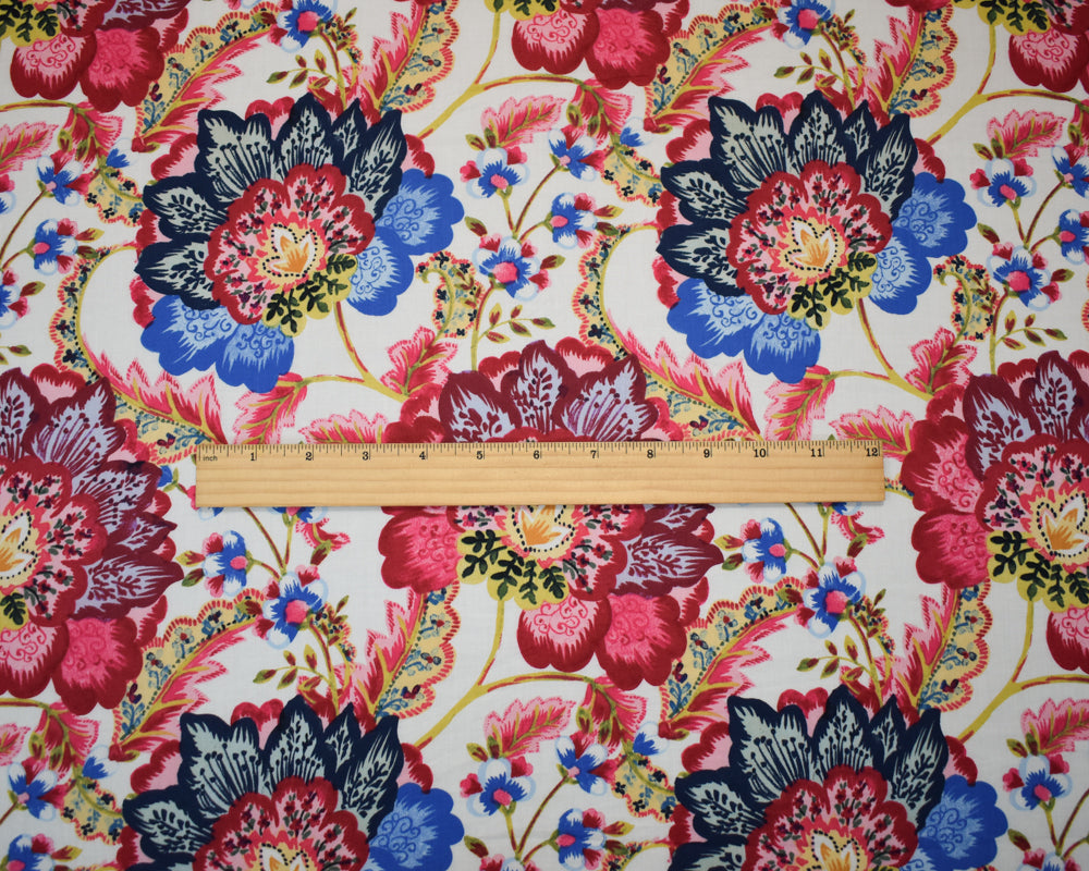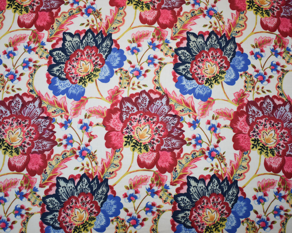 Blue-Pink-Multi Cotton-Rayon Floral Printed Lawn Woven Fabric