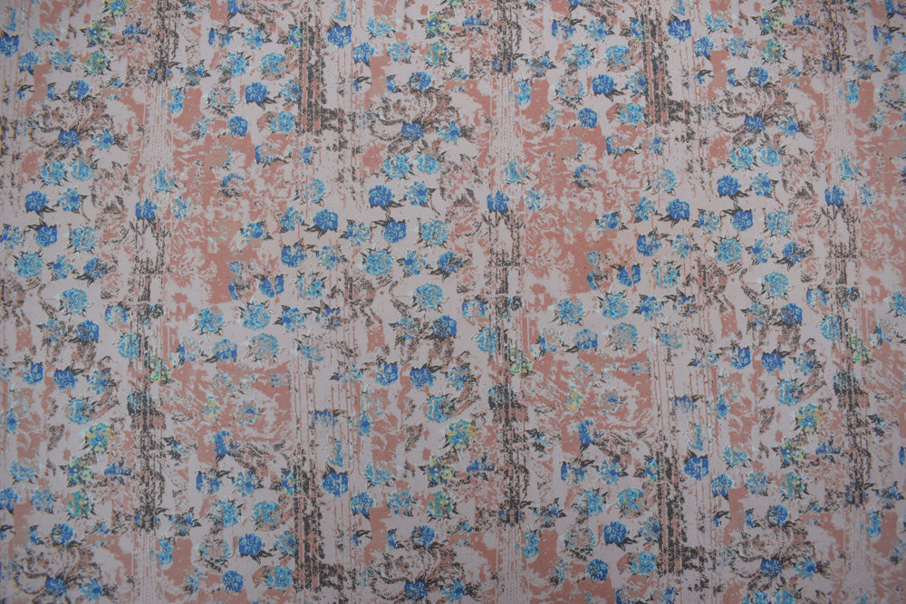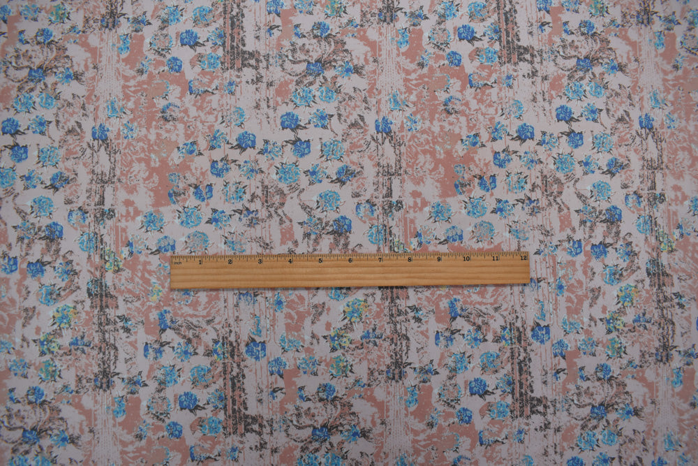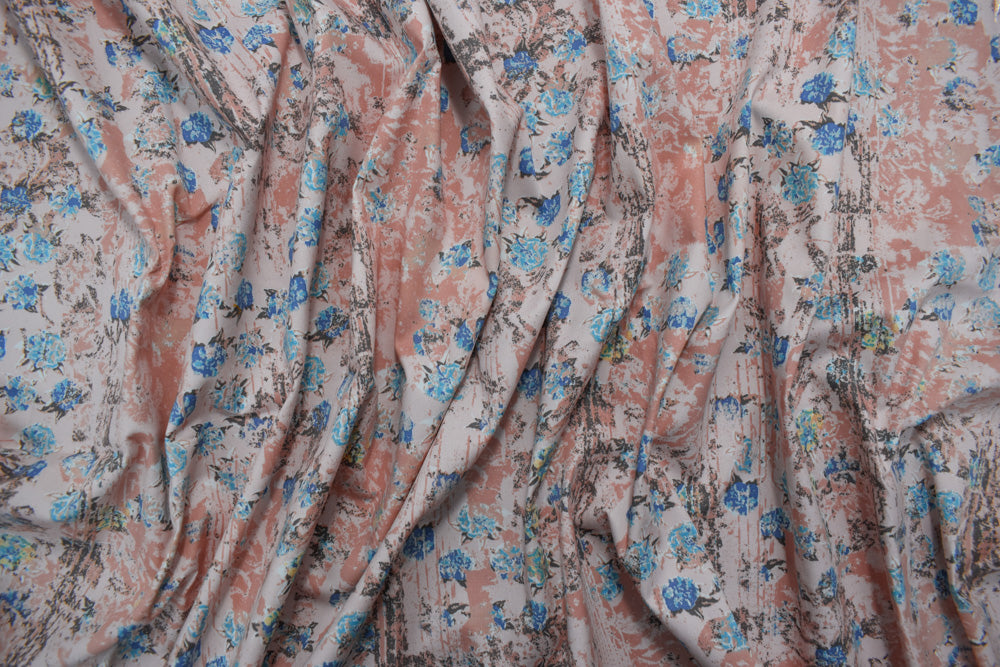 Pink-Multi Cotton Floral Texture Printed Stretch Twill Sateen Woven Fabric