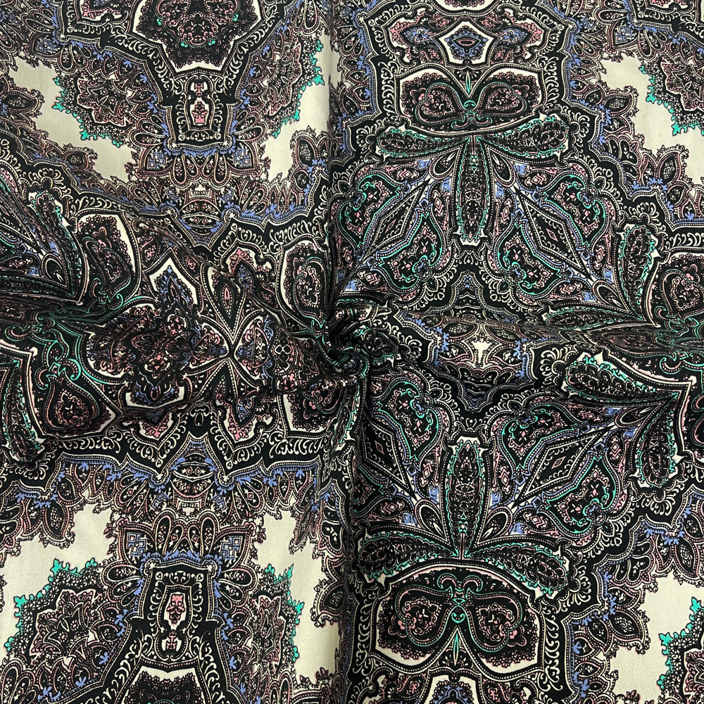 Purple-Multi Cotton Baroque Printed Stretch Spandex Italian Sateen Fabric