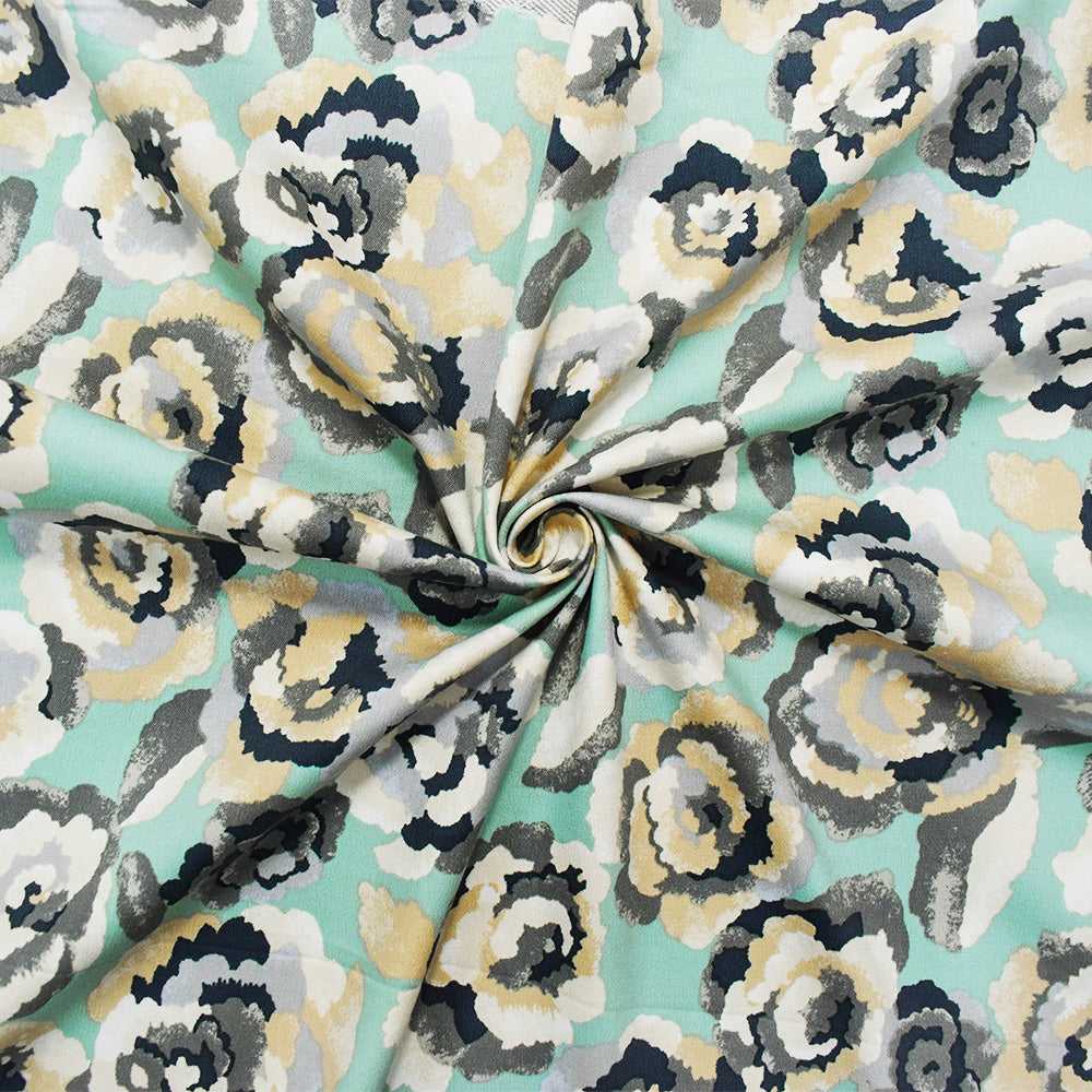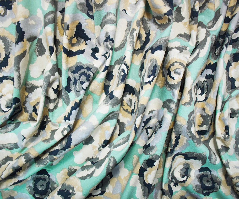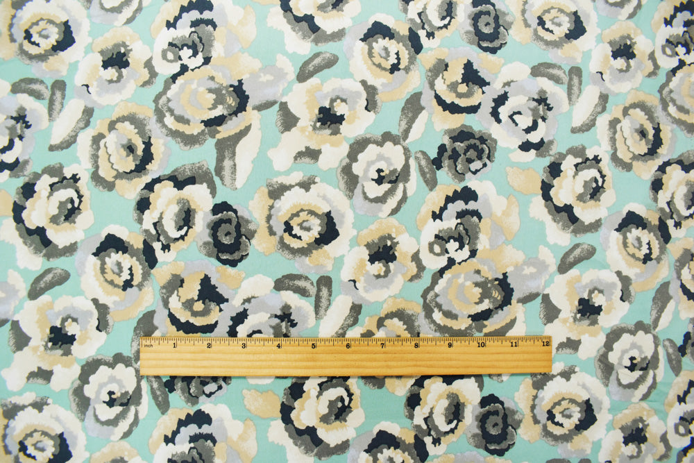 Teal-Gray-Multi Floral Printed Stretch Spandex Twill Sateen Woven Fabric