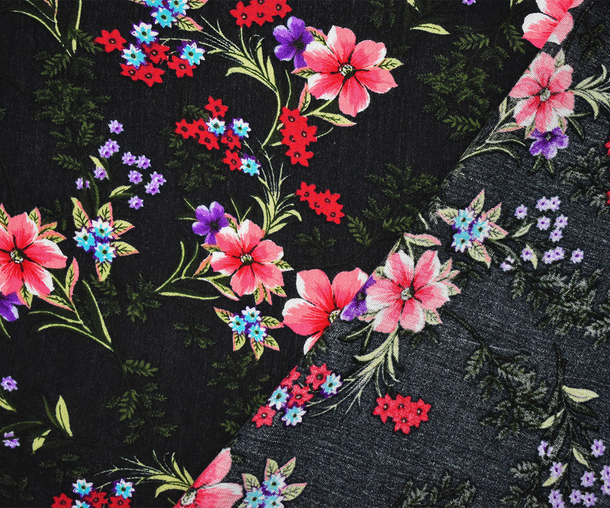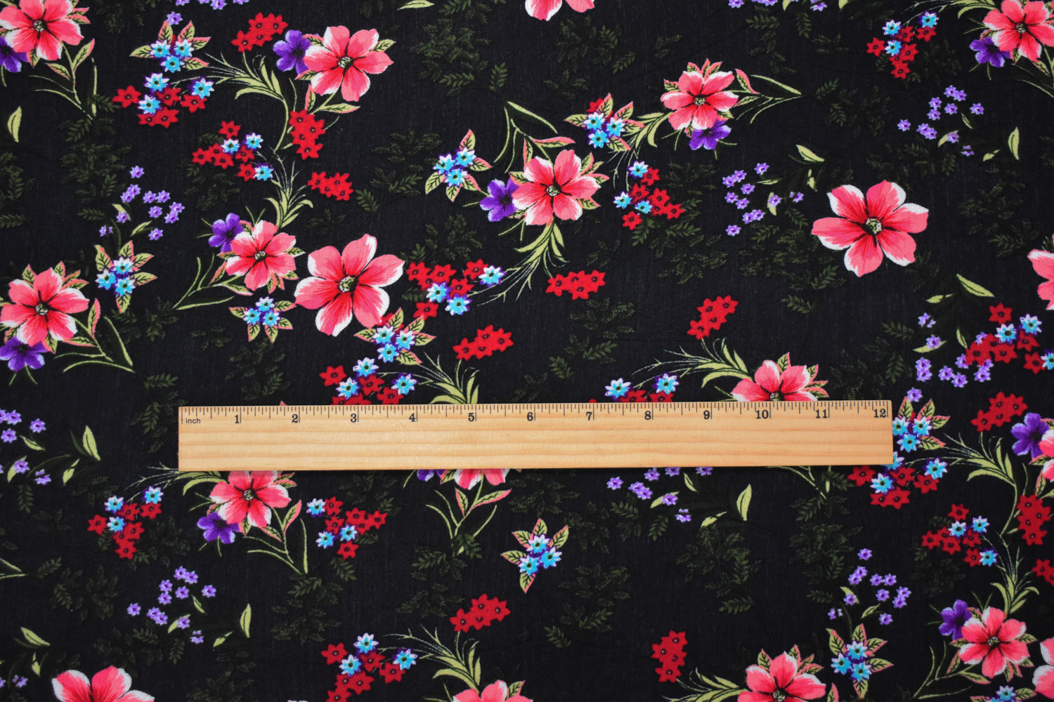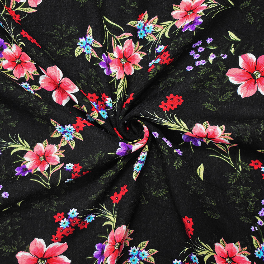 Black-Red-Multi Cotton Floral Printed Gauze Woven Fabric
