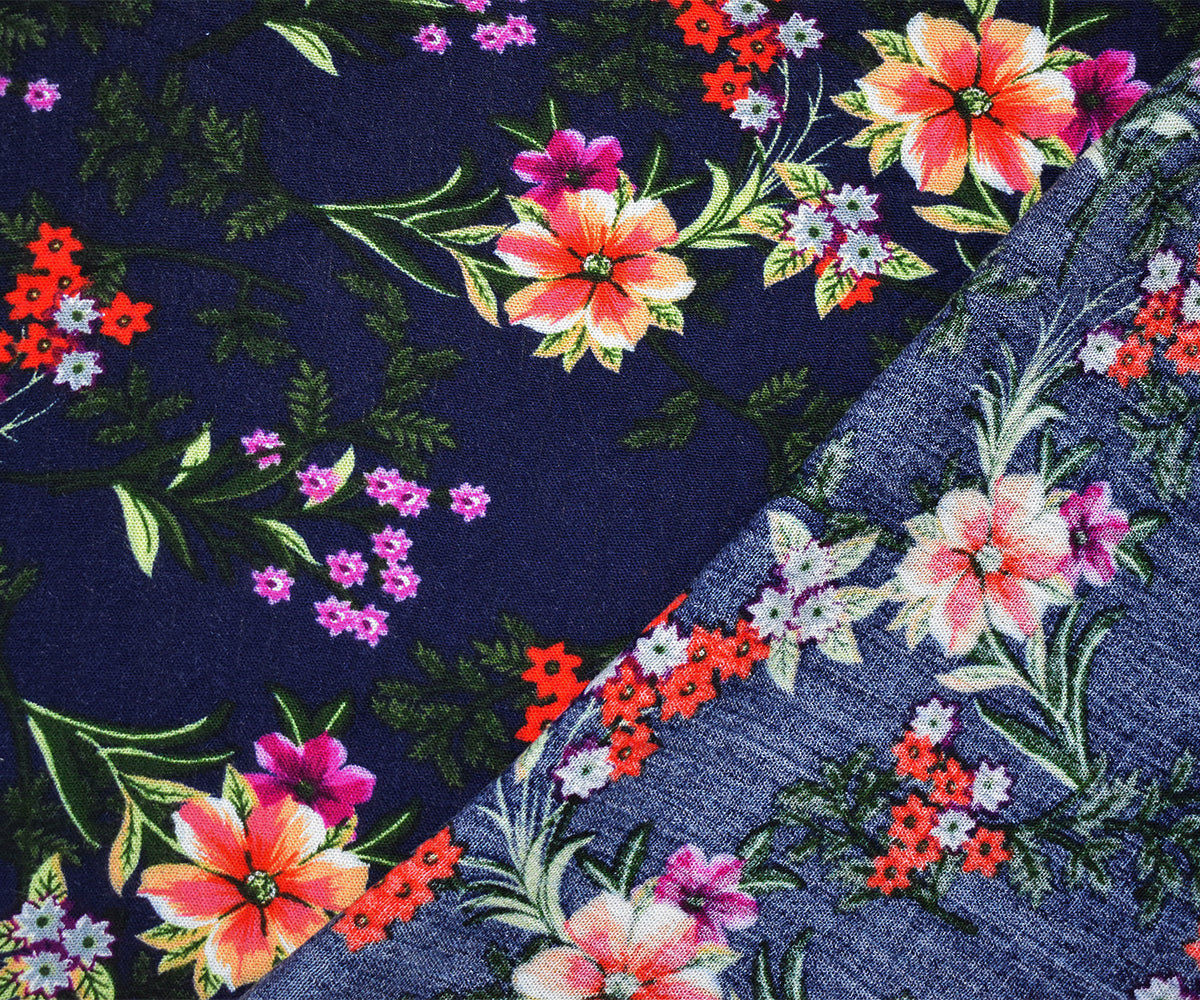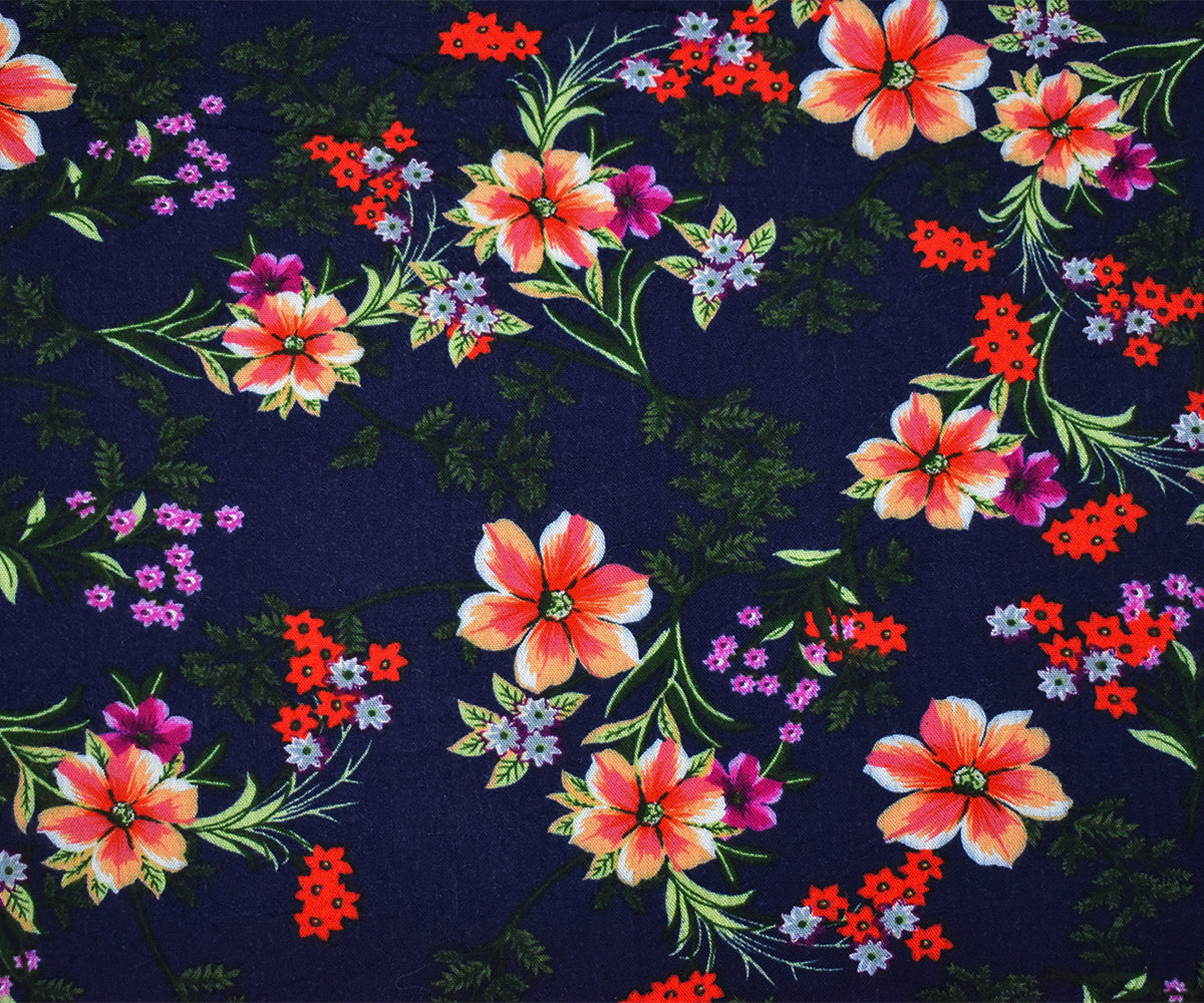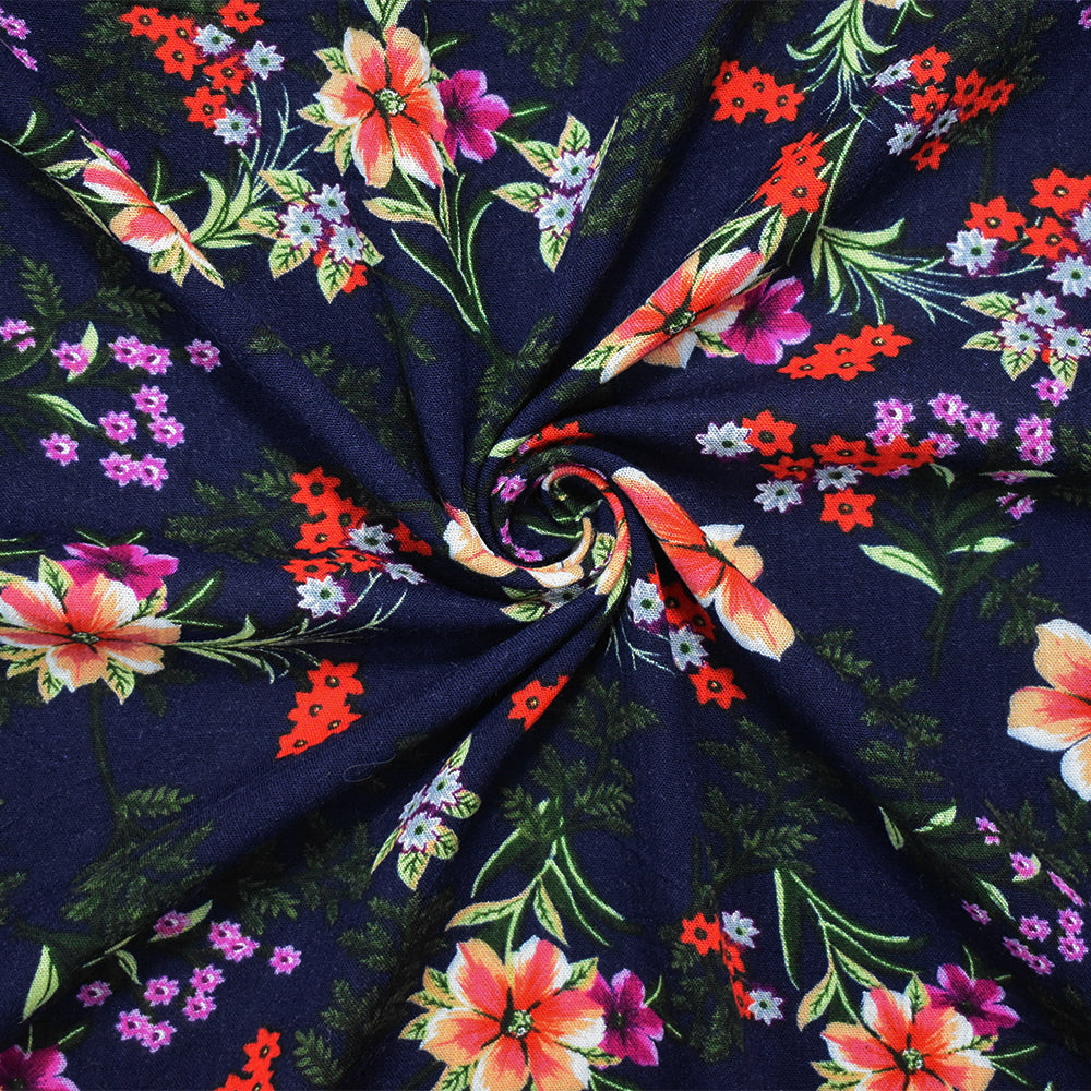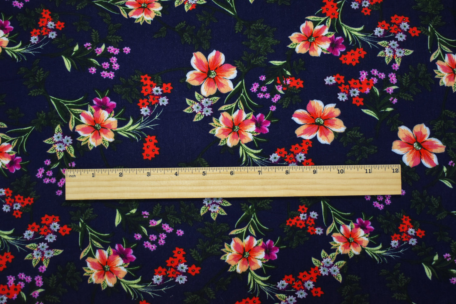 Navy-Red-Multi Cotton Floral Printed Gauze Woven Fabric